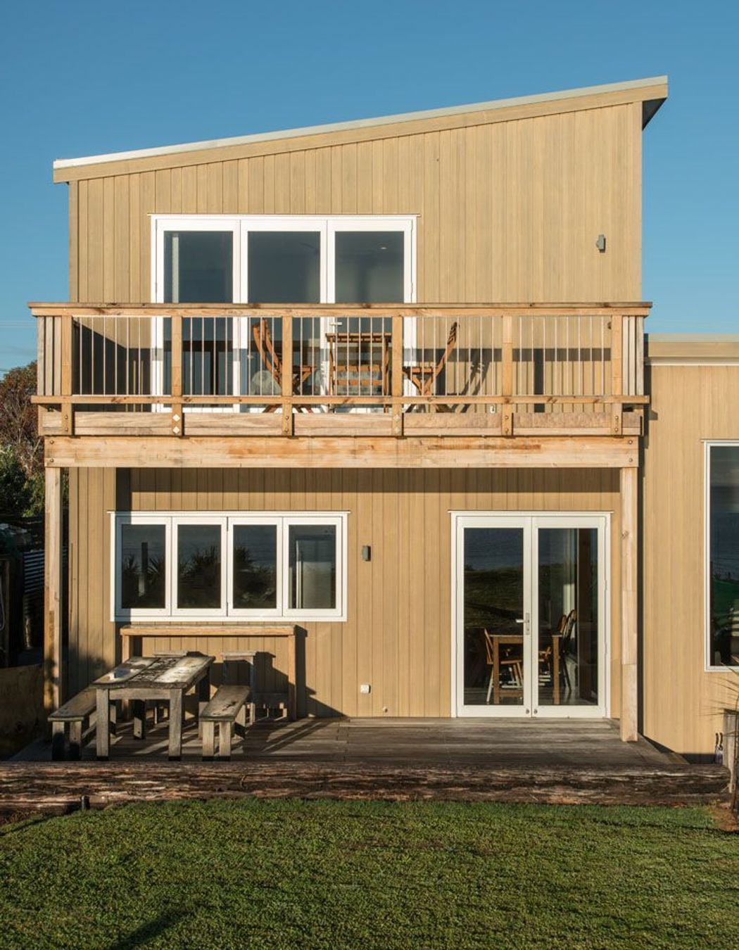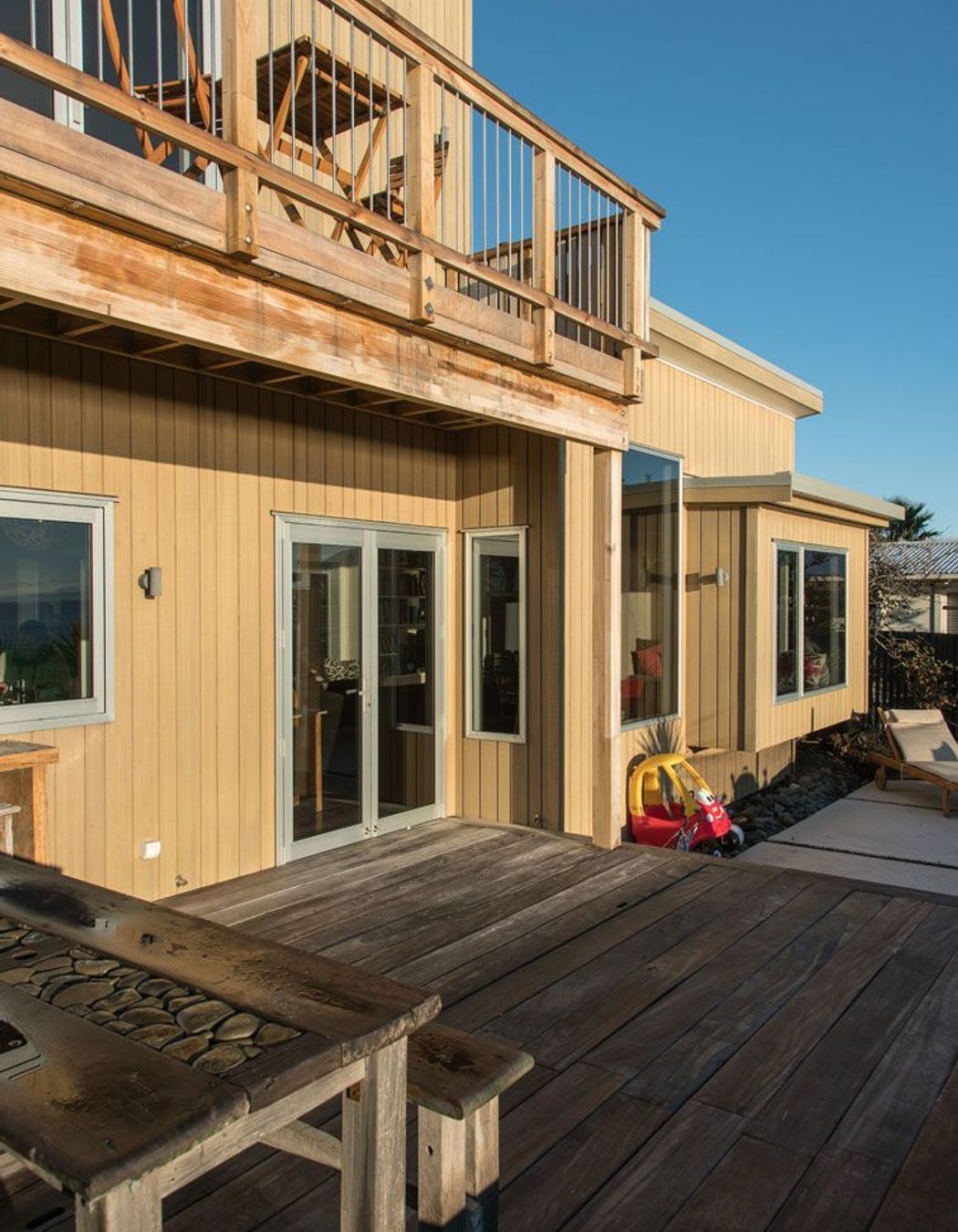 ArchiPro Project Summary - Coastal home in Te Awanga featuring natural materials, playful spaces for a young family, and innovative design elements that embrace the seaside environment.