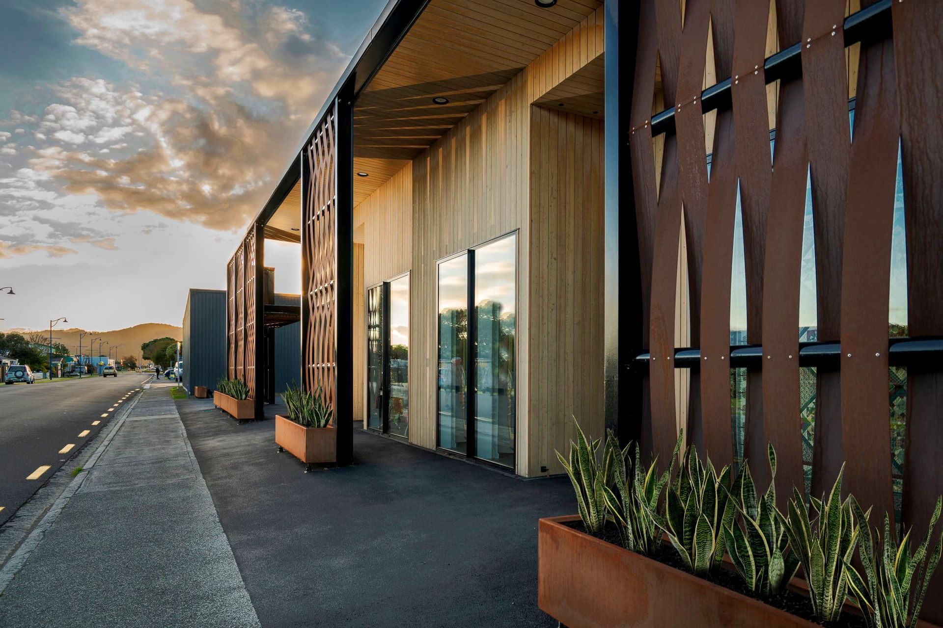 ArchiPro Project Summary - Stylish retail space in Whitianga featuring premium roofing, cladding, and scaffolding solutions by Cassa Homes.