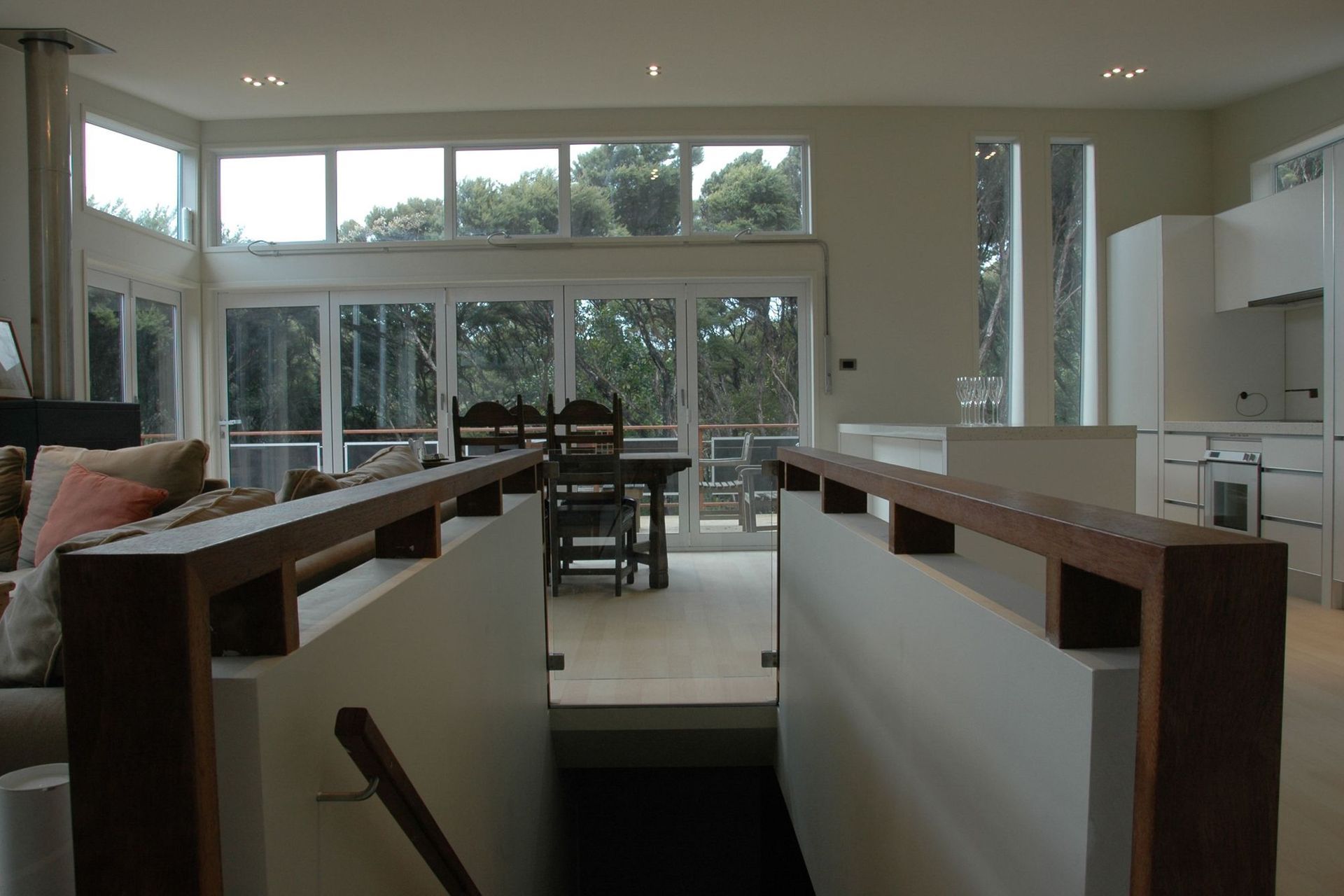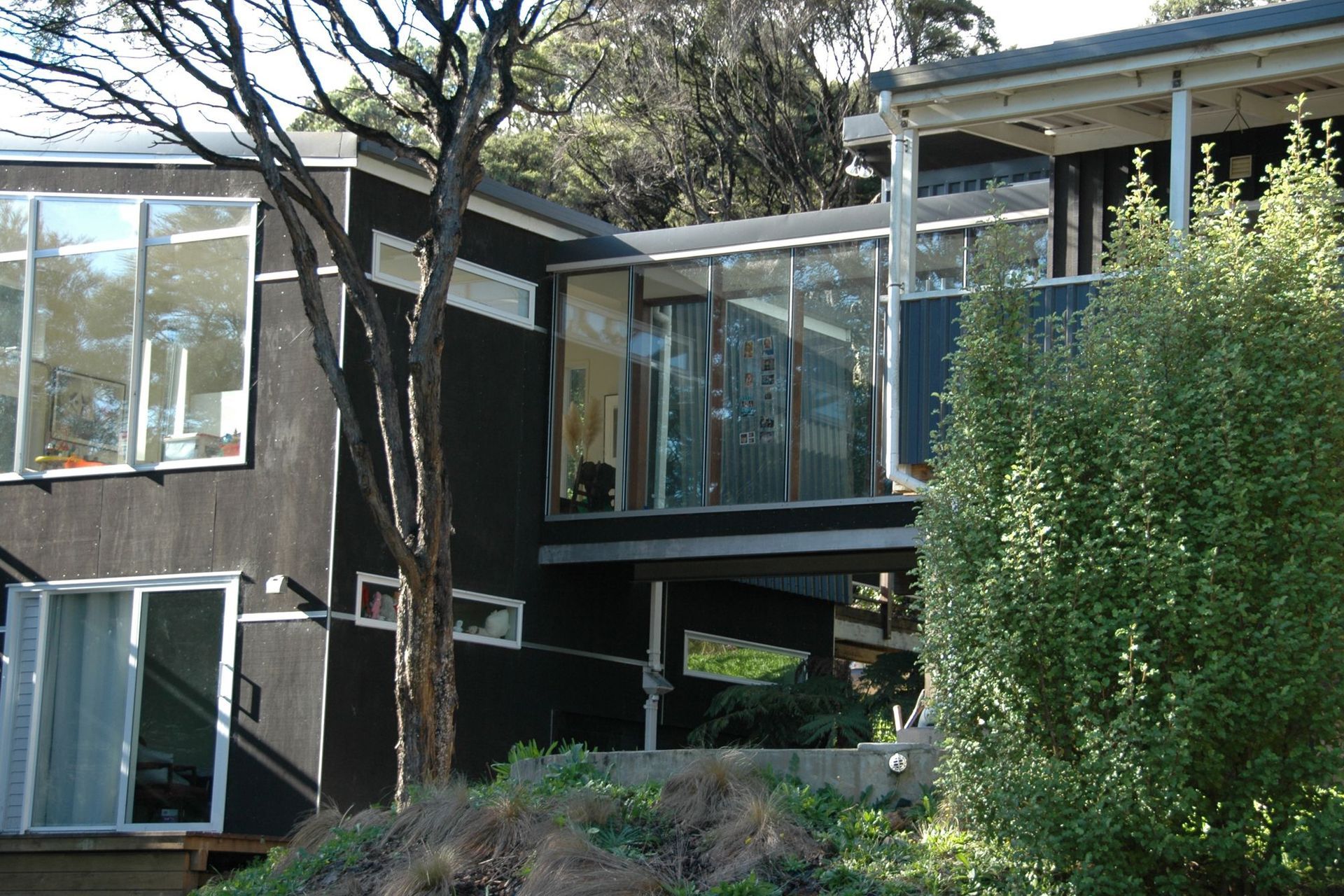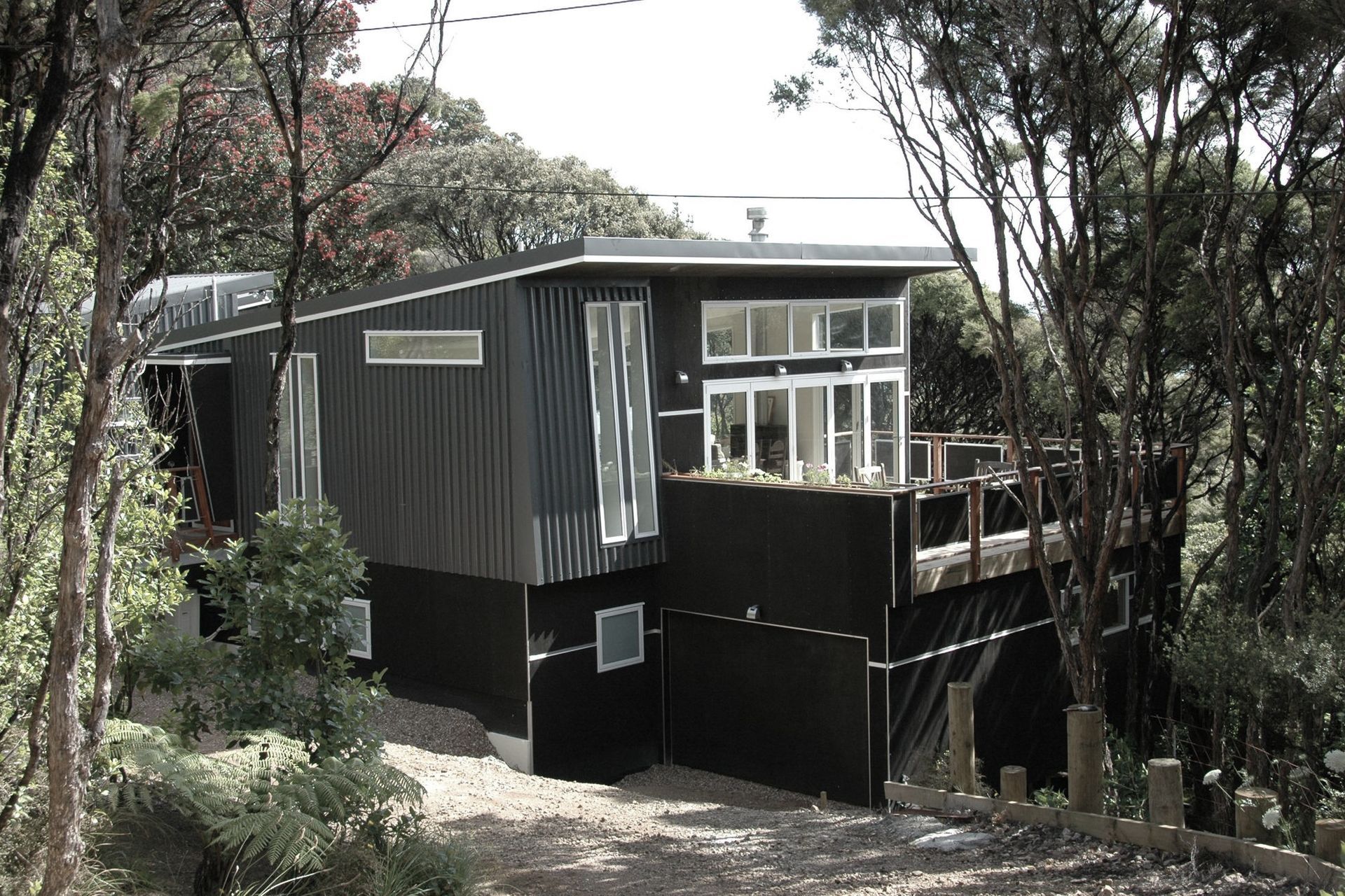 ArchiPro Project Summary - Thoughtfully designed extension of a refurbished bach, harmonizing with native vegetation and enhancing living space with modern features, including a two-storey layout and seamless connection to nature.