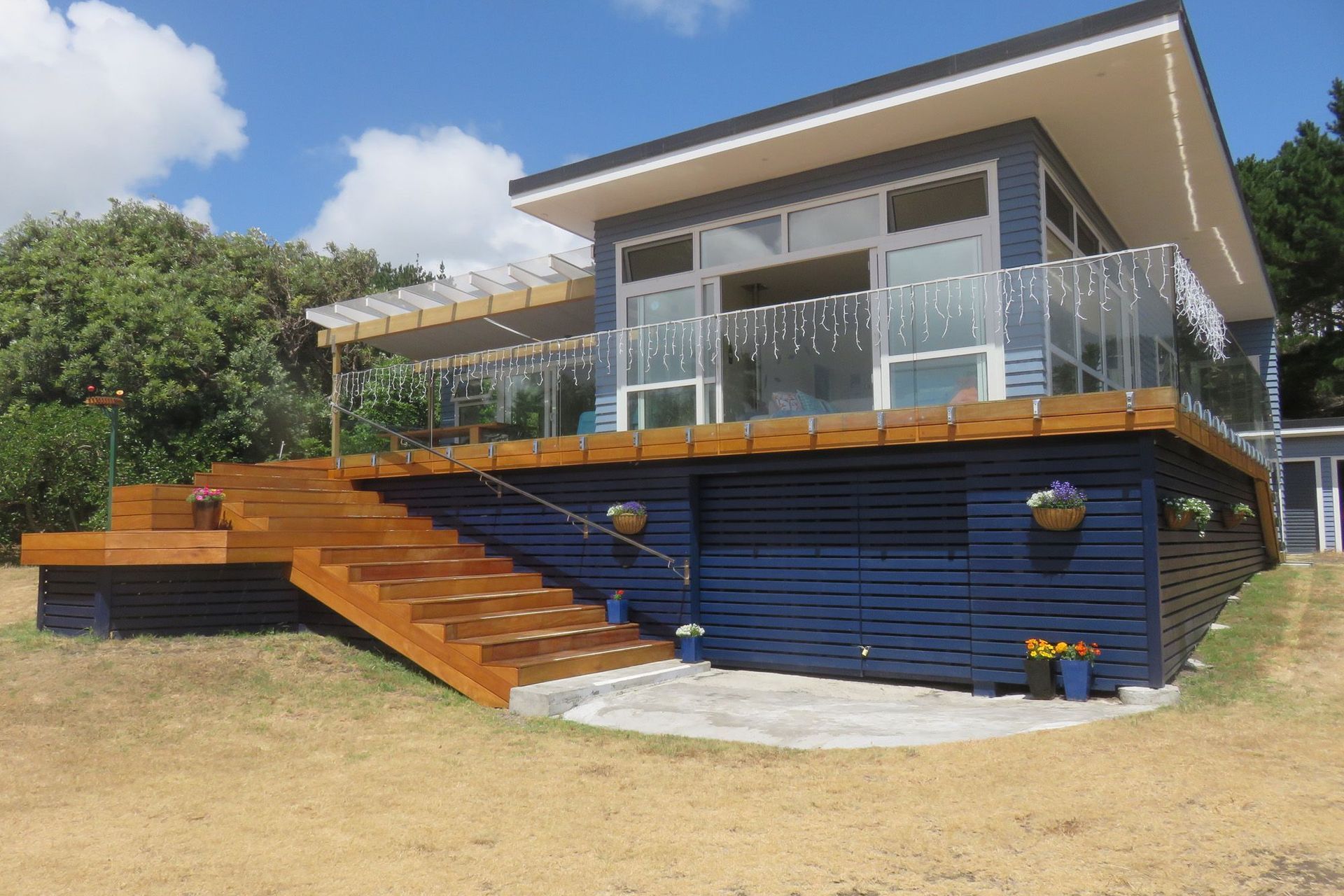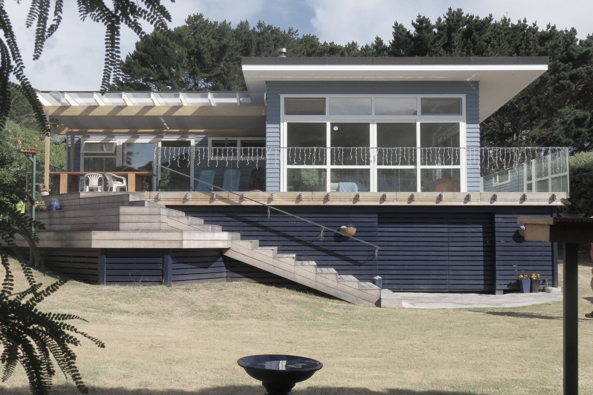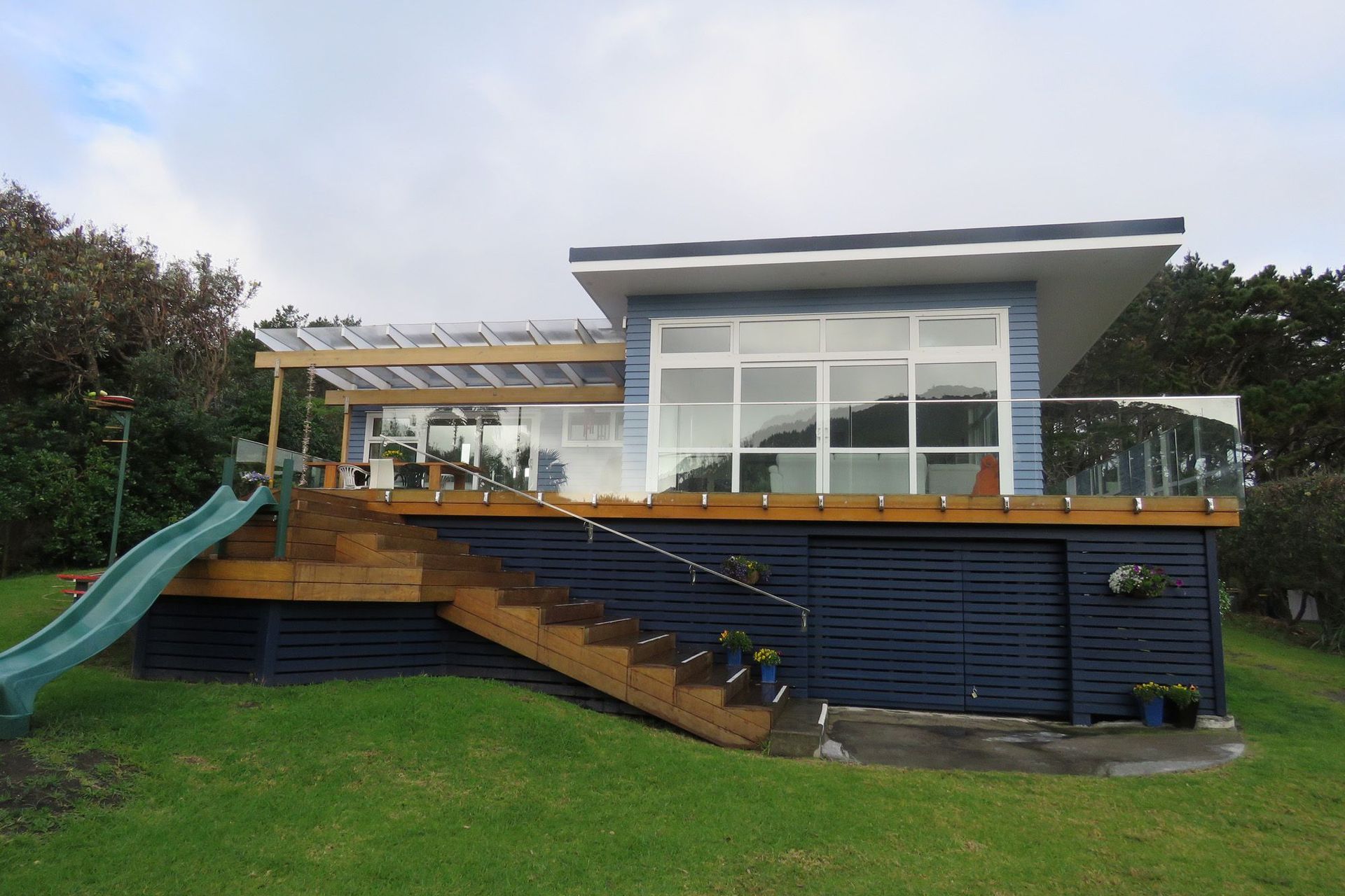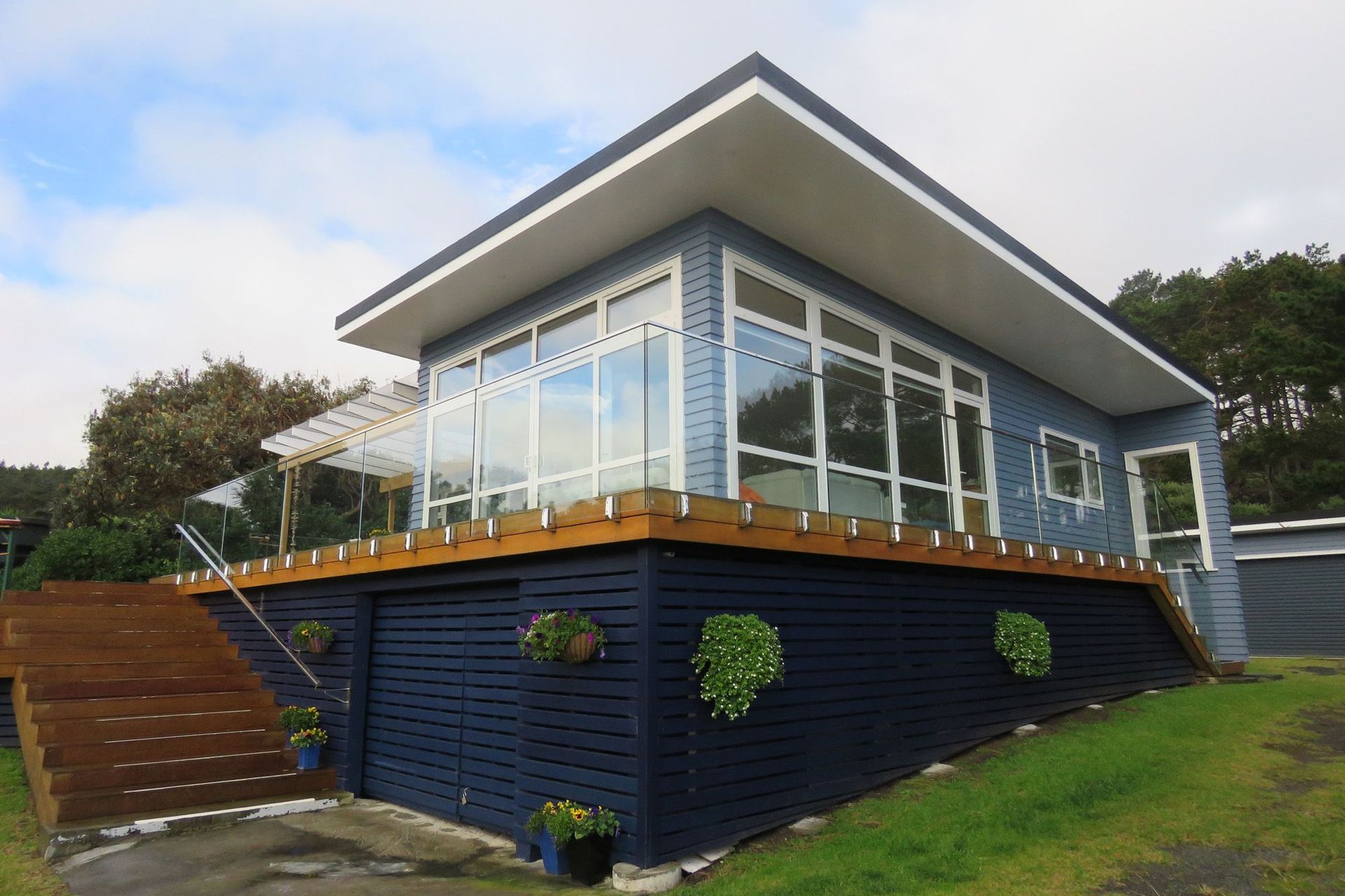 ArchiPro Project Summary - Bethells Beach features modern architecture that complements the coastal landscape, focusing on sustainability and outdoor connectivity.
