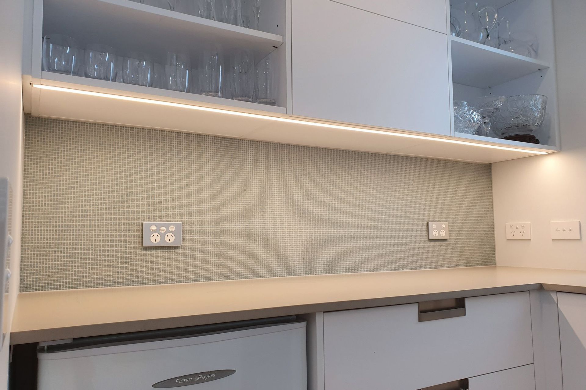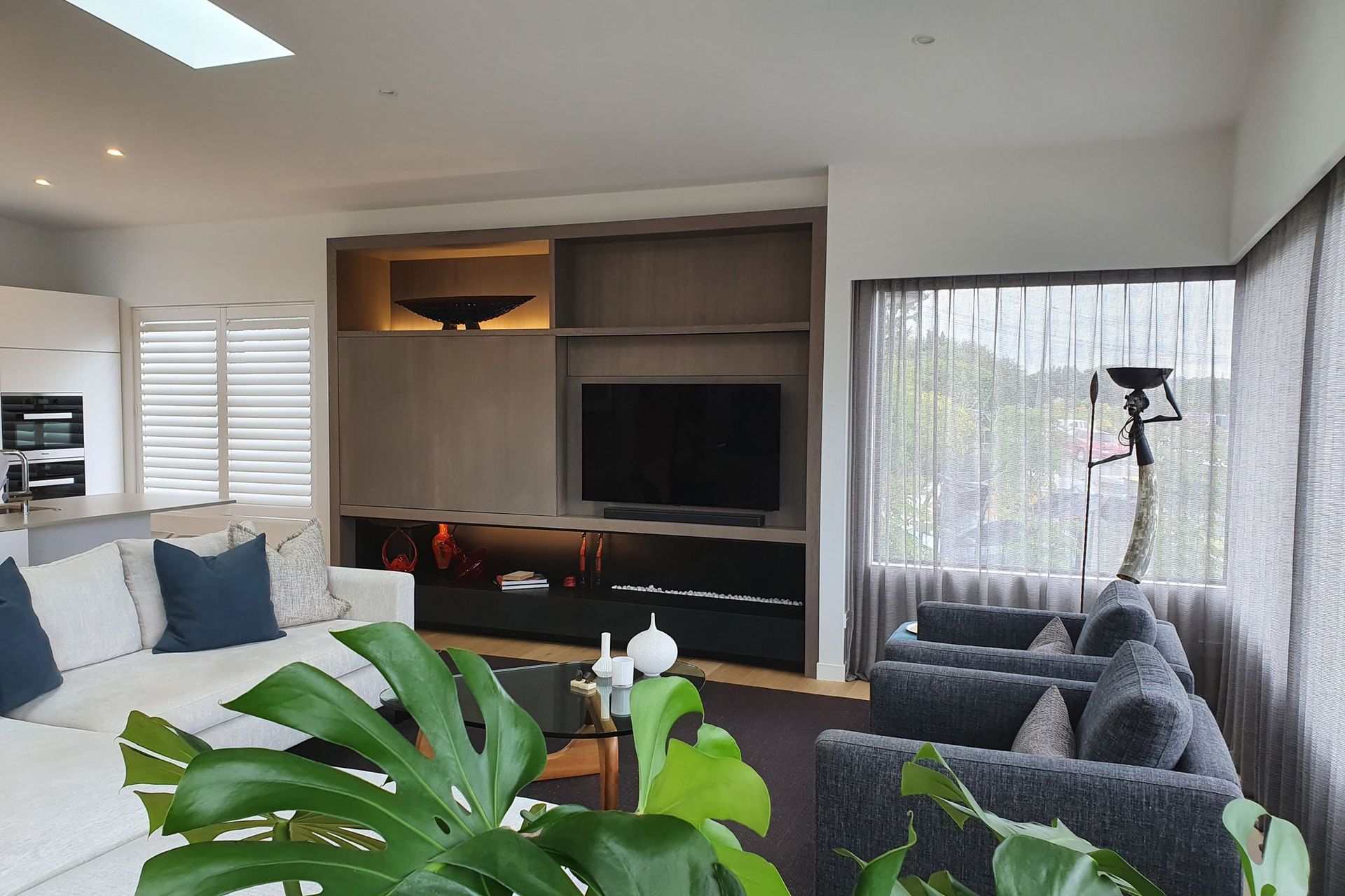 ArchiPro Project Summary - Rutter Home in Milford: A collaborative project where Kinetic Electrical Rodney partnered with client Betty-Anne to fulfill her vision, featuring custom tread lights and a bespoke TV cabinet.