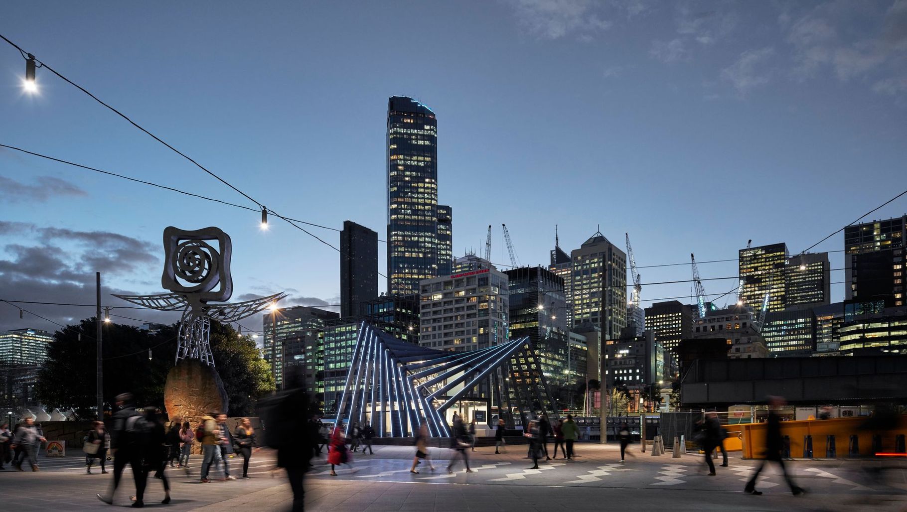 ArchiPro Project Summary - Beulah Pavilion: A dynamic structure built in 48 hours, showcasing the evolving skyline of cities through concentric timber frames that create a sense of movement and offer diverse perspectives.