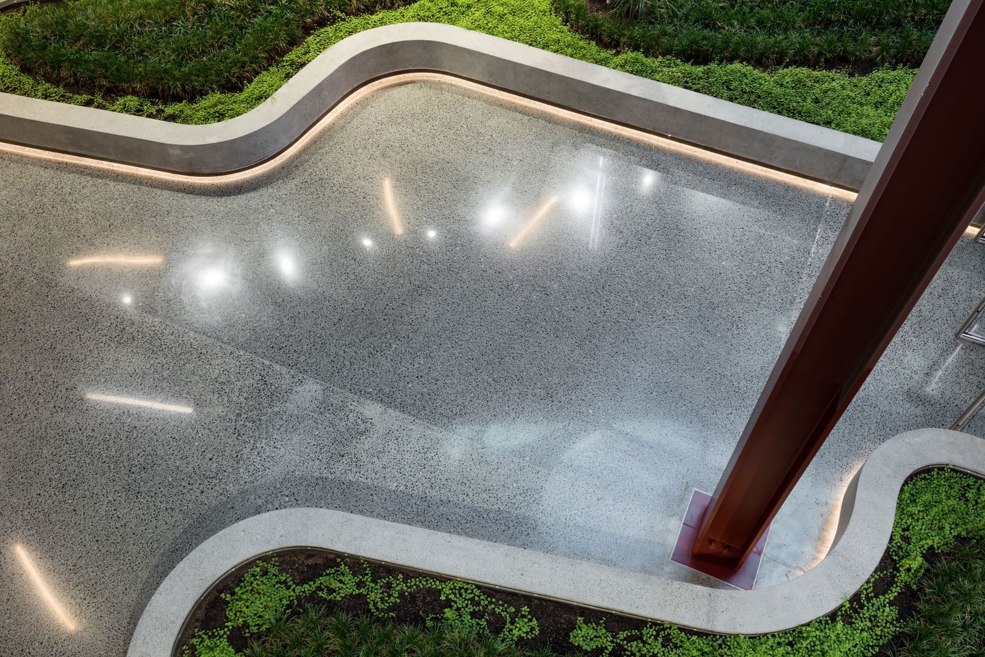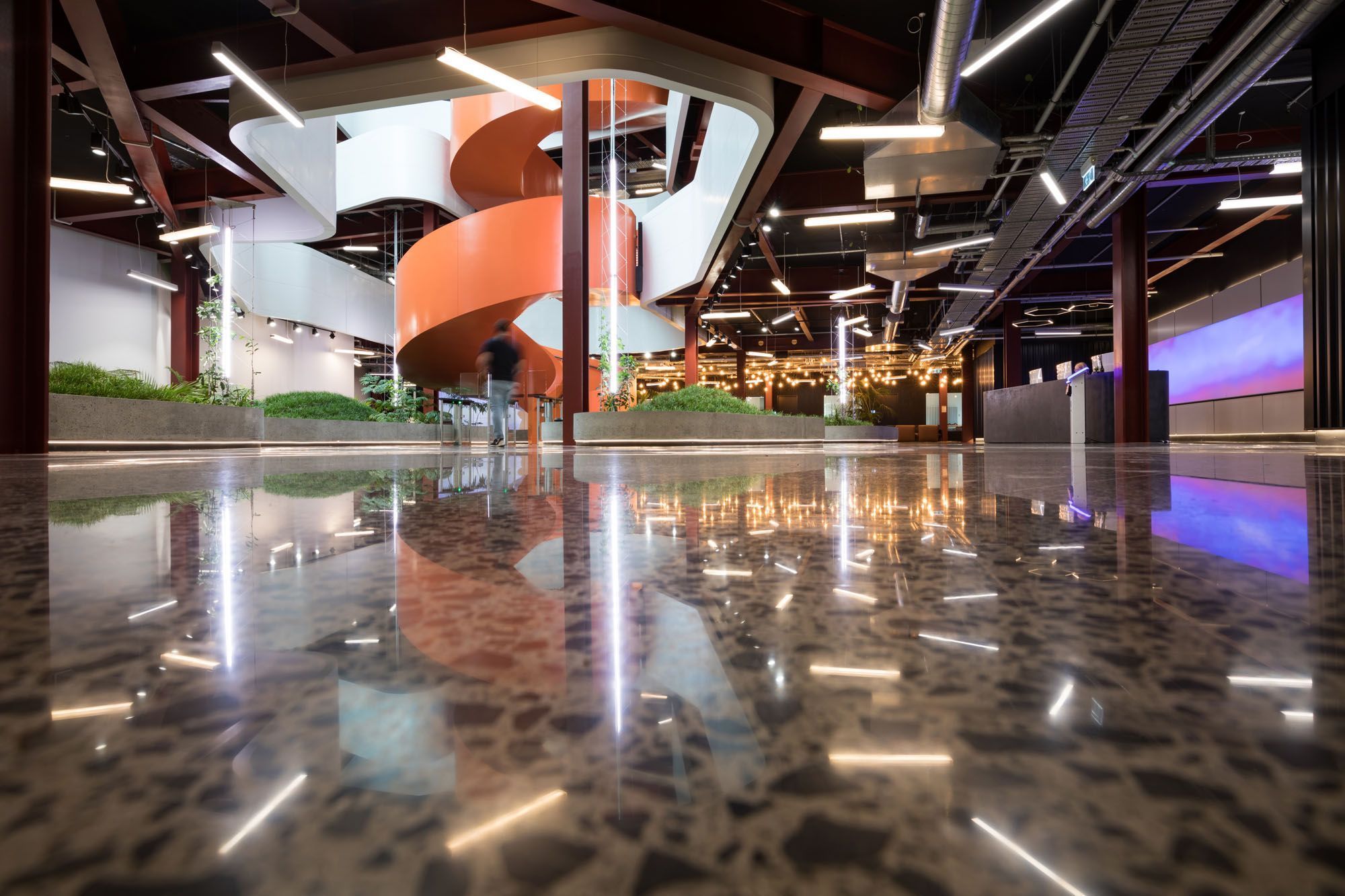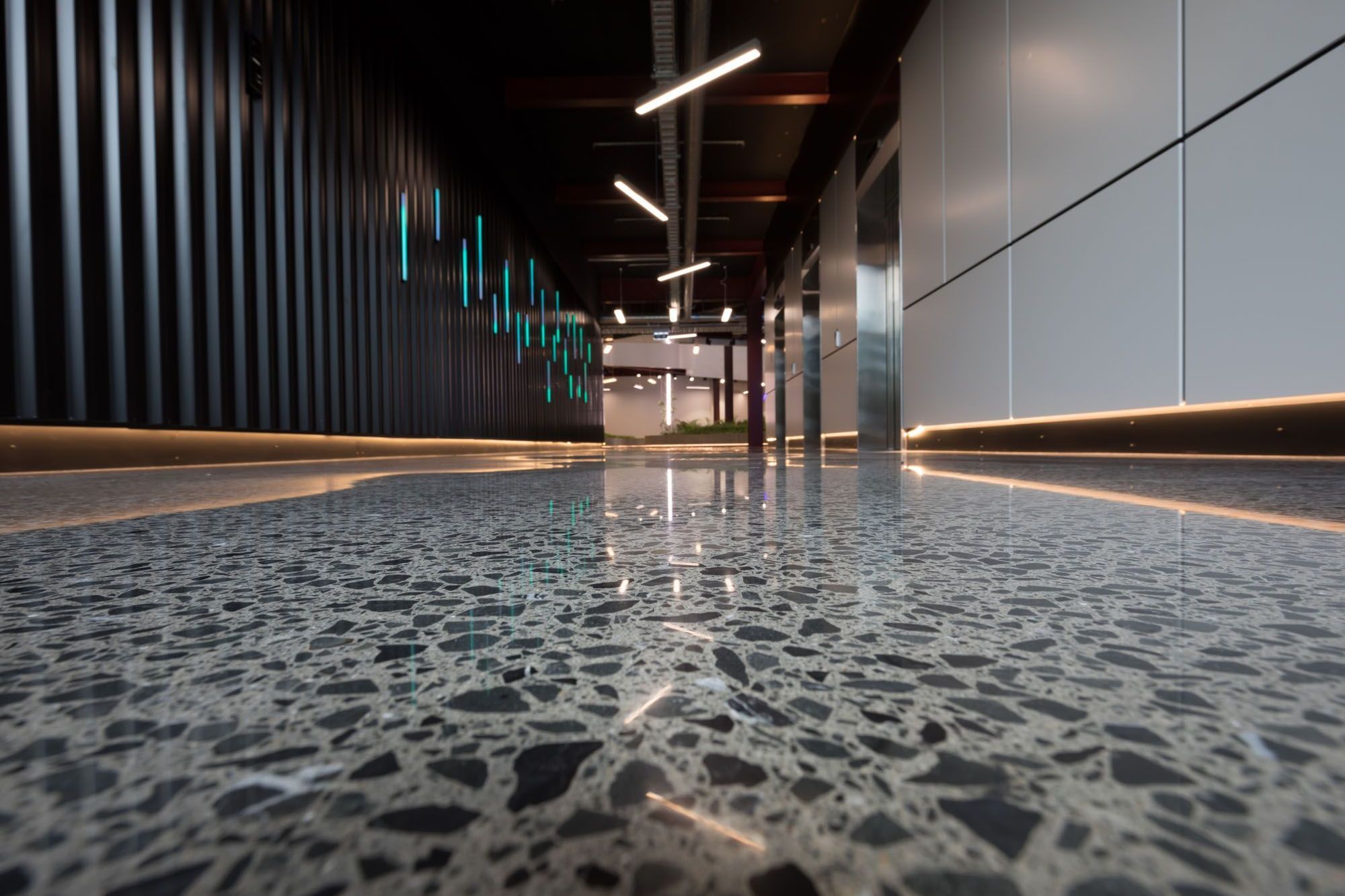 Megafloor. Megafloor is a New Zealand designed and developed range of diamond polished floor finishes.A refinement of raw natural elements, unlocking the natural beauty of regional aggregates hidden in a conventional building material, resulting in a high strength, durable and fashionable surface.