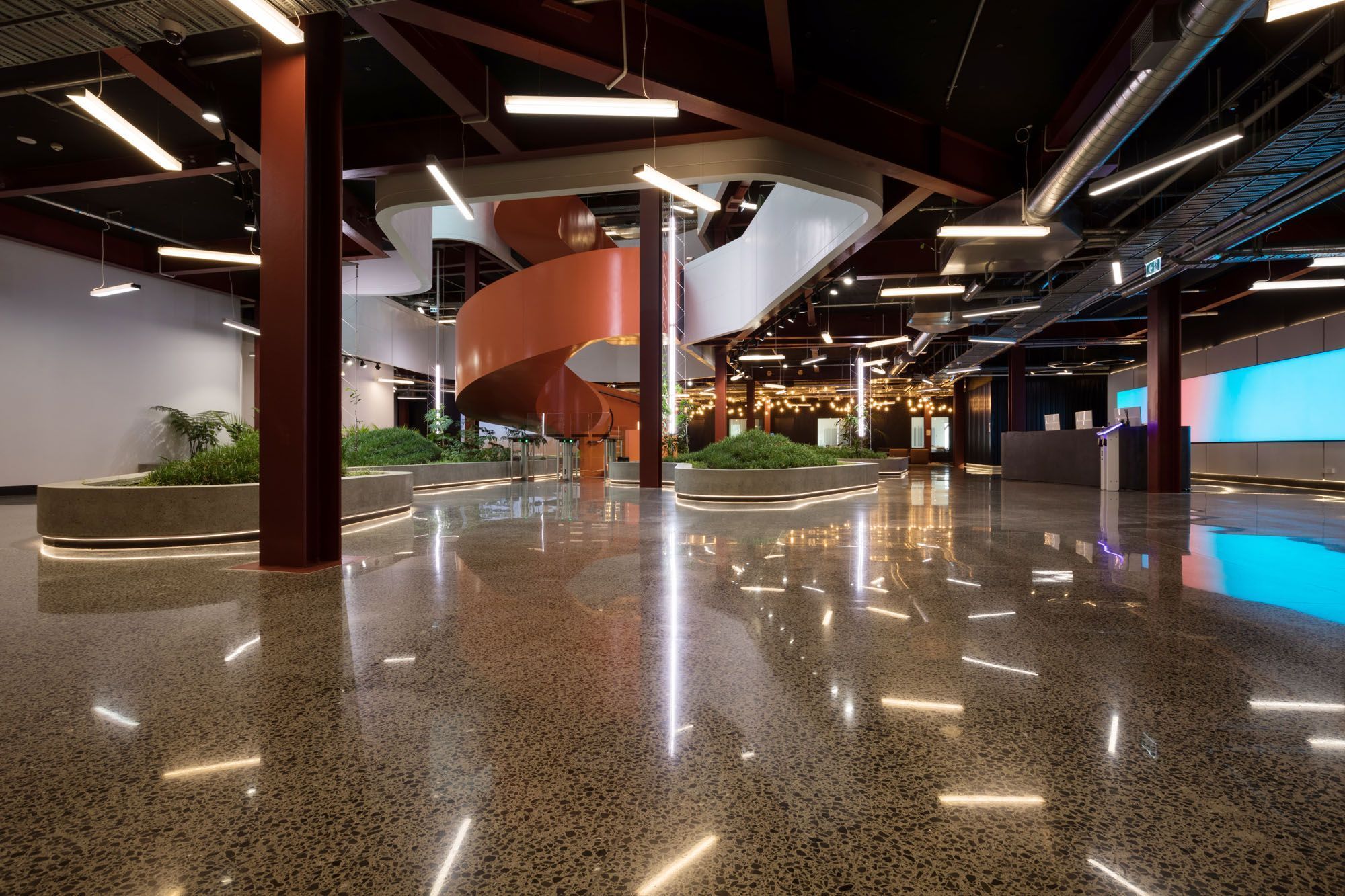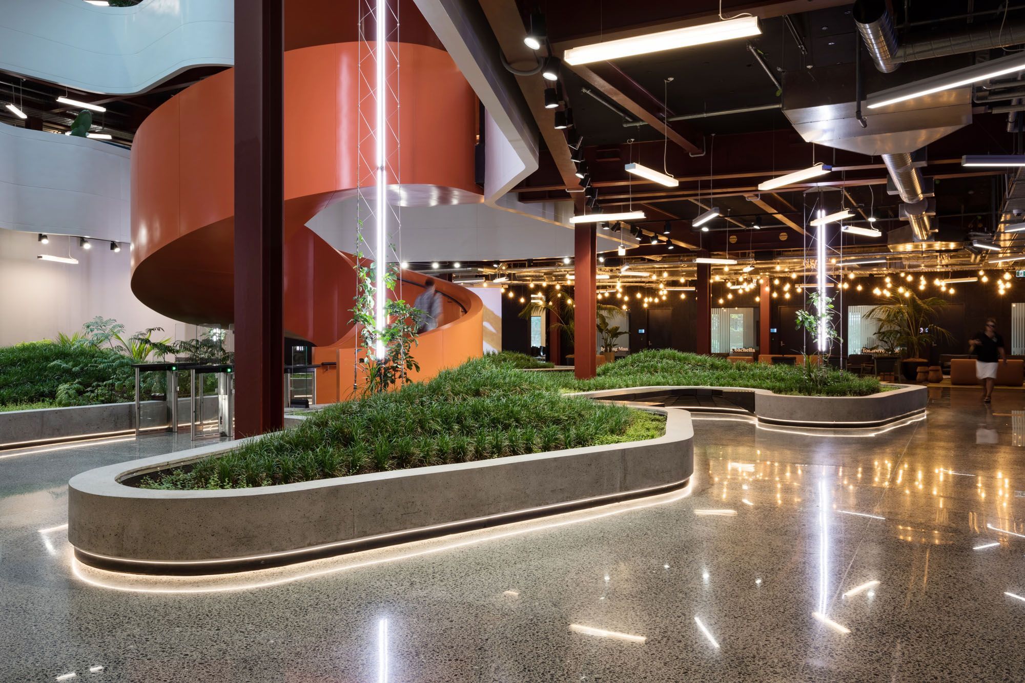 ArchiPro Project Summary - B:Hive Smales Farm Park features flexible office spaces across multiple levels, accommodating businesses of all sizes, complemented by state-of-the-art meeting and event facilities that foster innovation and collaboration.