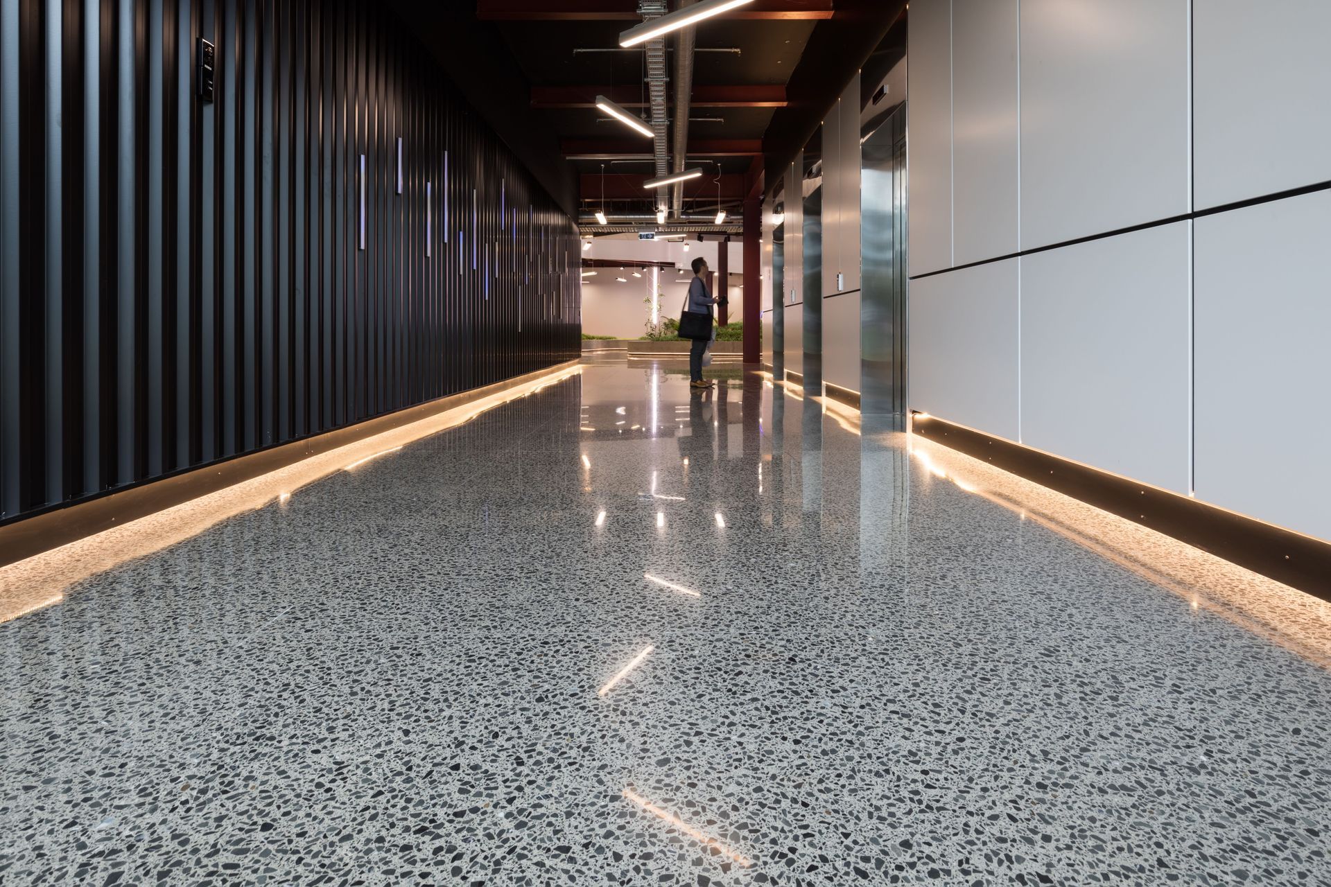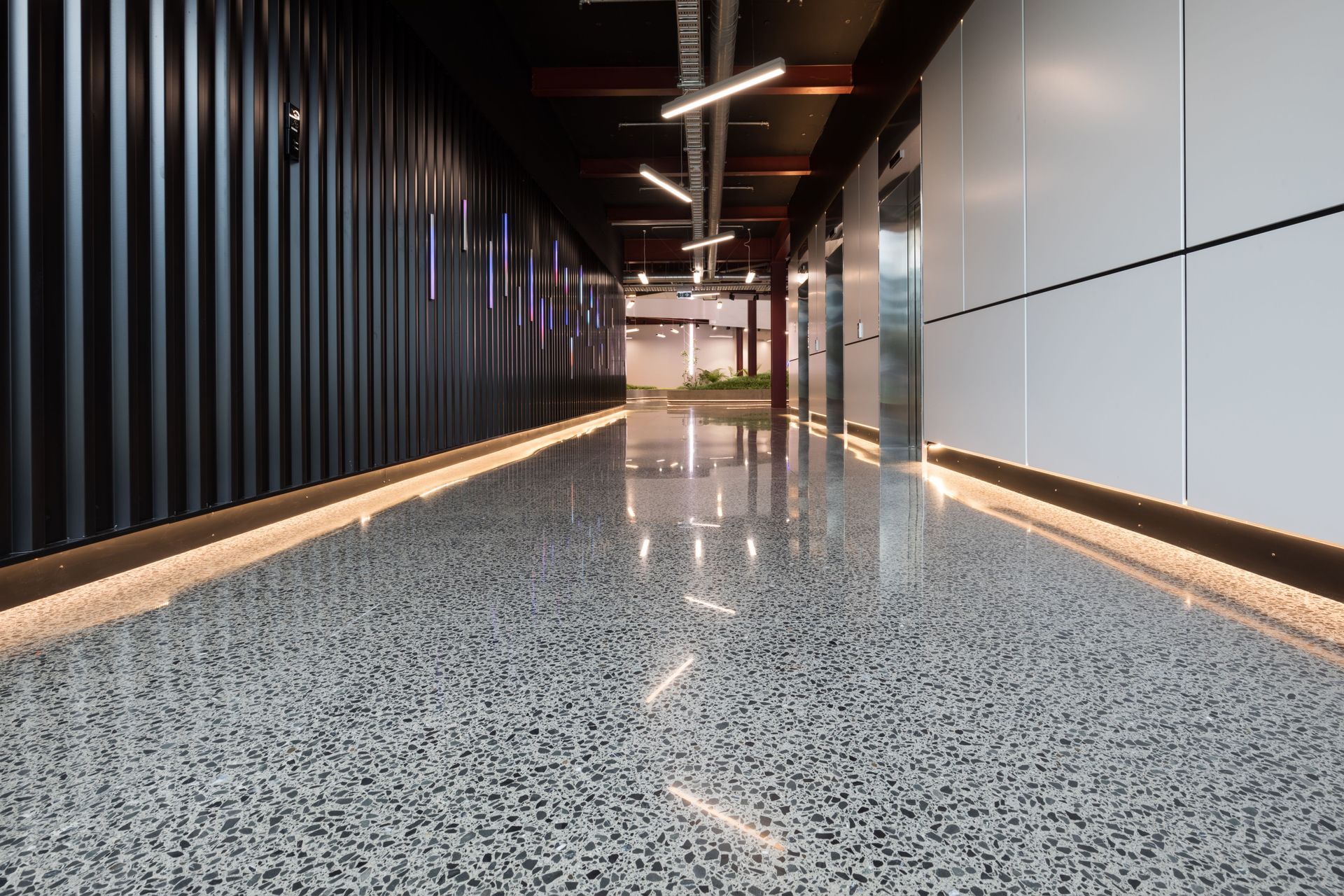 Megafloor. Megafloor is a New Zealand designed and developed range of diamond polished floor finishes.A refinement of raw natural elements, unlocking the natural beauty of regional aggregates hidden in a conventional building material, resulting in a high strength, durable and fashionable surface.