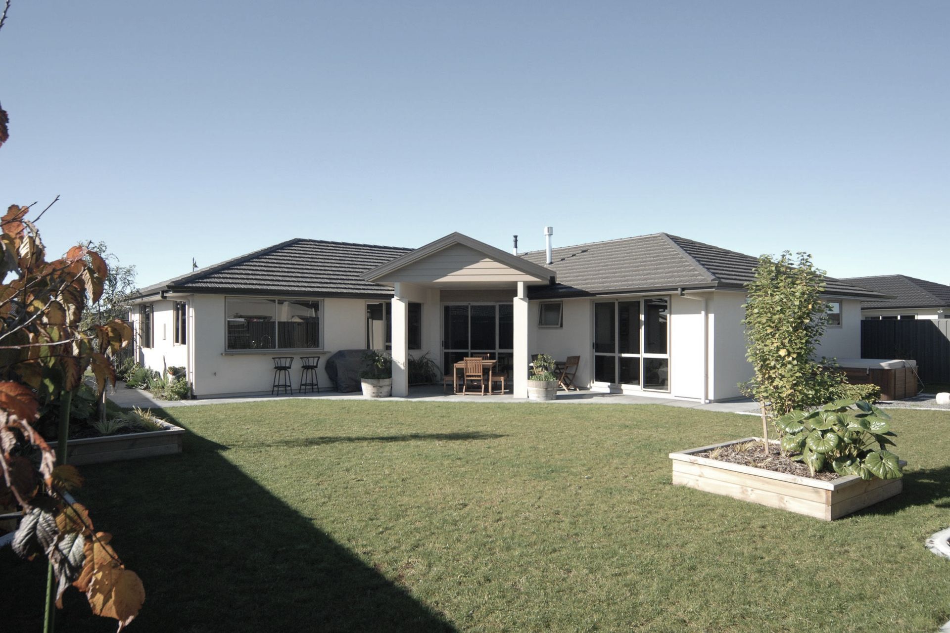 ArchiPro Project Summary - A thoughtfully designed family home that maximizes its large section with attractively landscaped gardens and an expansive rear lawn featuring lush green borders.