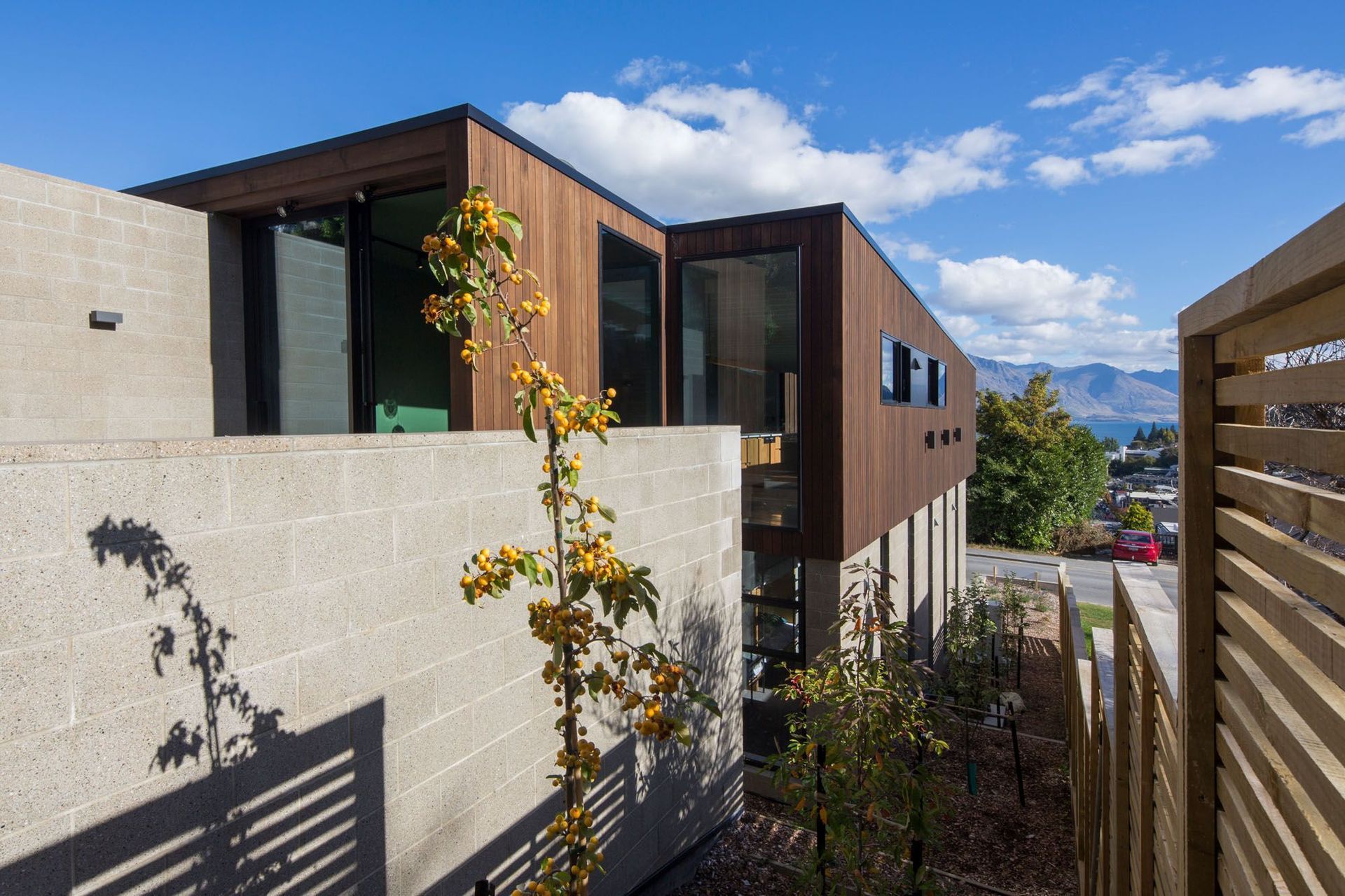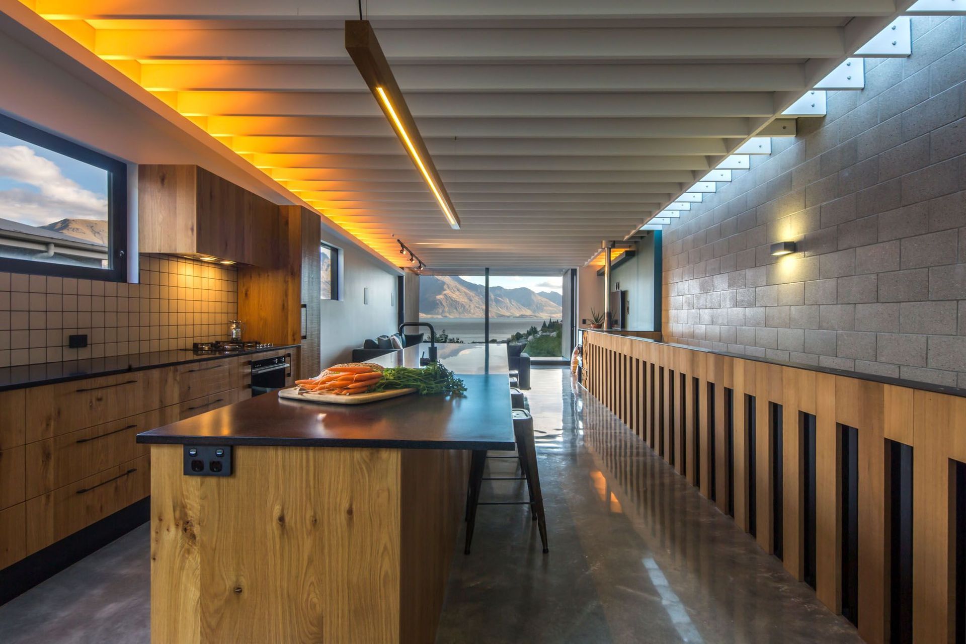 ArchiPro Project Summary - A striking duplex apartment by Assembly Architects, featuring three levels that maximize stunning views of Lake Wakatipu, designed to accommodate three generations of family in a side-by-side arrangement. Winner of 2017 Southern and Master Builders Home of the Year.