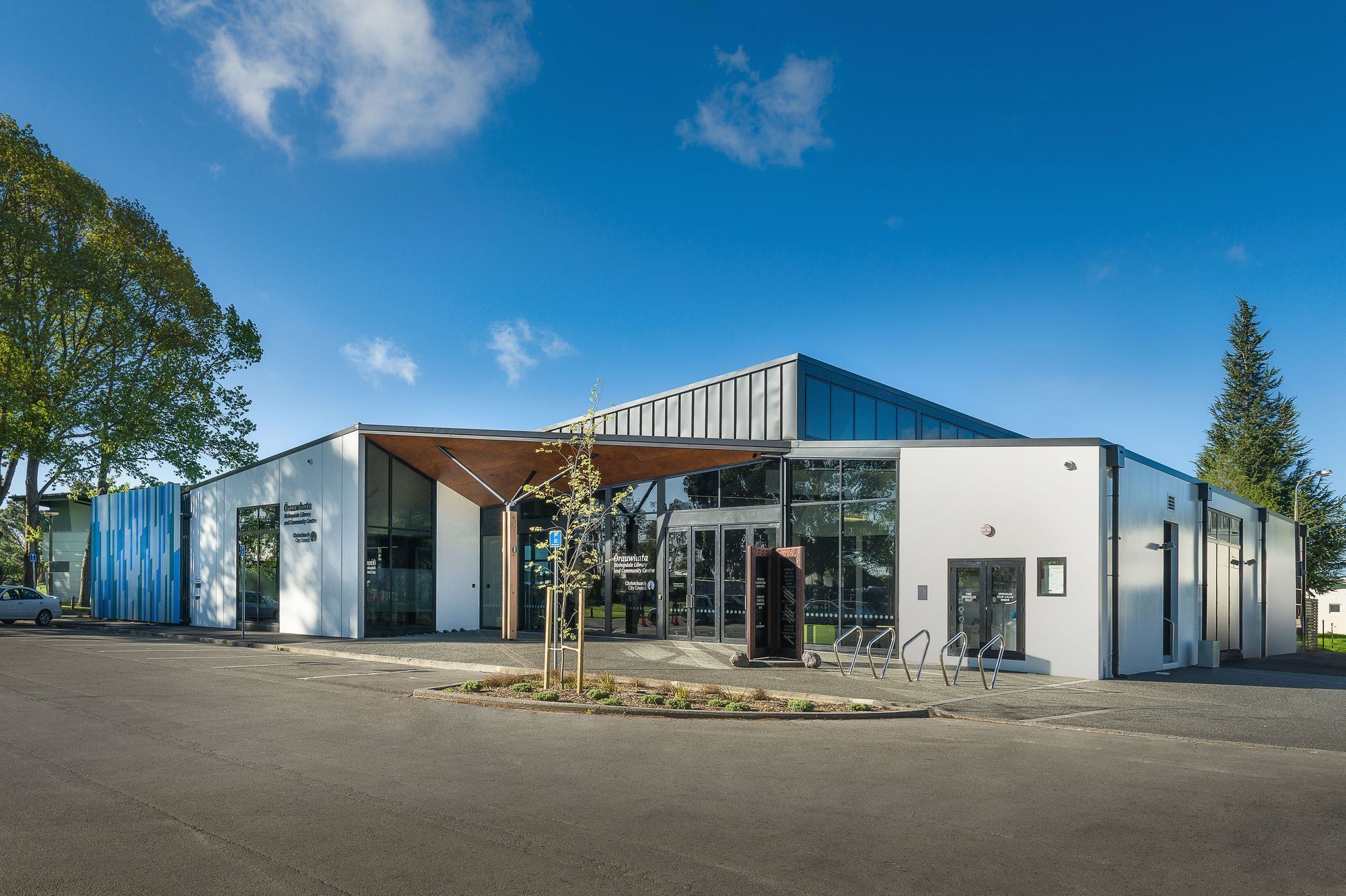 ArchiPro Project Summary - Bishopdale Library and Community Centre: A vibrant hub for the growing community, seamlessly integrating public spaces with the urban and natural environment.