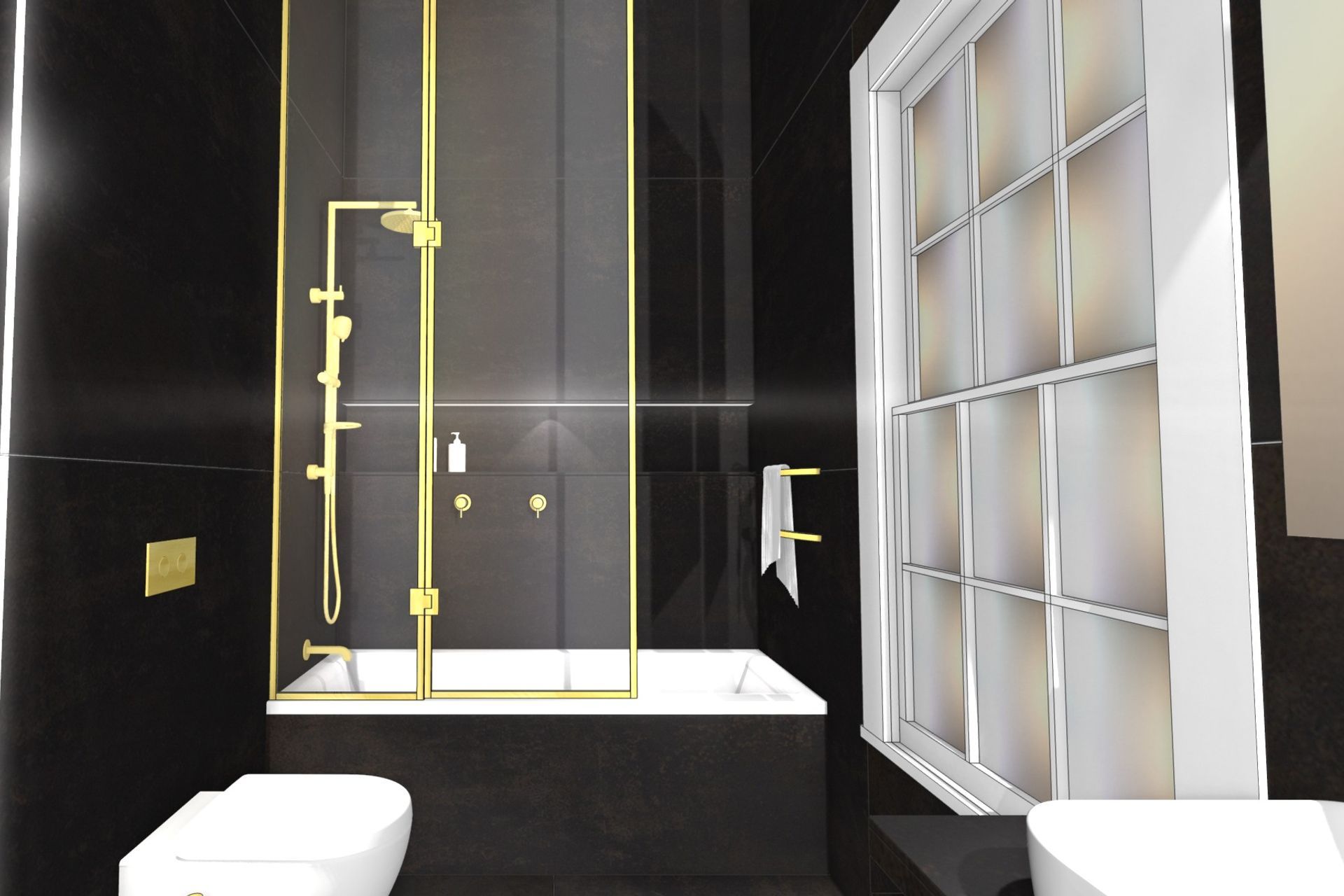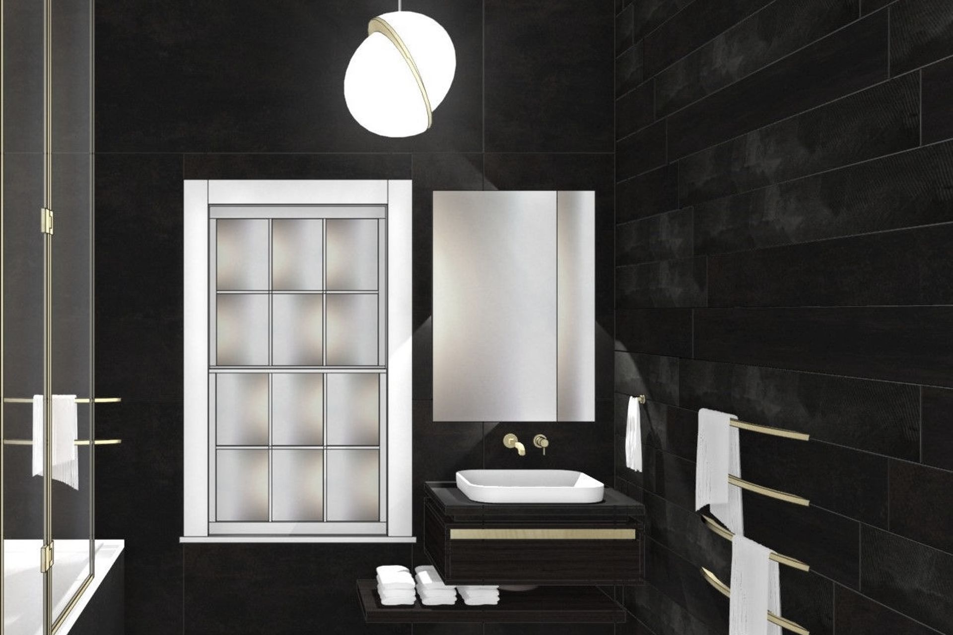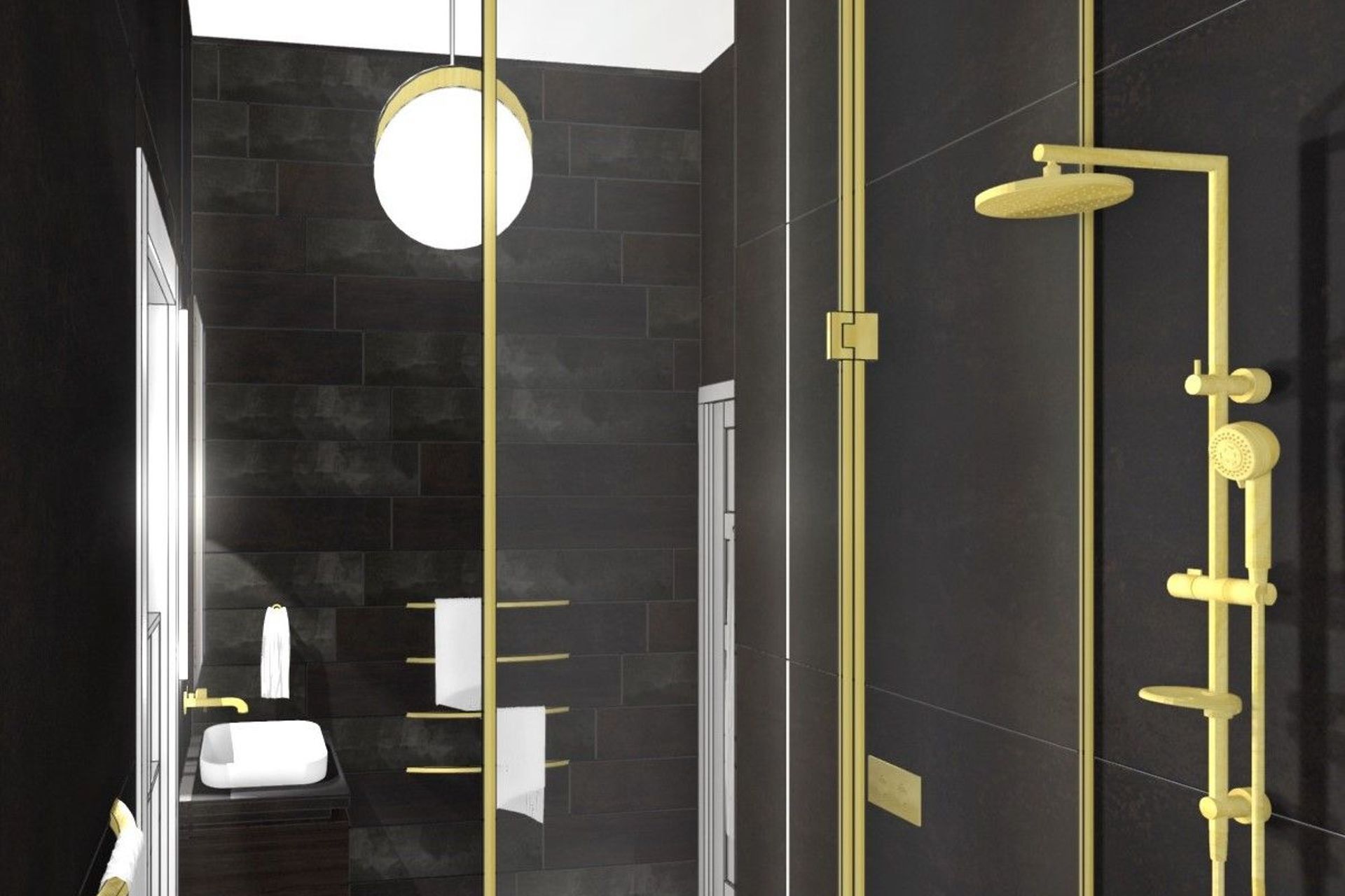 ArchiPro Project Summary - A luxurious blend of black tiles and gold accents creates an elegant and functional bathroom retreat.