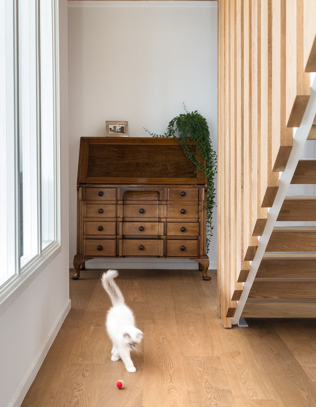 ArchiPro Project Summary - A transformative renovation of a 1970s Auckland home, enhancing accessibility and family living with elegant oiled PEFC certified French oak features, inspired by the neighboring oak tree, creating a harmonious blend of solidity and lightness.