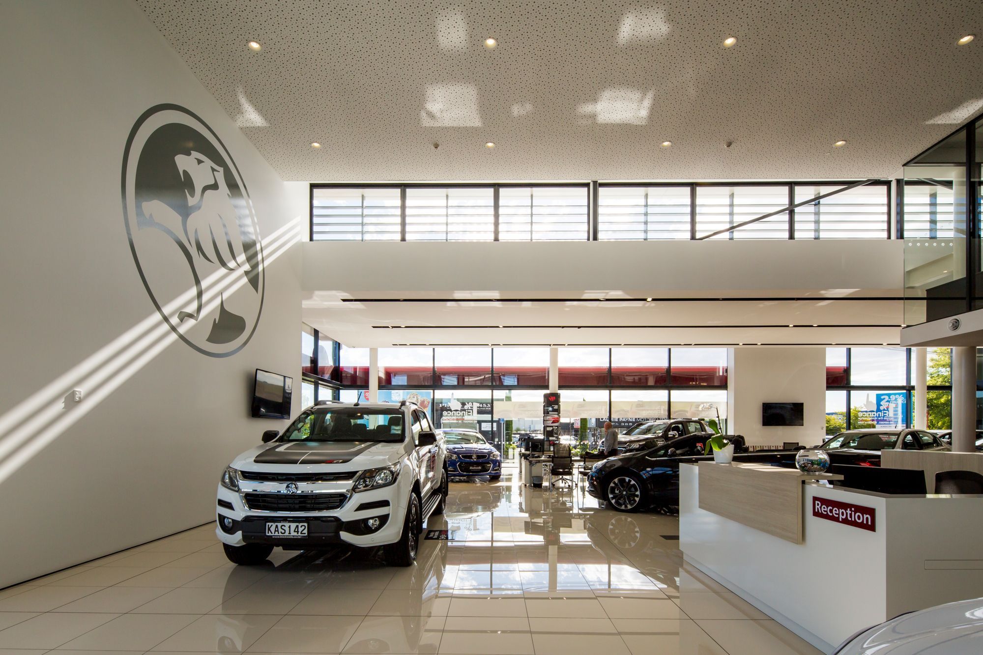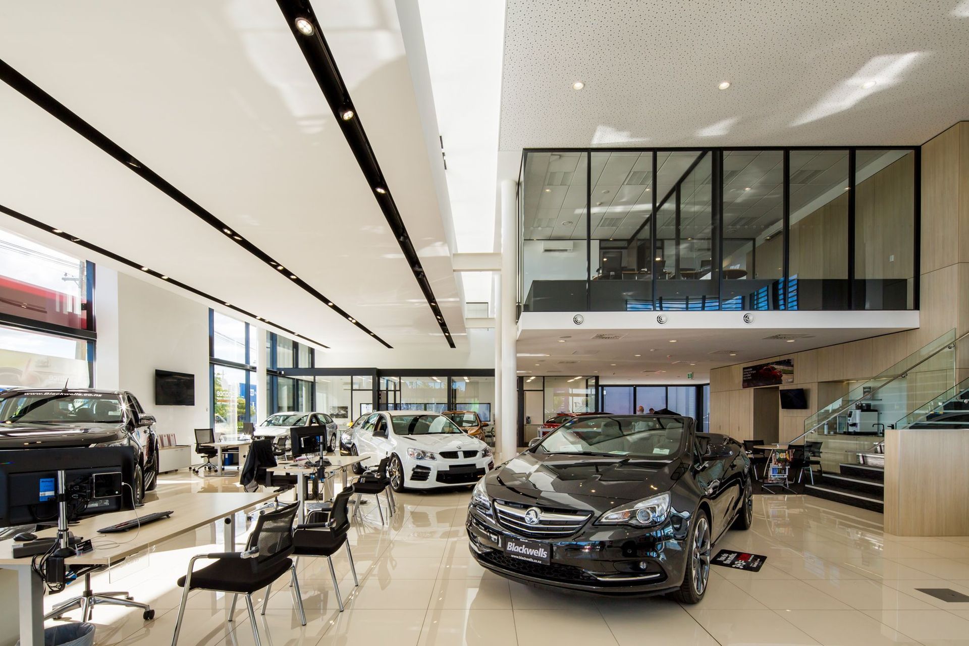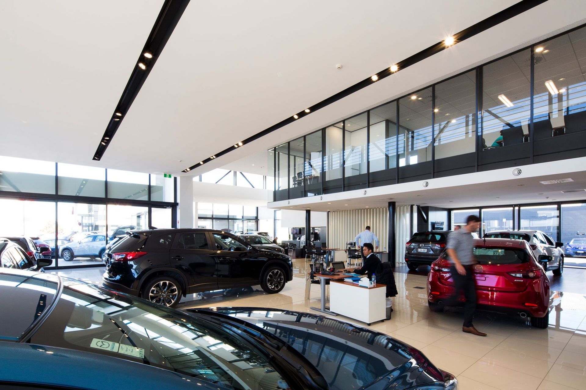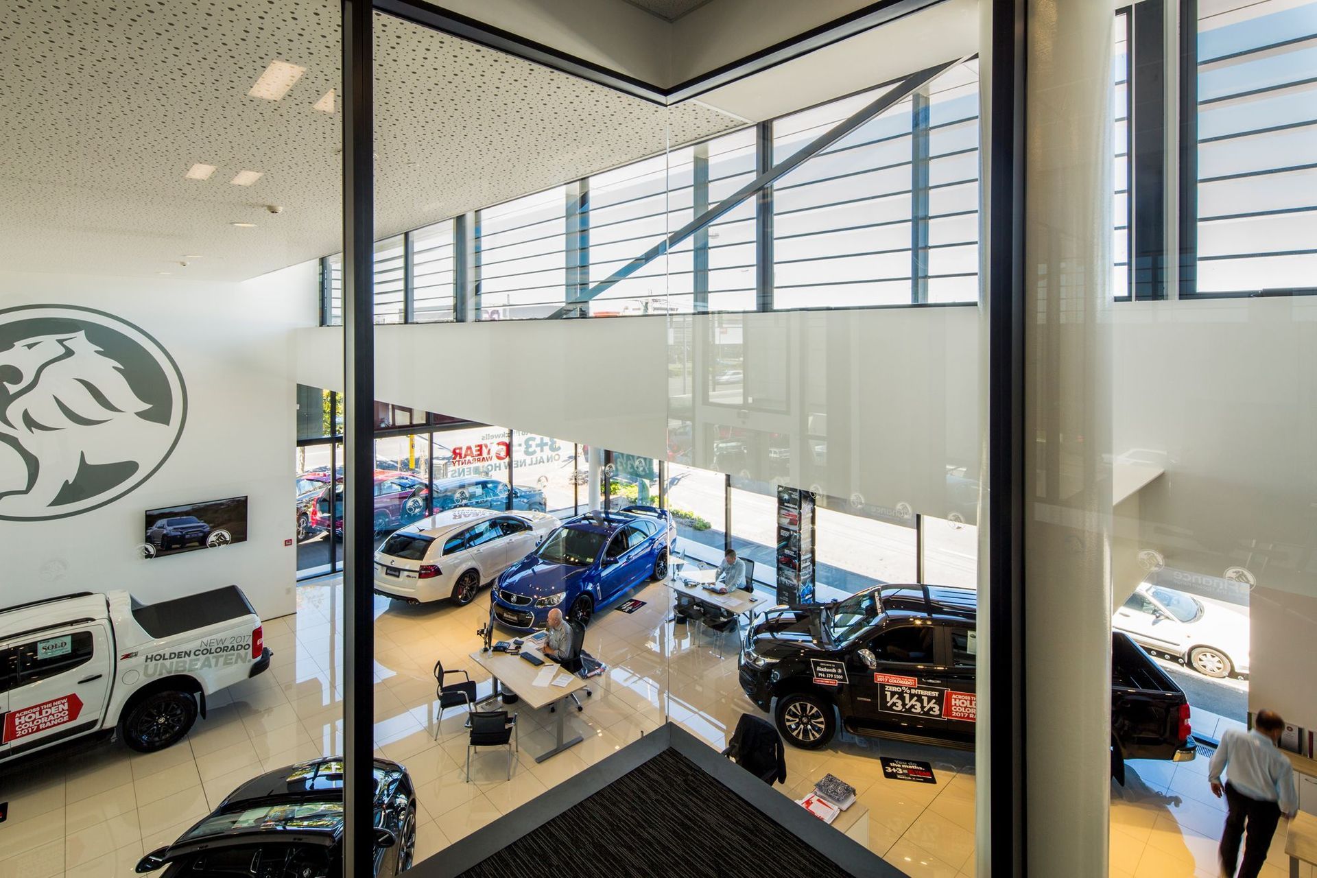 ArchiPro Project Summary - Blackwells Holden & Mazda Showrooms featuring two distinct yet complementary car showrooms with innovative design solutions, extensive glazing, and carefully controlled signage, enhancing visibility and engagement while addressing site-specific challenges.