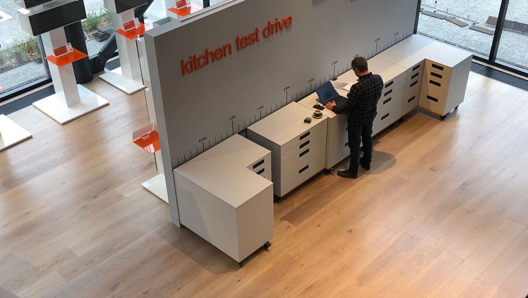 ArchiPro Project Summary - Large-format engineered Unfinished Oak flooring enhances the aesthetic of a newly designed showroom, featuring on-site sanding and coating for a refined finish.