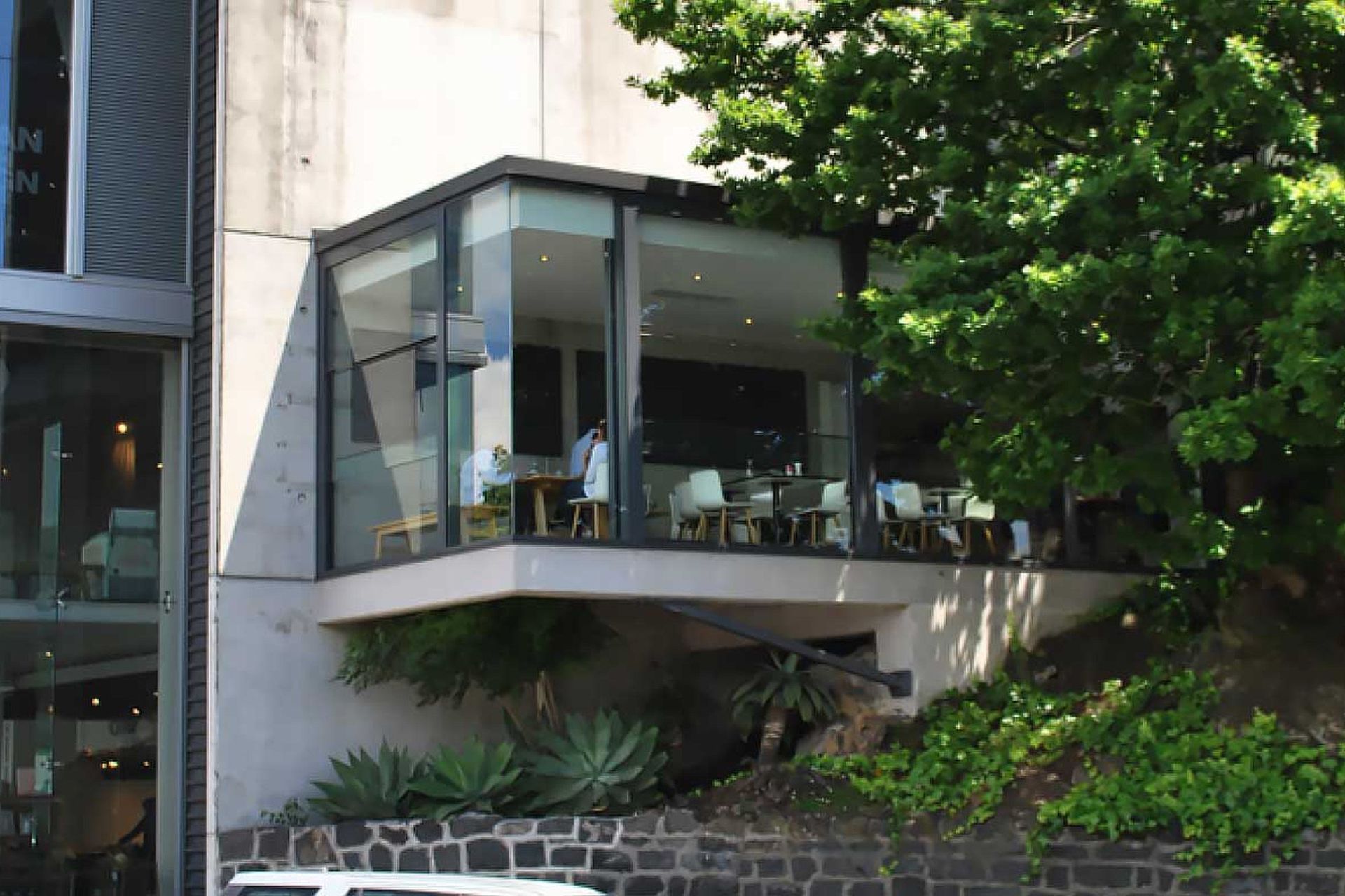 ArchiPro Project Summary - Innovative café extension for Bo Concept, maximizing visibility and space through strategic air rights acquisition and collaboration with Jasmax architects, resulting in a functional and aesthetically pleasing addition to the existing building.
