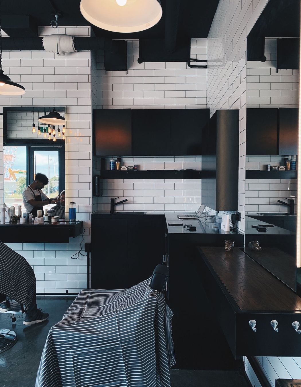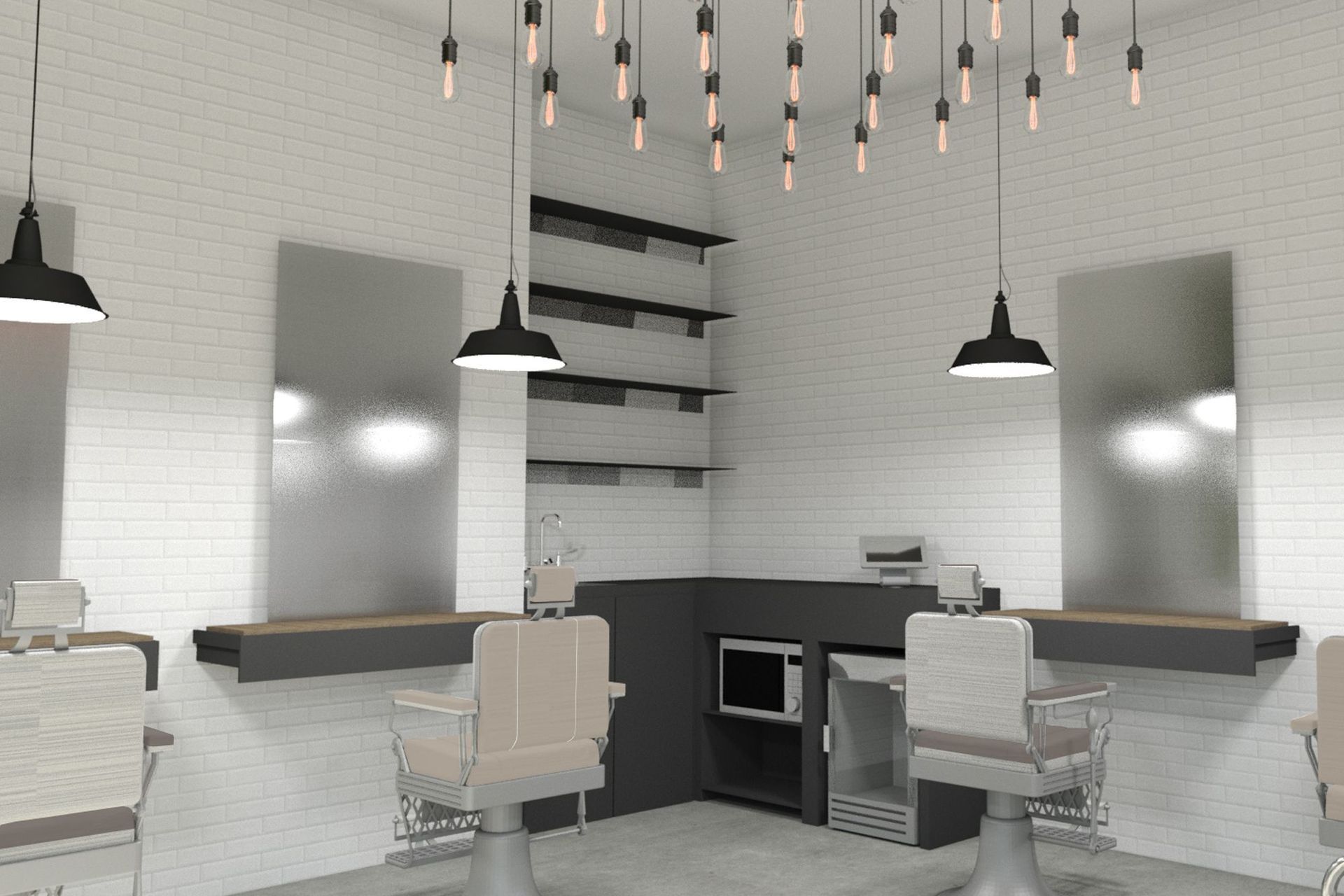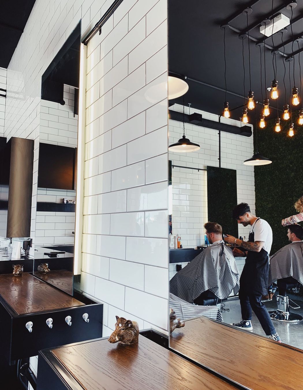 ArchiPro Project Summary - Vintage barbershop design with contemporary elements, featuring acoustic enhancements and a full-height moss wall for a touch of greenery in Auckland City.