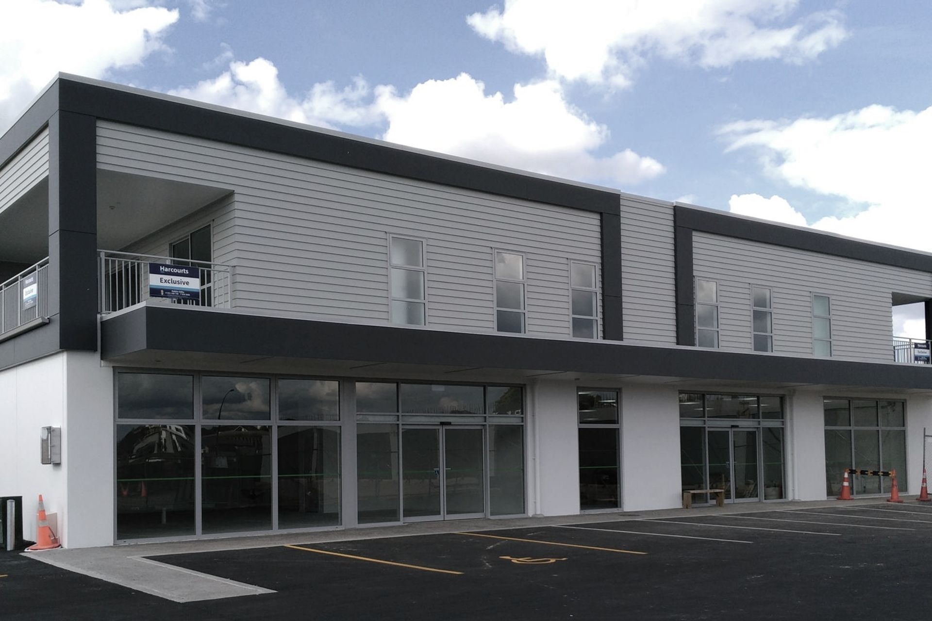 ArchiPro Project Summary - Two-storied mixed-use building featuring a Superette, bakery, and four modern apartments with balconies, designed for comfort and convenience in Hamilton.