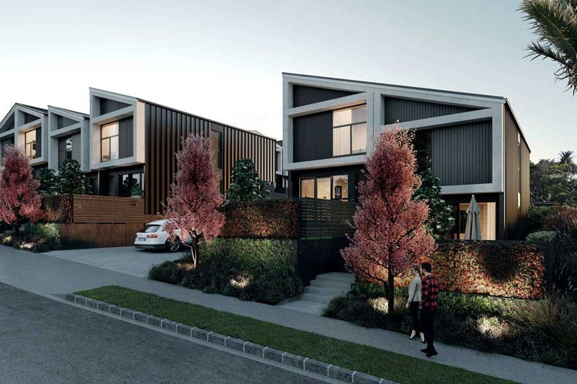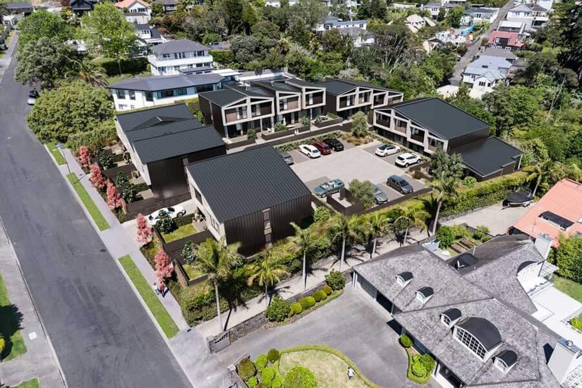 ArchiPro Project Summary - Exclusive boutique townhouse development in St Heliers featuring 19 high-end homes with open plan living, modern kitchens, landscaped gardens, and stunning views of Rangitoto Island and the Hauraki Gulf.