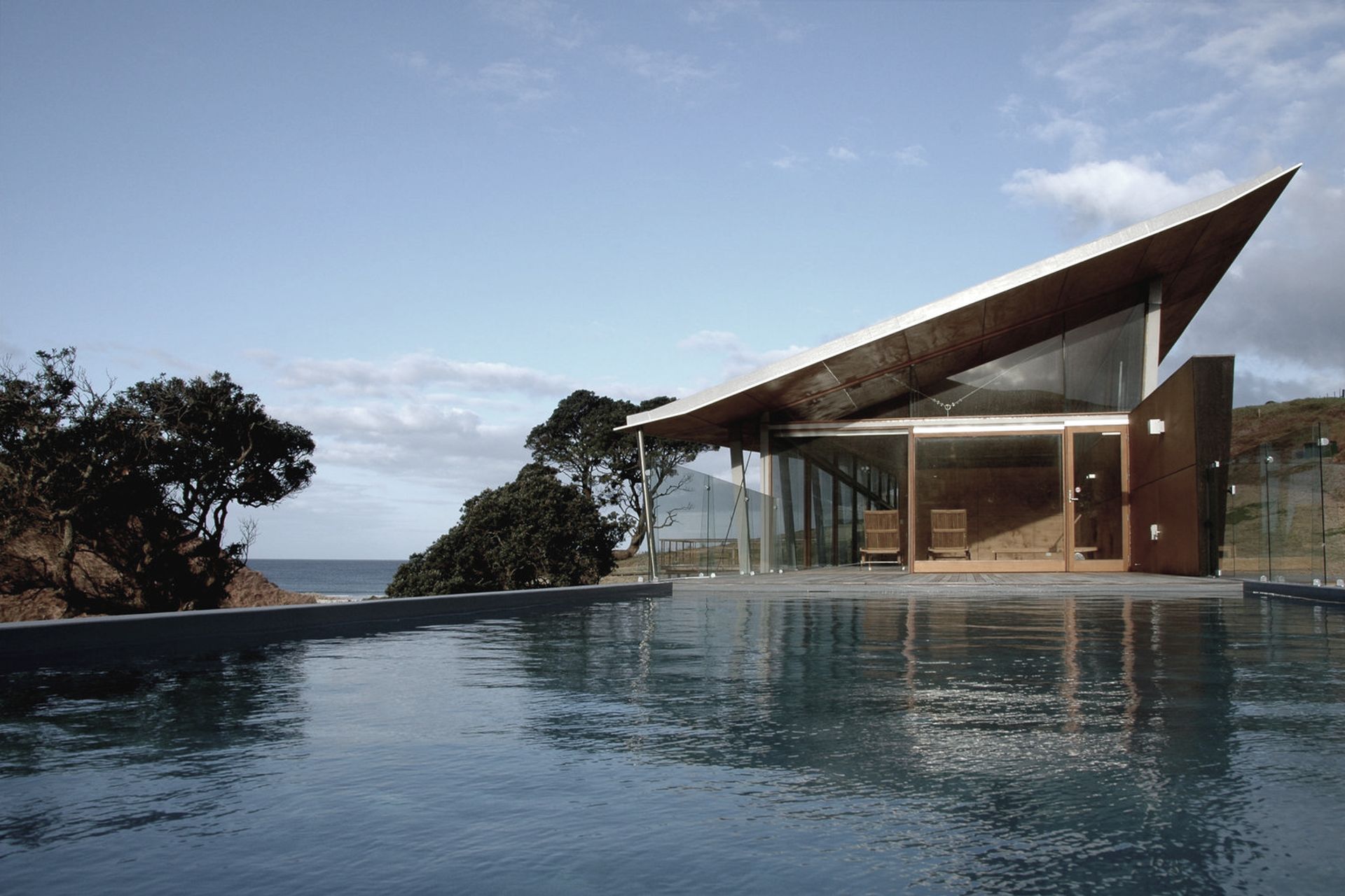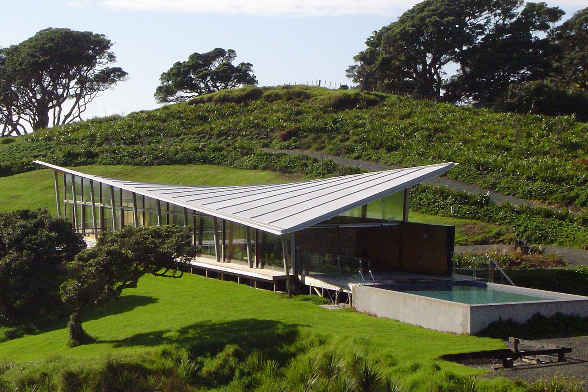 ArchiPro Project Summary - Breamtail Lodge, a stunning architectural project completed in 2006, located at Breamtail Farm in Mangawhai, showcasing the artistry of design and construction, with photography by Christine Hanen.