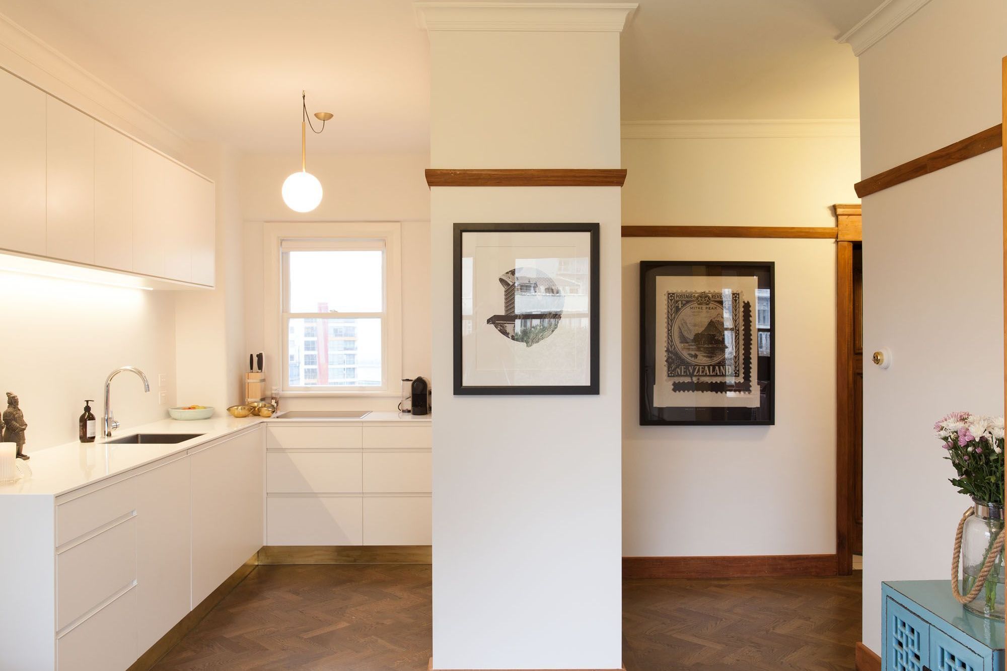 ArchiPro Project Summary - Renovation of a heritage-listed Brooklyn apartment blending 1930s neo-Georgian architecture with modern amenities, featuring restored original mouldings, a stunning French Oak parquet floor, and an open layout enhancing natural light.