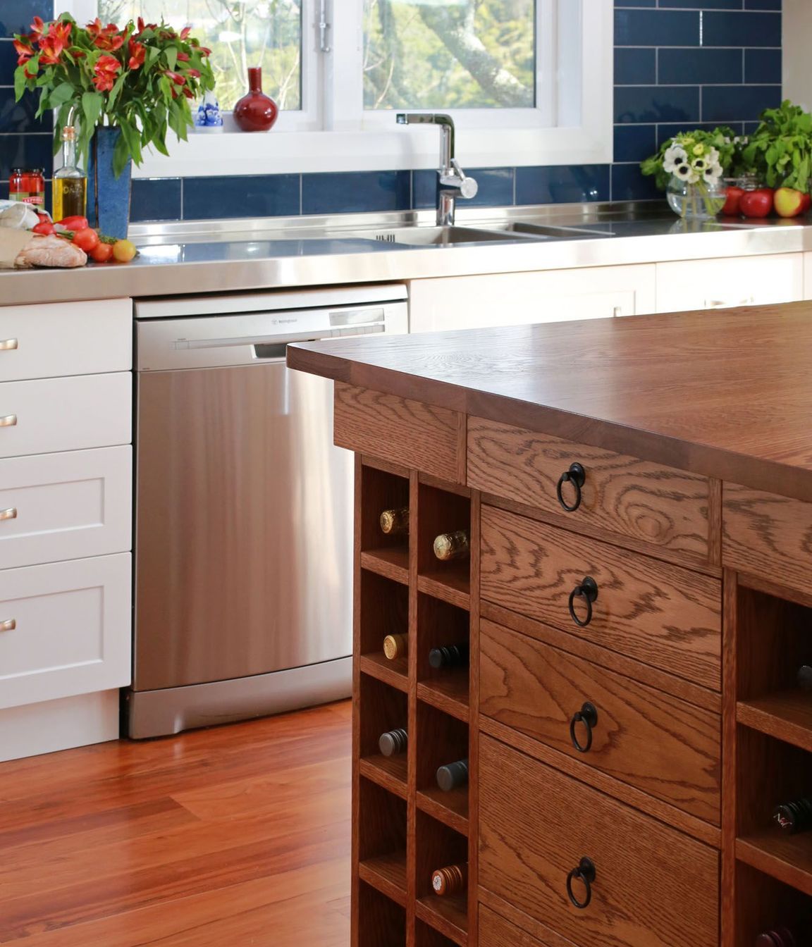 ArchiPro Project Summary - Contemporary renovation of a double-story Wellington villa, completed in 2018, featuring a custom-made oak kitchen island that enhances both functionality and aesthetics for a busy, sociable family.