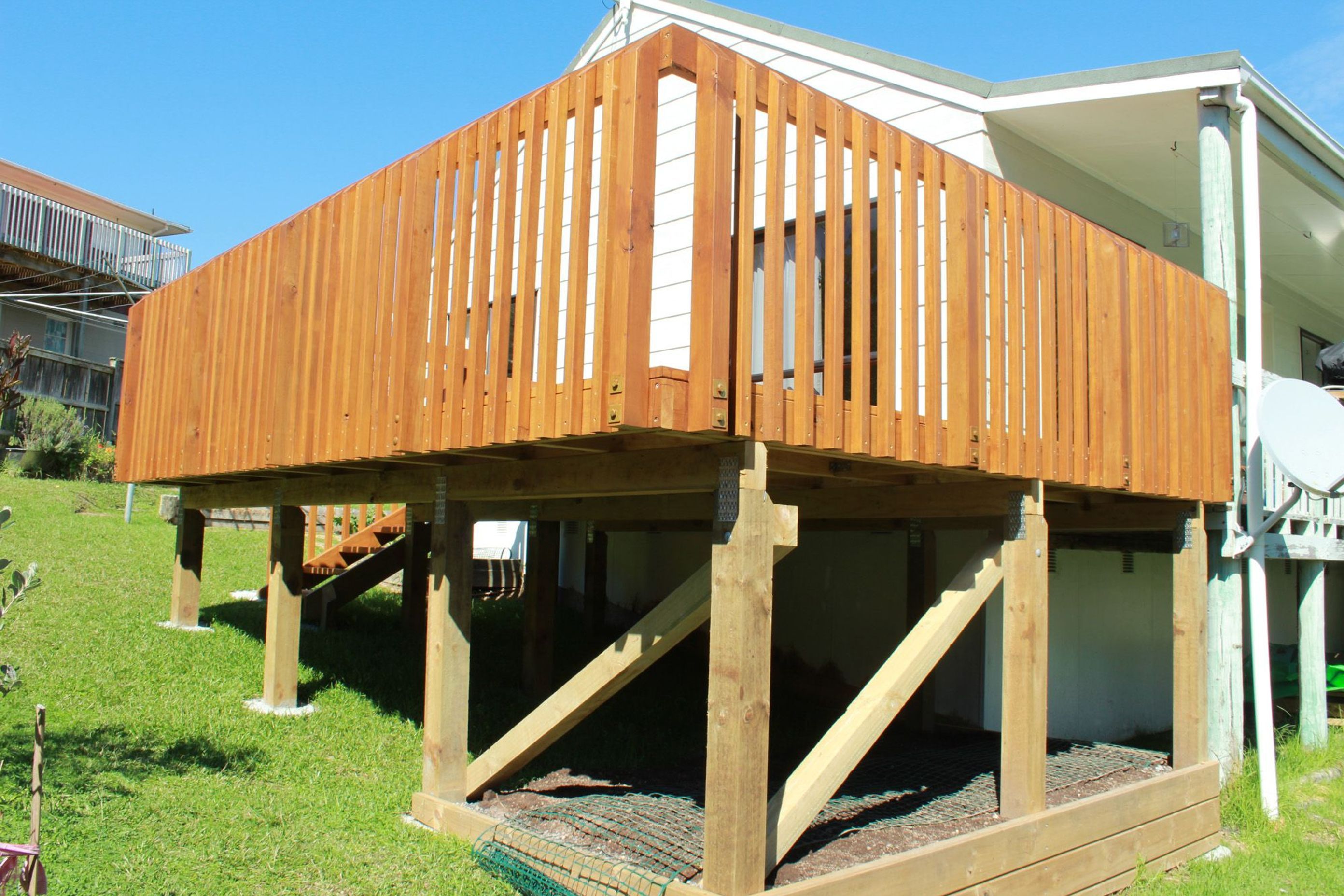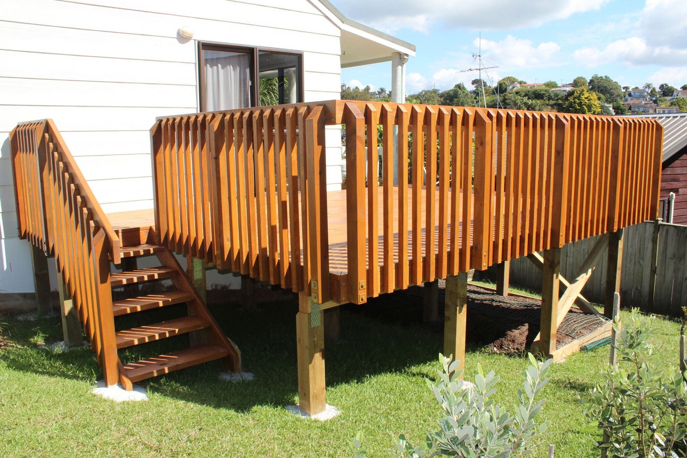ArchiPro Project Summary - A large raised pine deck enhances outdoor living, seamlessly connecting an existing wrap-around deck to the garden.