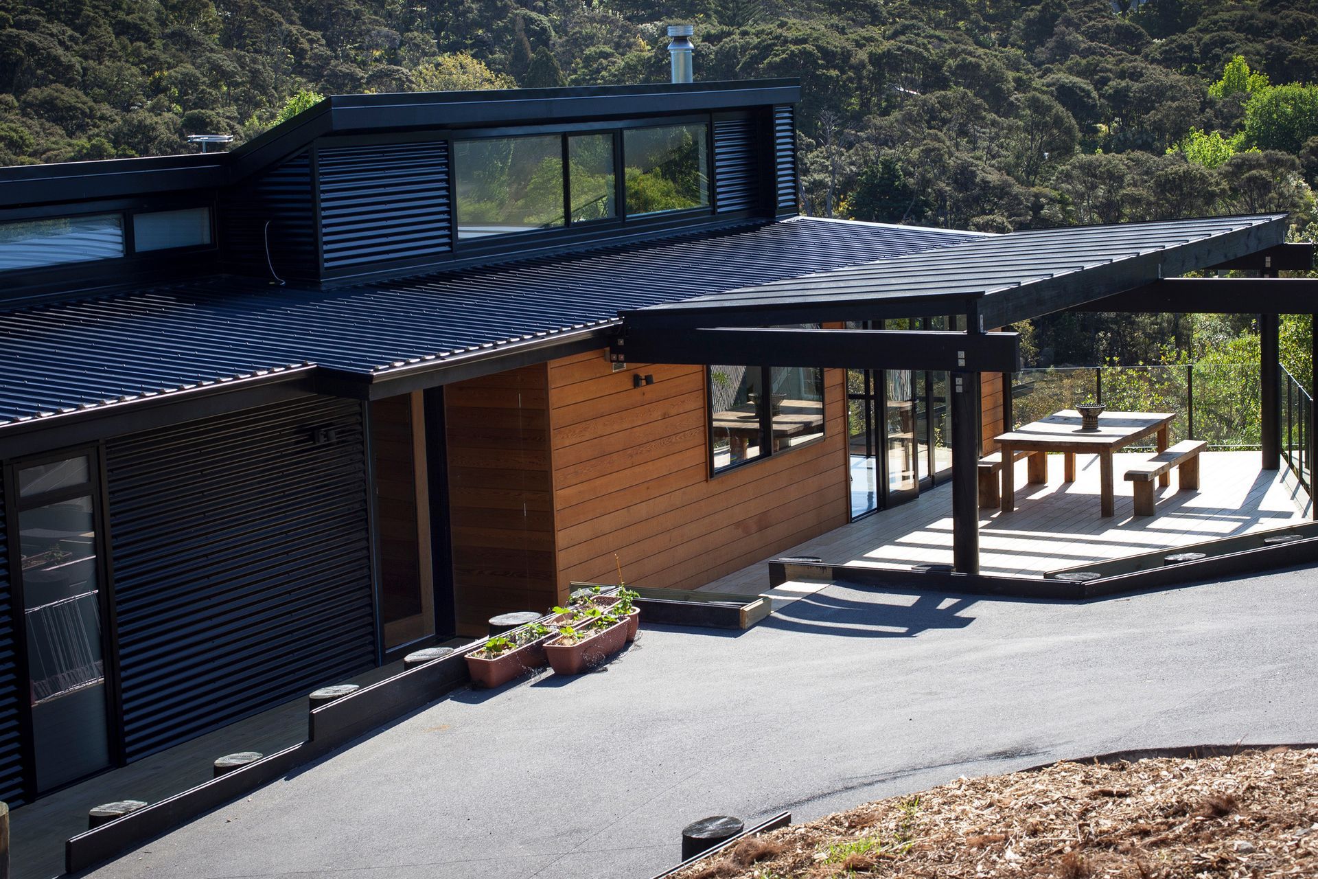 ArchiPro Project Summary - Sustainable family home in Waitakere Ranges, featuring passive solar design, advanced weather-resistant roofing, and a modern aesthetic that harmonizes with the natural environment.