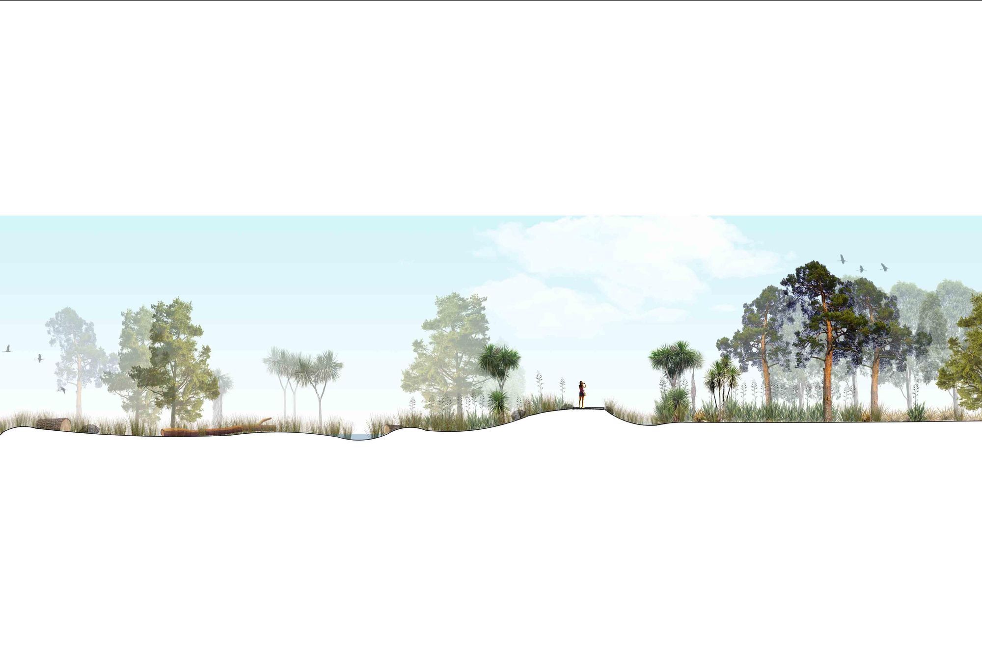 ArchiPro Project Summary - A harmonious stormwater facility that balances functional stormwater treatment with biodiversity restoration and public engagement, enhancing the area's overall amenity and connectivity.