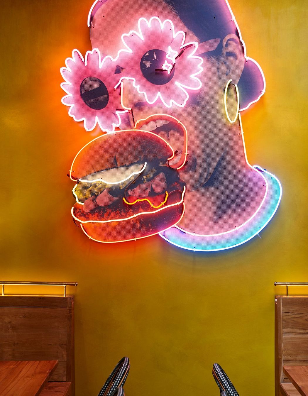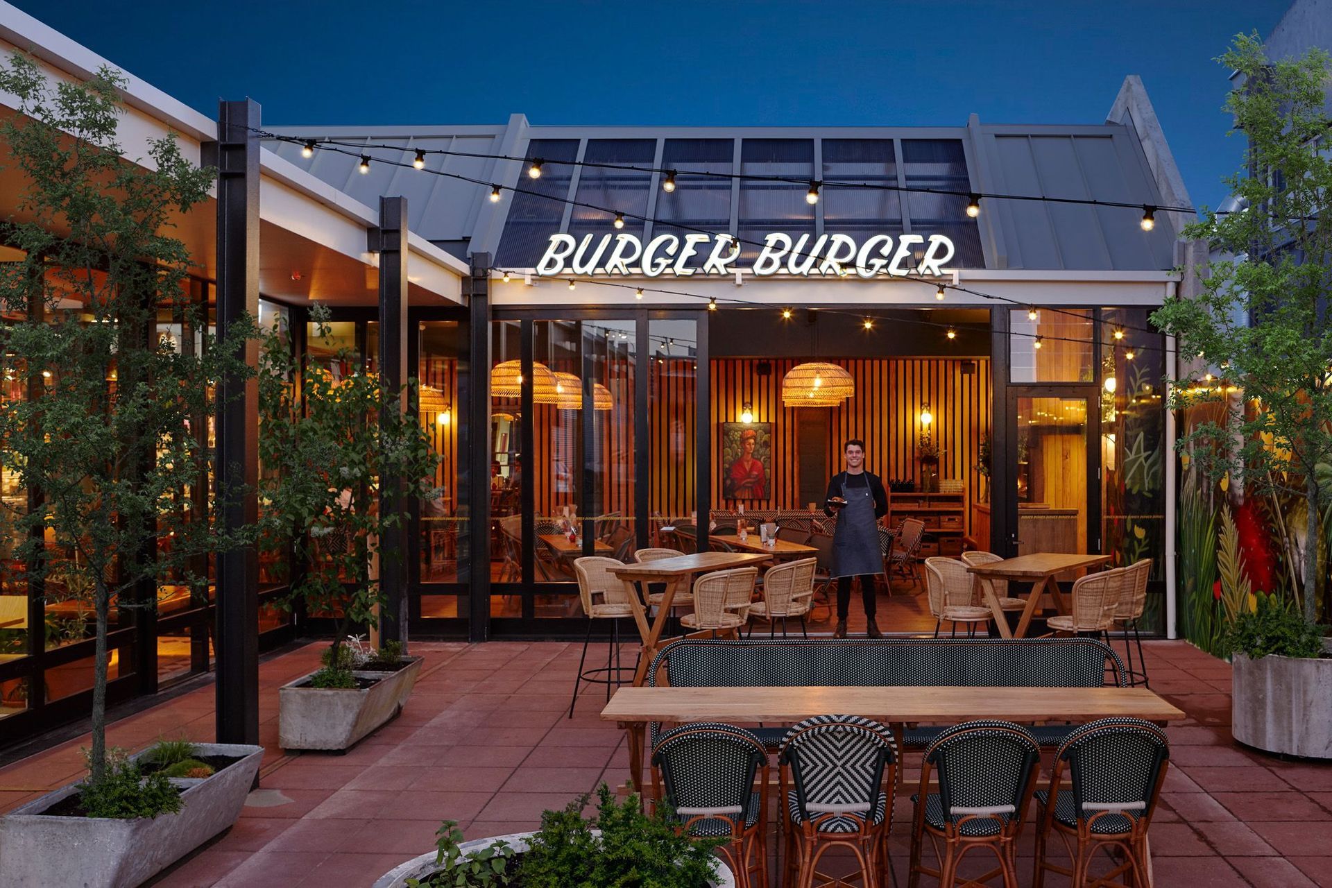 ArchiPro Project Summary - Burger Burger is a contemporary eatery in Christchurch, featuring a vibrant design that enhances customer experience and reflects a commitment to sustainability.