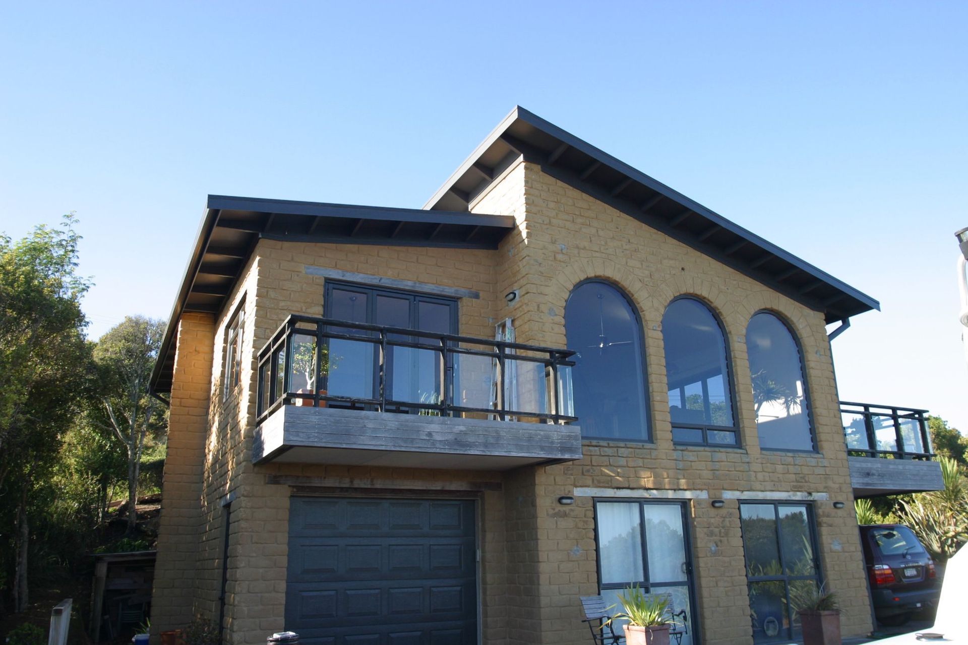 ArchiPro Project Summary - Two-story earth brick home designed for stunning sea views, featuring passive solar storage, open-plan living, and a flexible layout with a main flat and holiday apartment.