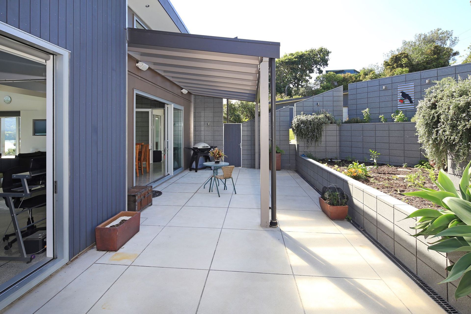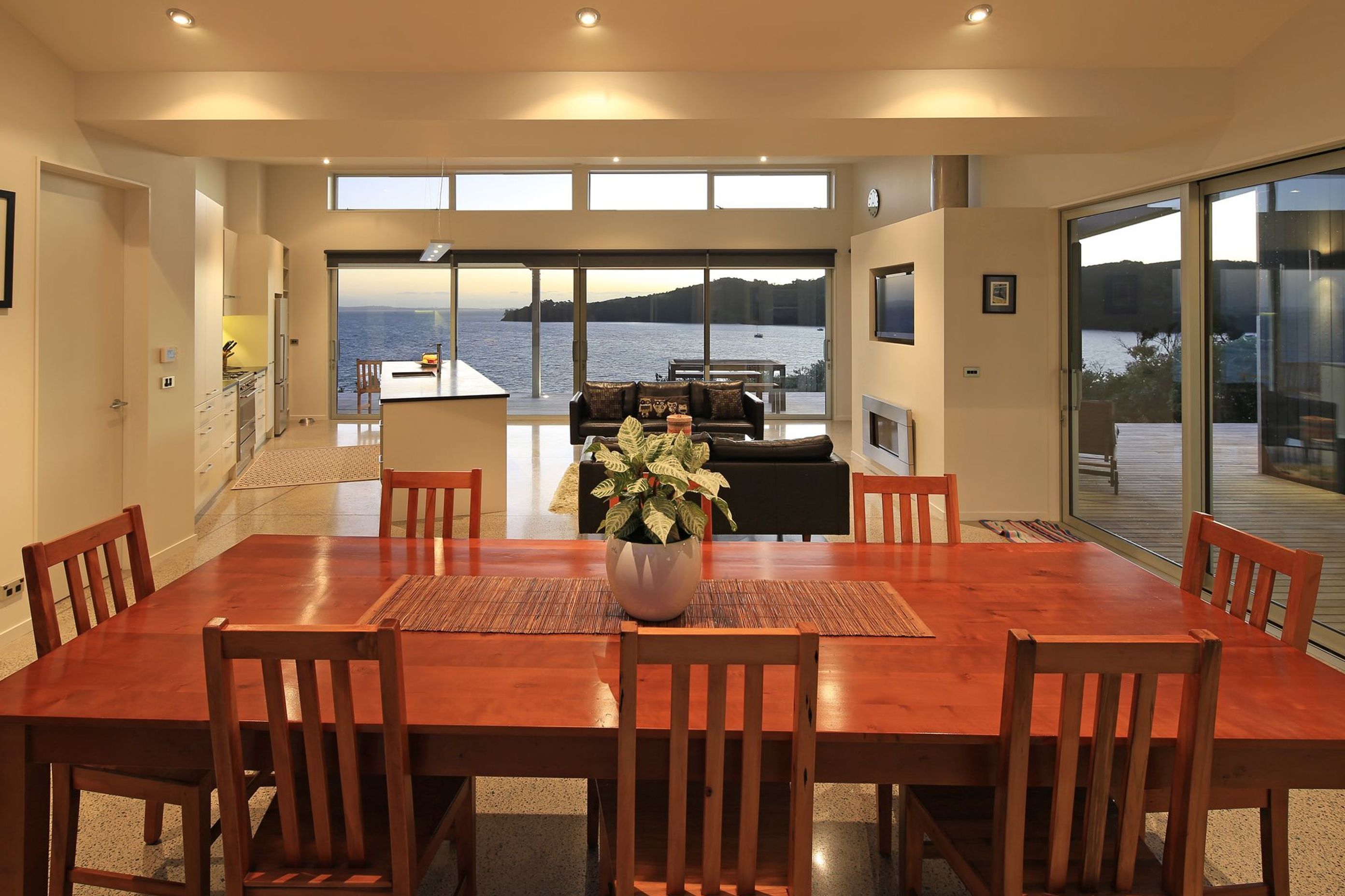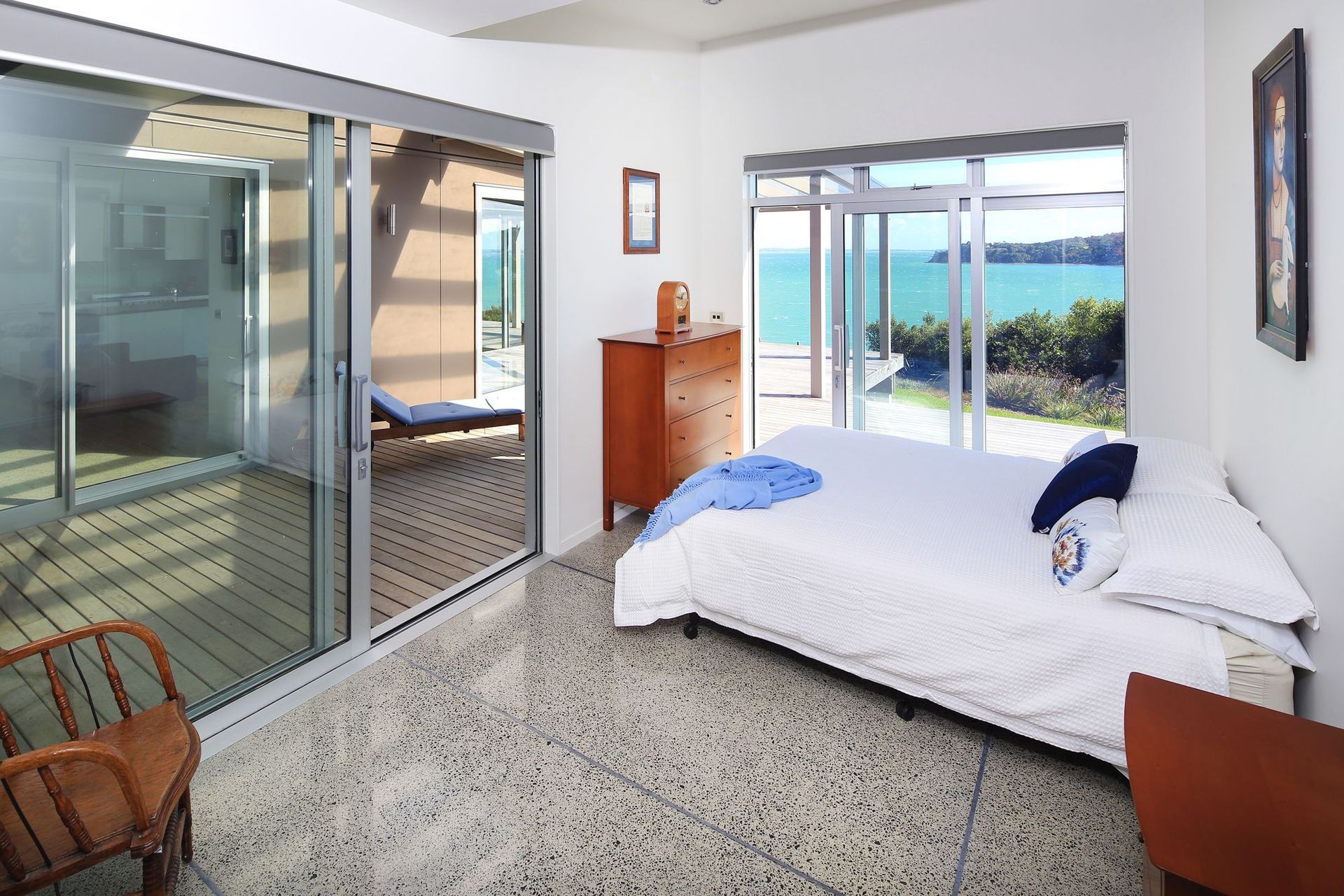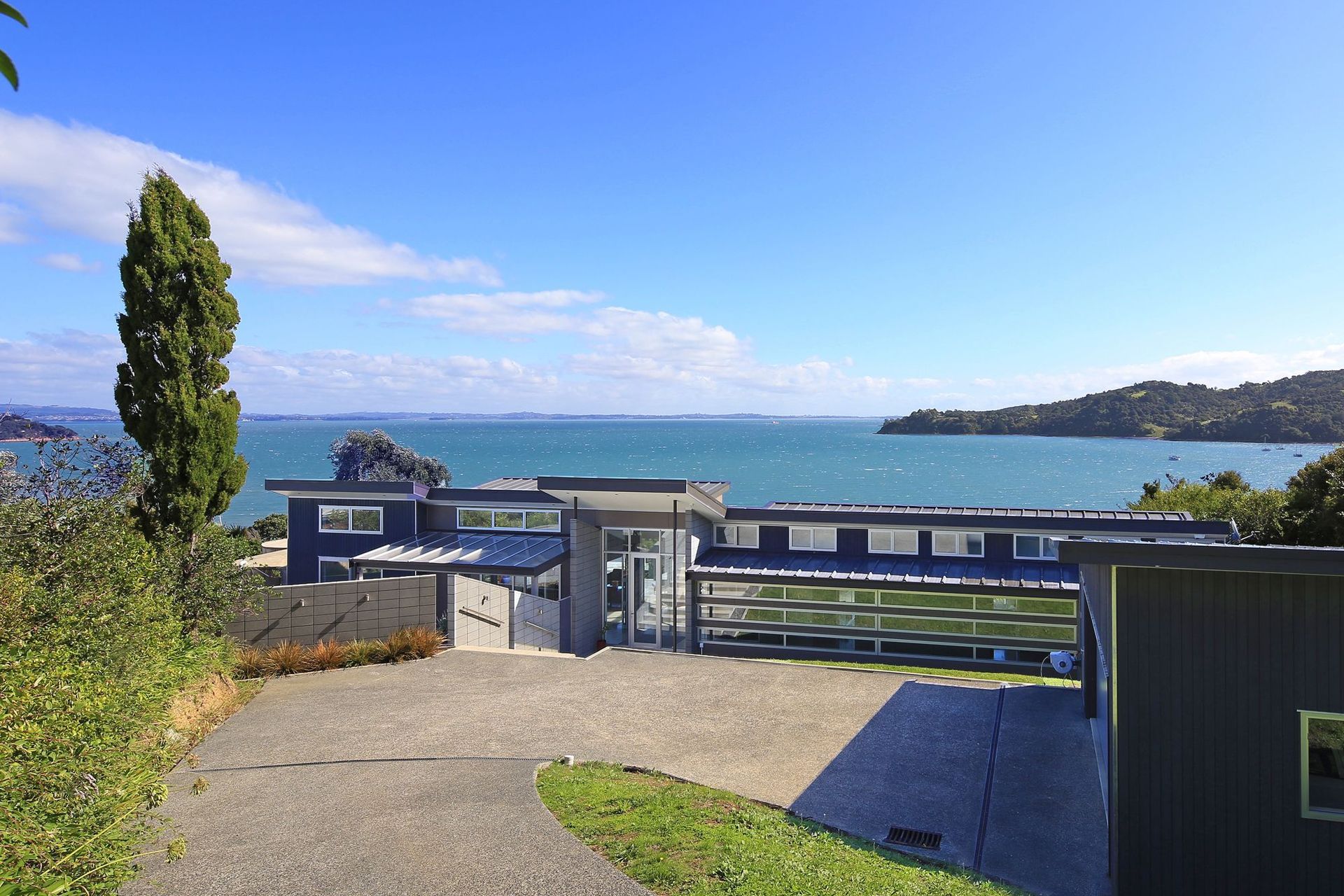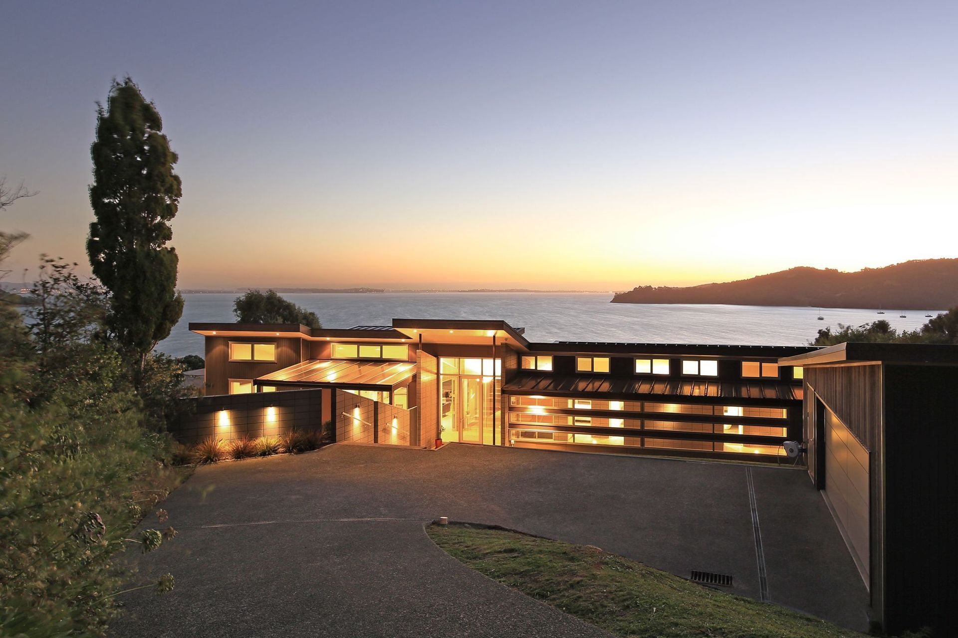 ArchiPro Project Summary - A stunning 4-bedroom home on Waiheke Island, featuring a gullwing roof design that maximizes sea views and passive solar benefits, complemented by a spacious living area, protected outdoor spaces, and sustainable building practices for a healthy living environment.