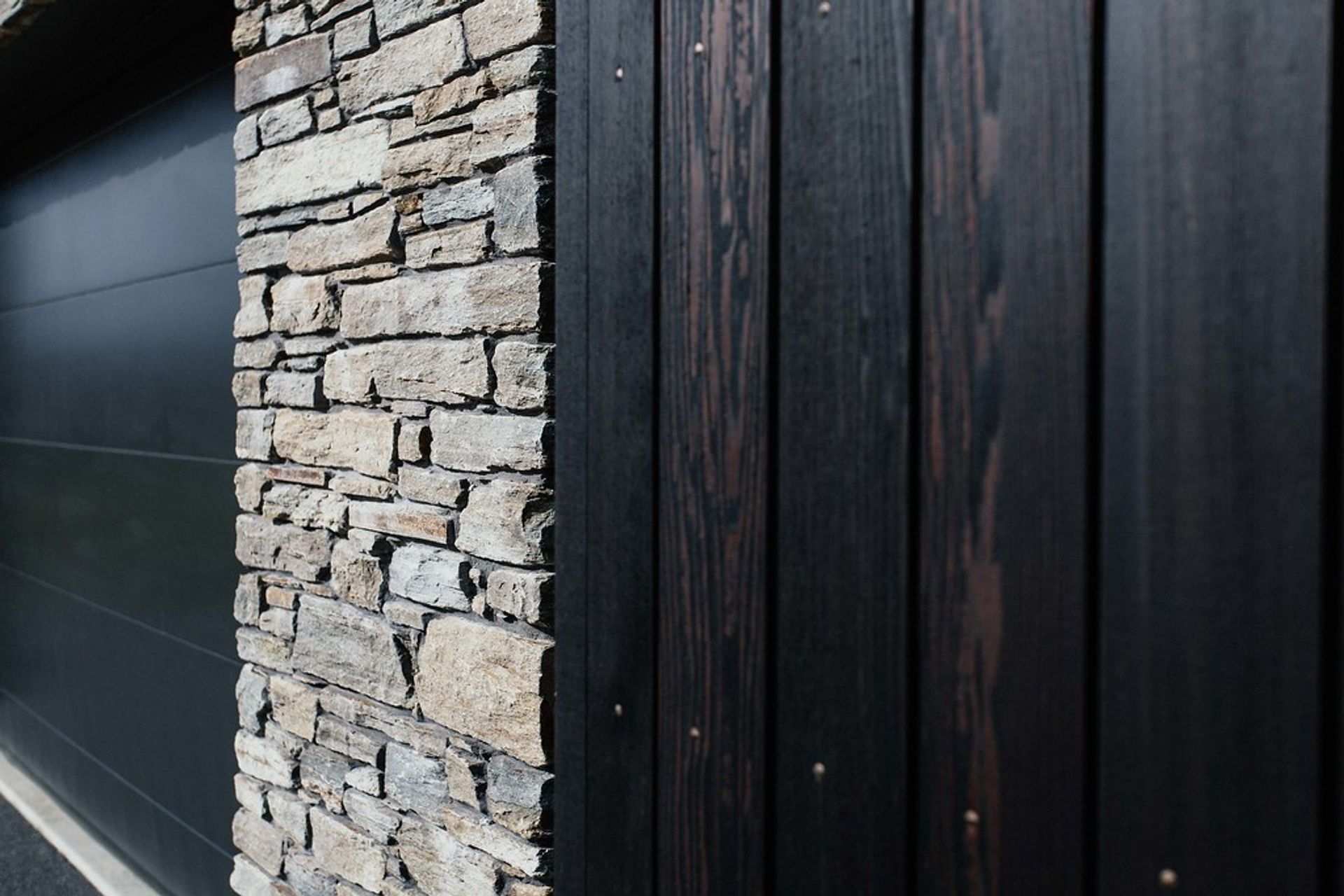 ArchiPro Project Summary - A unique home featuring contrasting materials and seamless integration of exterior and interior elements for a bespoke aesthetic.