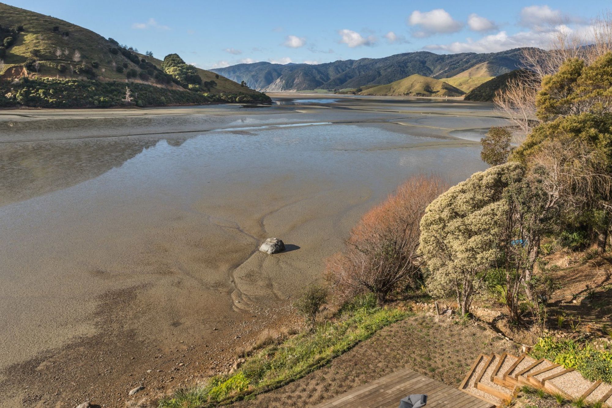 ArchiPro Project Summary - A serene outdoor retreat in Cable Bay featuring a stunning hardwood deck and solid macrocarpa steps, designed in collaboration with Design Base to enhance the natural beauty and tranquility of the surrounding landscape.