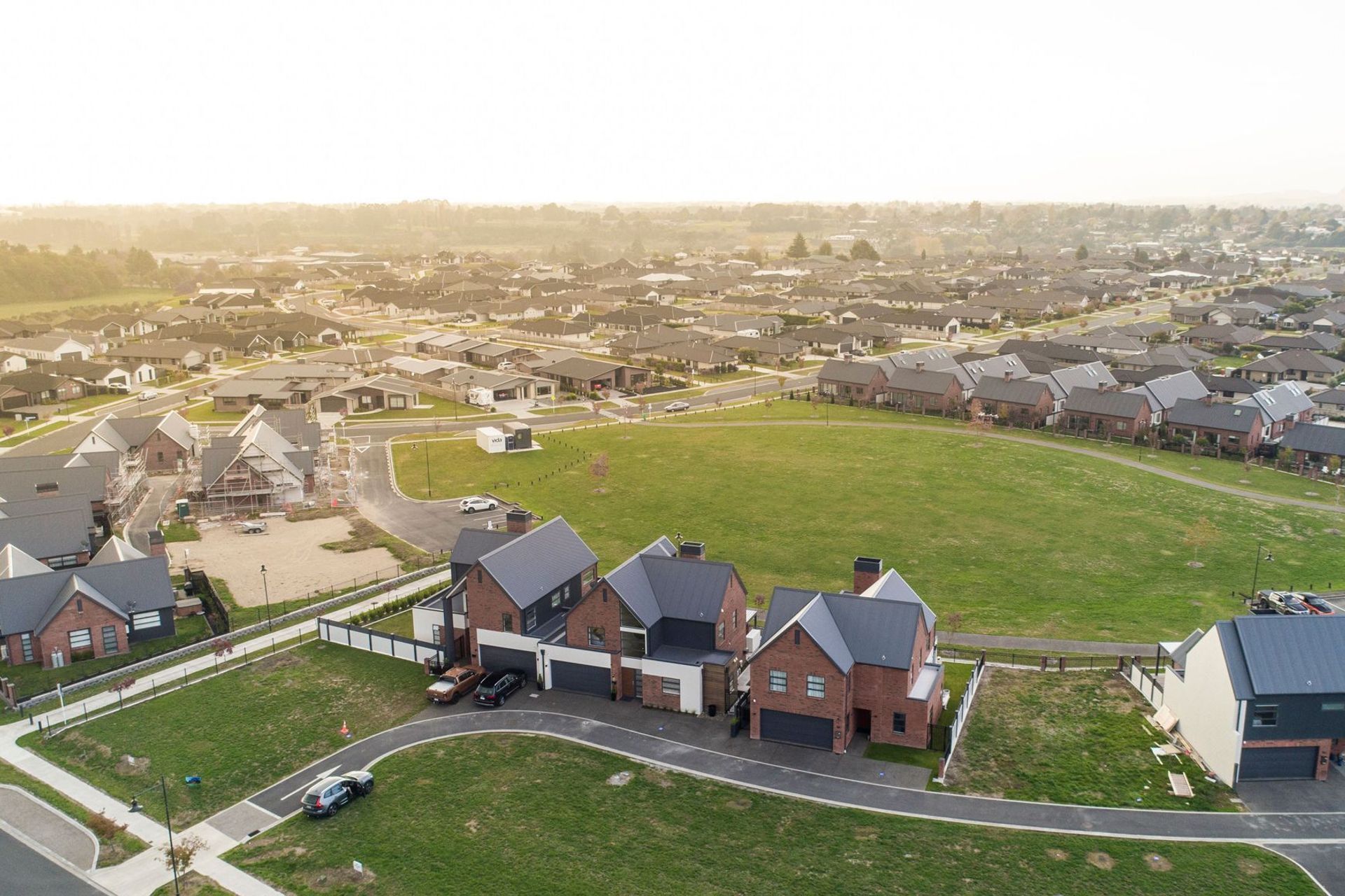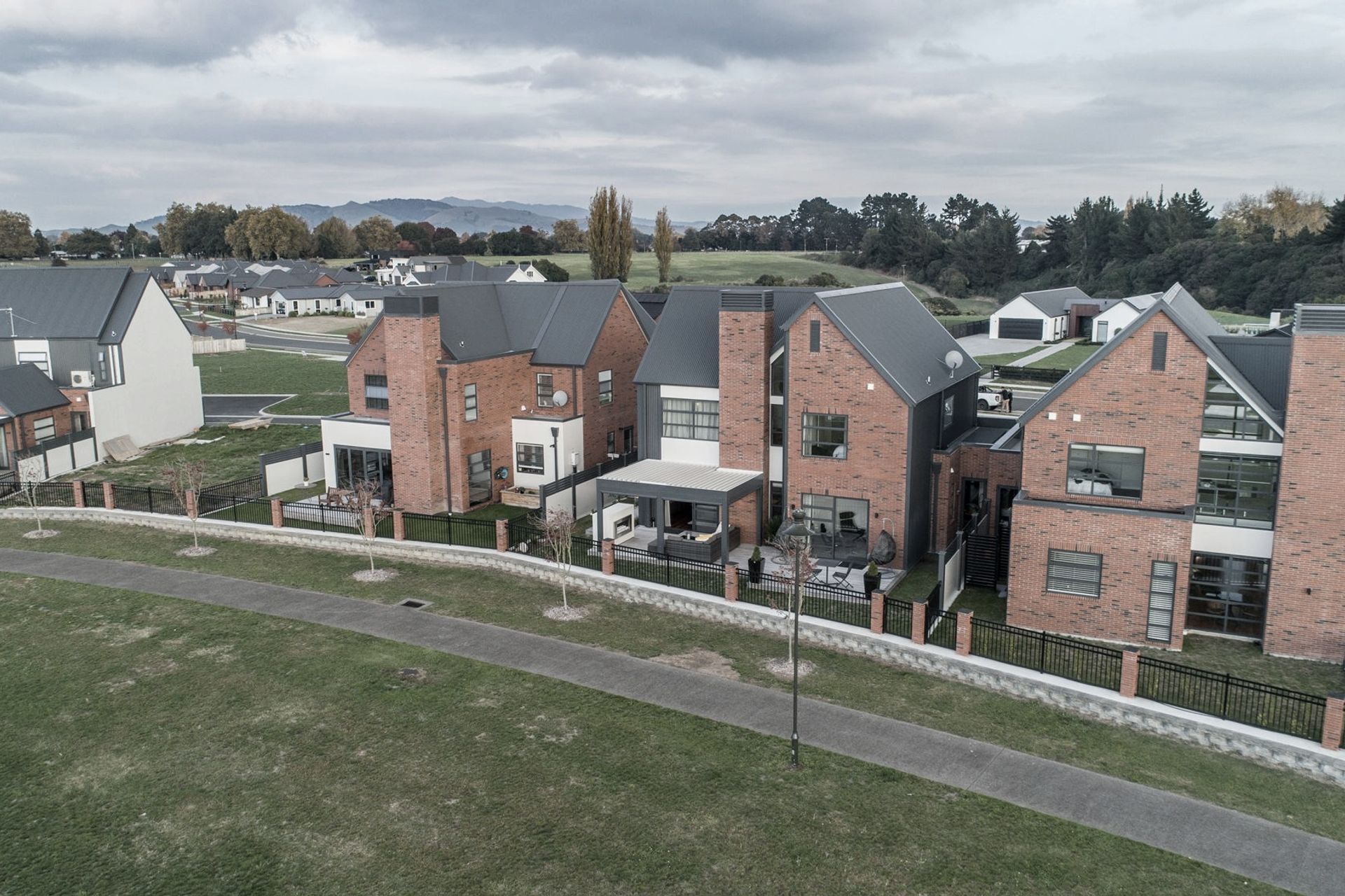 ArchiPro Project Summary - Cambridge Park Oval features charming cottage-style homes that blend modern architecture with old-world elegance, utilizing bespoke Euro Red Blend bricks and distinctive design elements, all set against a picturesque 2-acre recreational reserve.