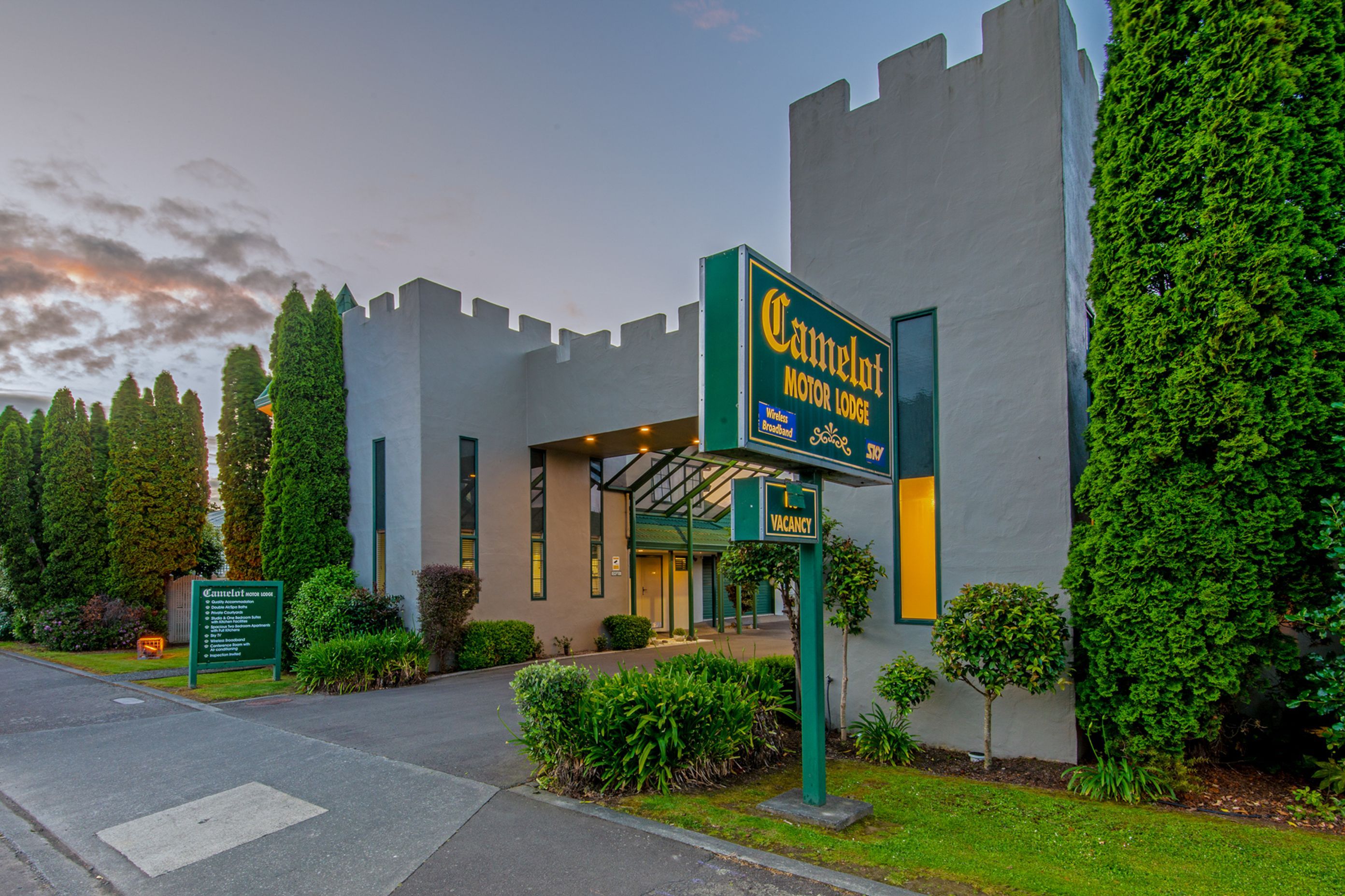 ArchiPro Project Summary - Revitalizing the iconic Camelot Motel with a fresh website design, showcasing its unique architecture against the stunning backdrop of a Manawatu evening.