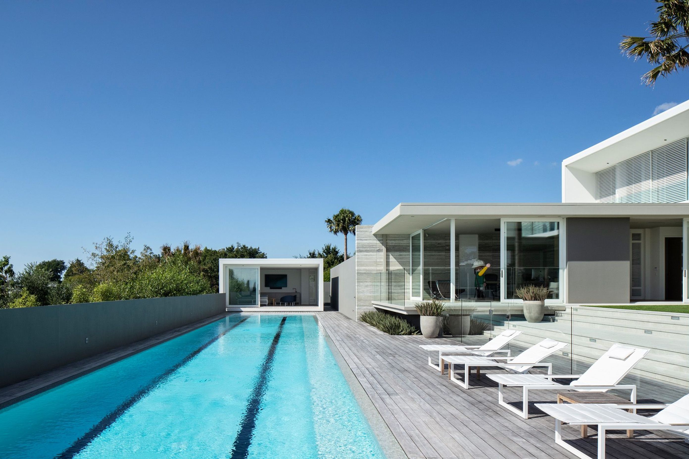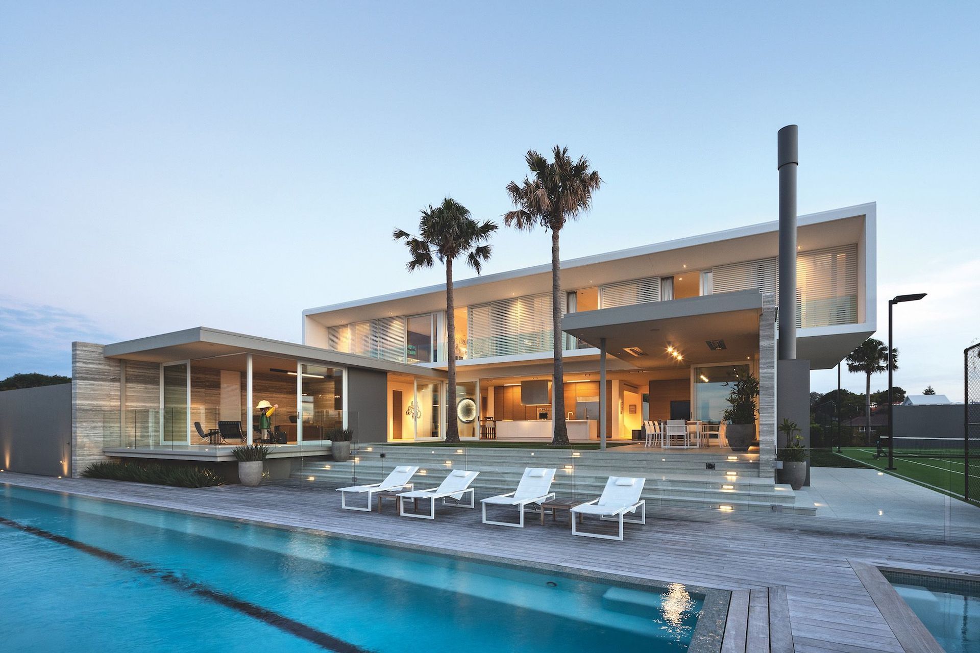ArchiPro Project Summary - A stunning blend of classic Californian design and modern luxury, the Cantilever House in Havelock North features five bedrooms, four bathrooms, and extensive leisure amenities, all within a spacious 750m2 layout crafted by Sumich Chaplin.