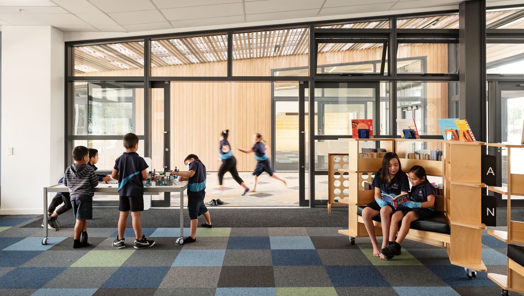 Mangapikopiko Primary School, by JASMAX, using 100% recycled nylon carpet tiles - Millennium Nxtgen by modulyss, from Heritage Carpets in NZ