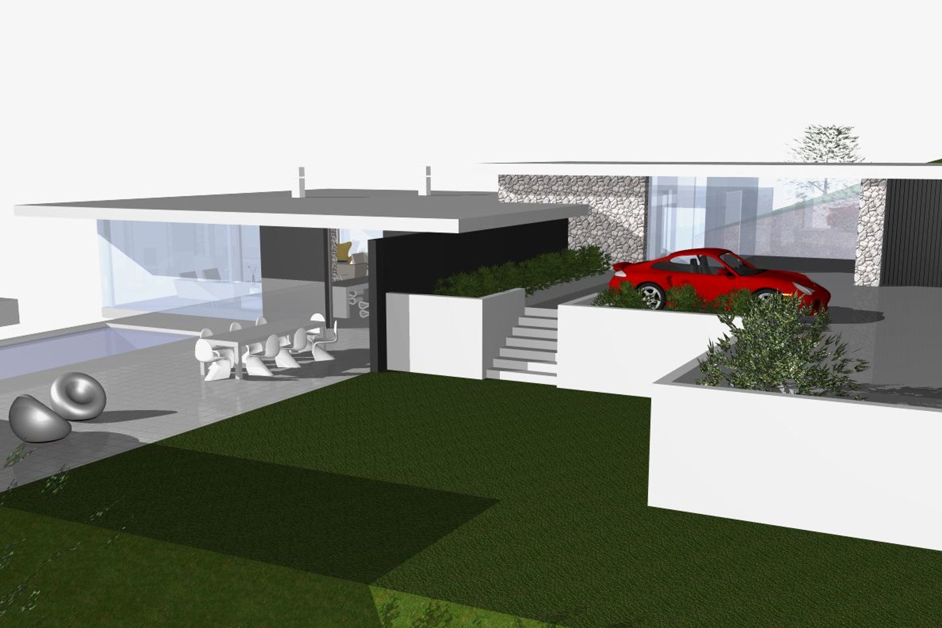 ArchiPro Project Summary - The Carter Home project highlights modern architecture and landscaping, featuring a stylish concrete driveway and a serene backyard for relaxation.