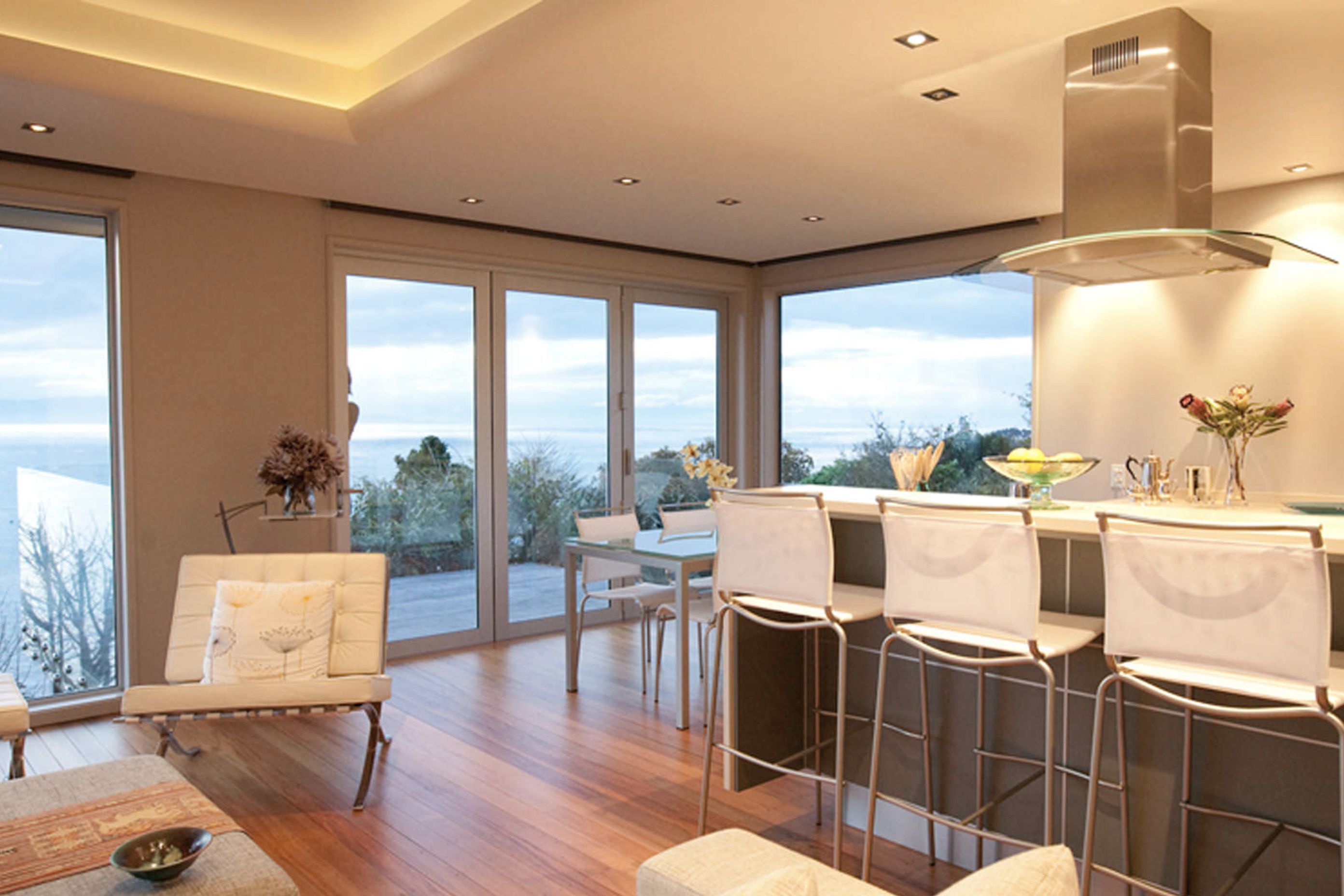 ArchiPro Project Summary - Contemporary family home beside Waimea Estuary featuring sustainable materials and innovative lighting design by Switch Lighting.