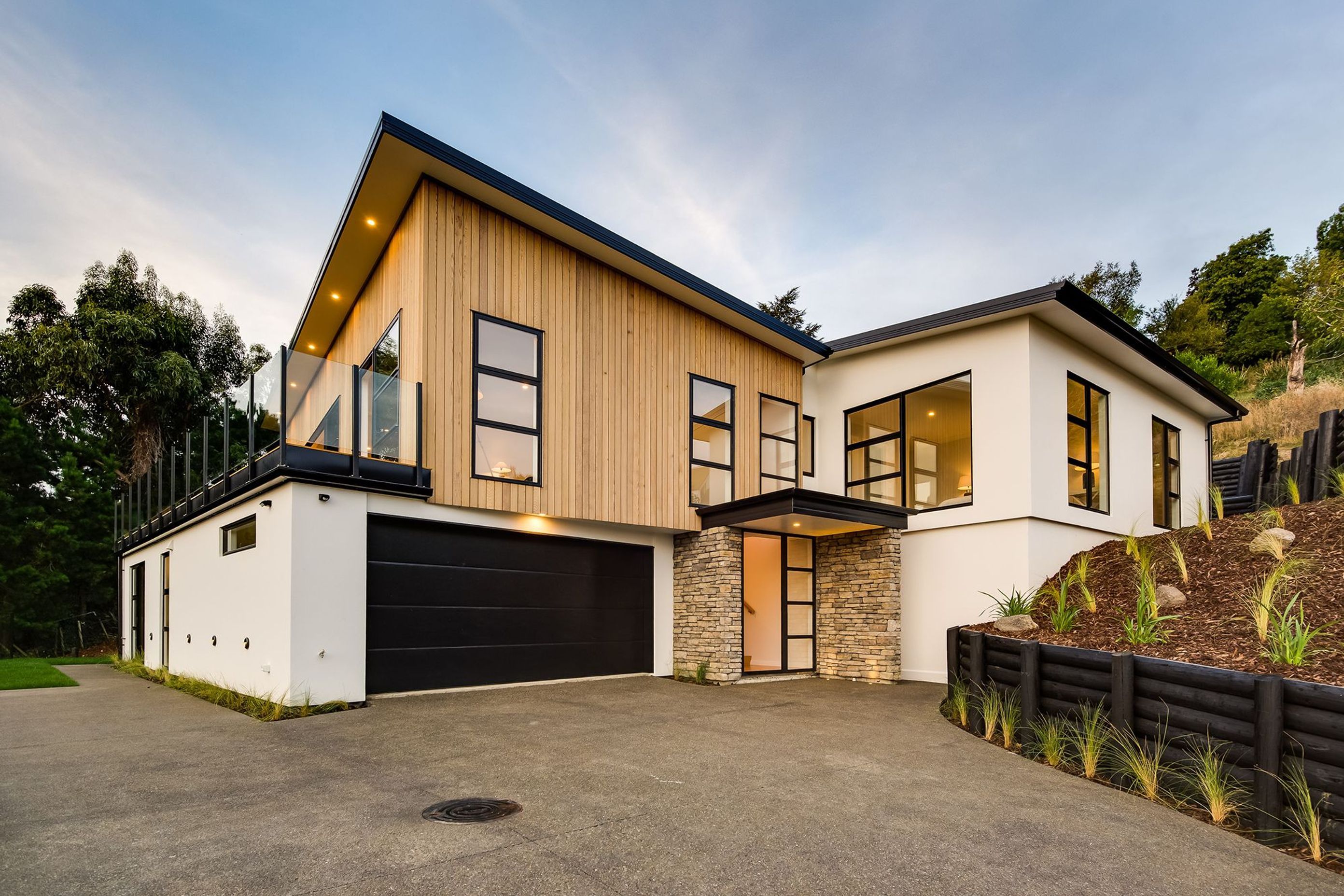 ArchiPro Project Summary - A stunning 5-bedroom home on Cashmere Hills, featuring modern minimalism with cedar and stone finishes, spacious interiors with high ceilings, and award-winning craftsmanship by BD Construction.