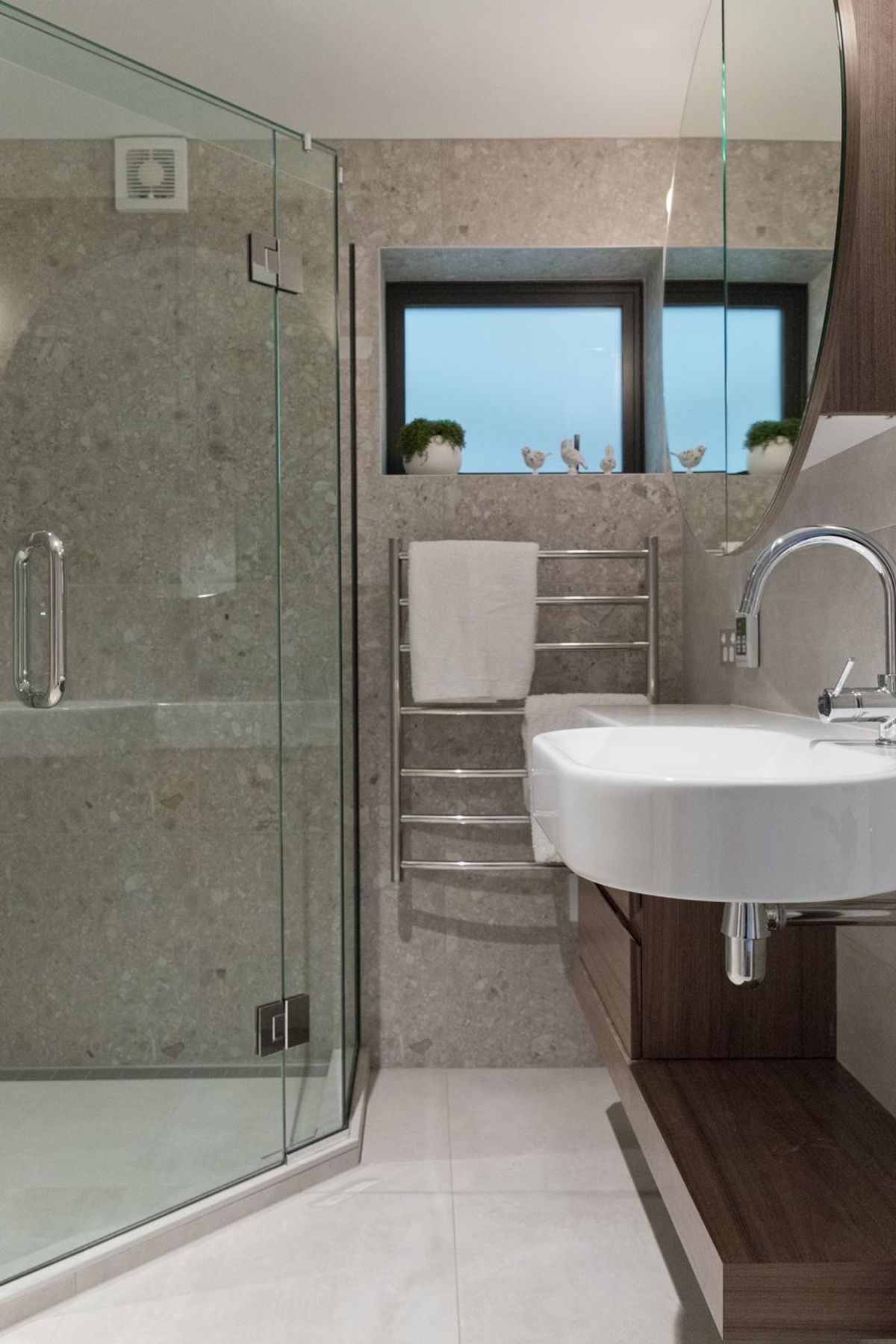 ArchiPro Project Summary - A stunning renovation in Cashmere, featuring a harmonious blend of marble, grey, and timber, complemented by vibrant accents that enhance the homeowners' art collection.