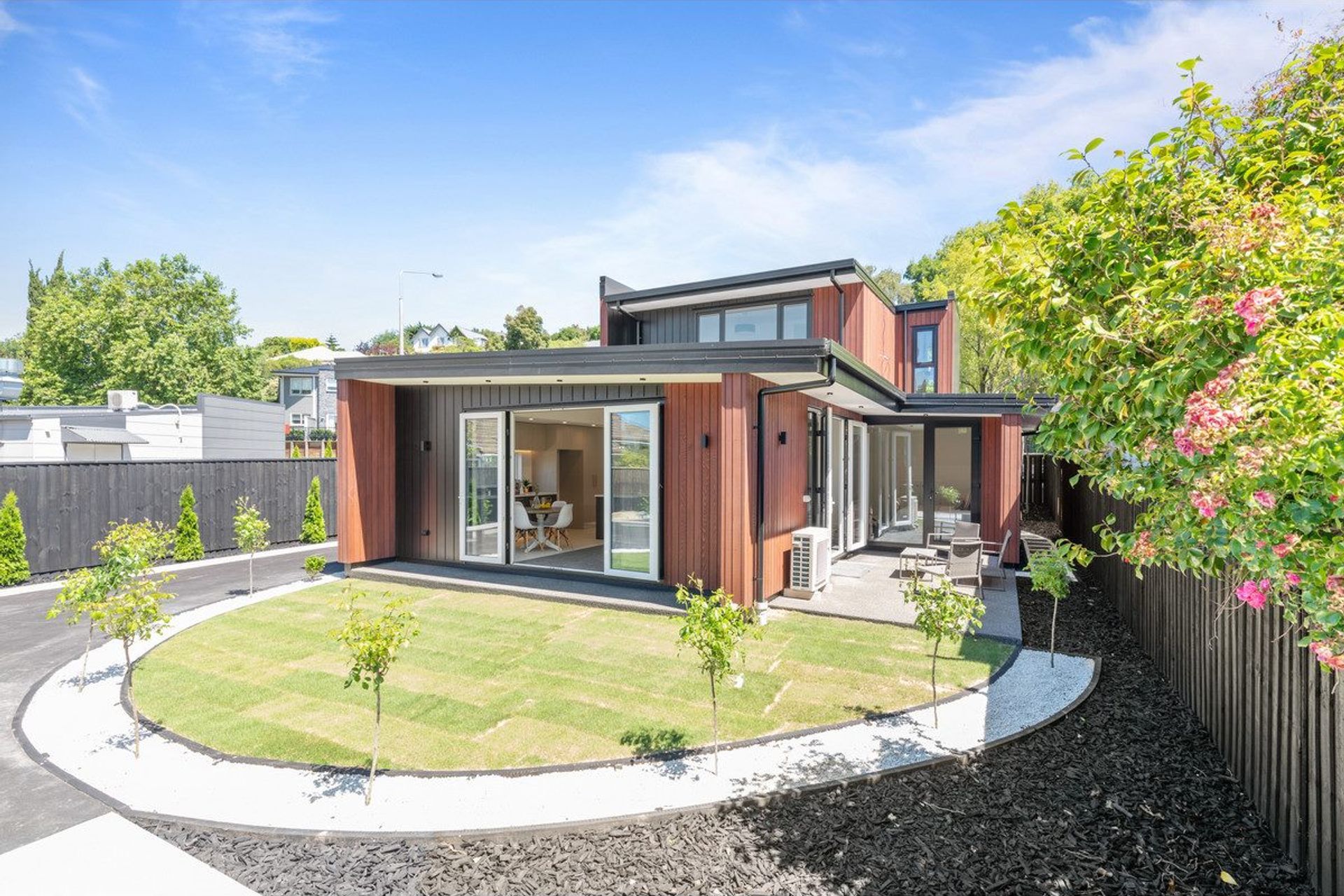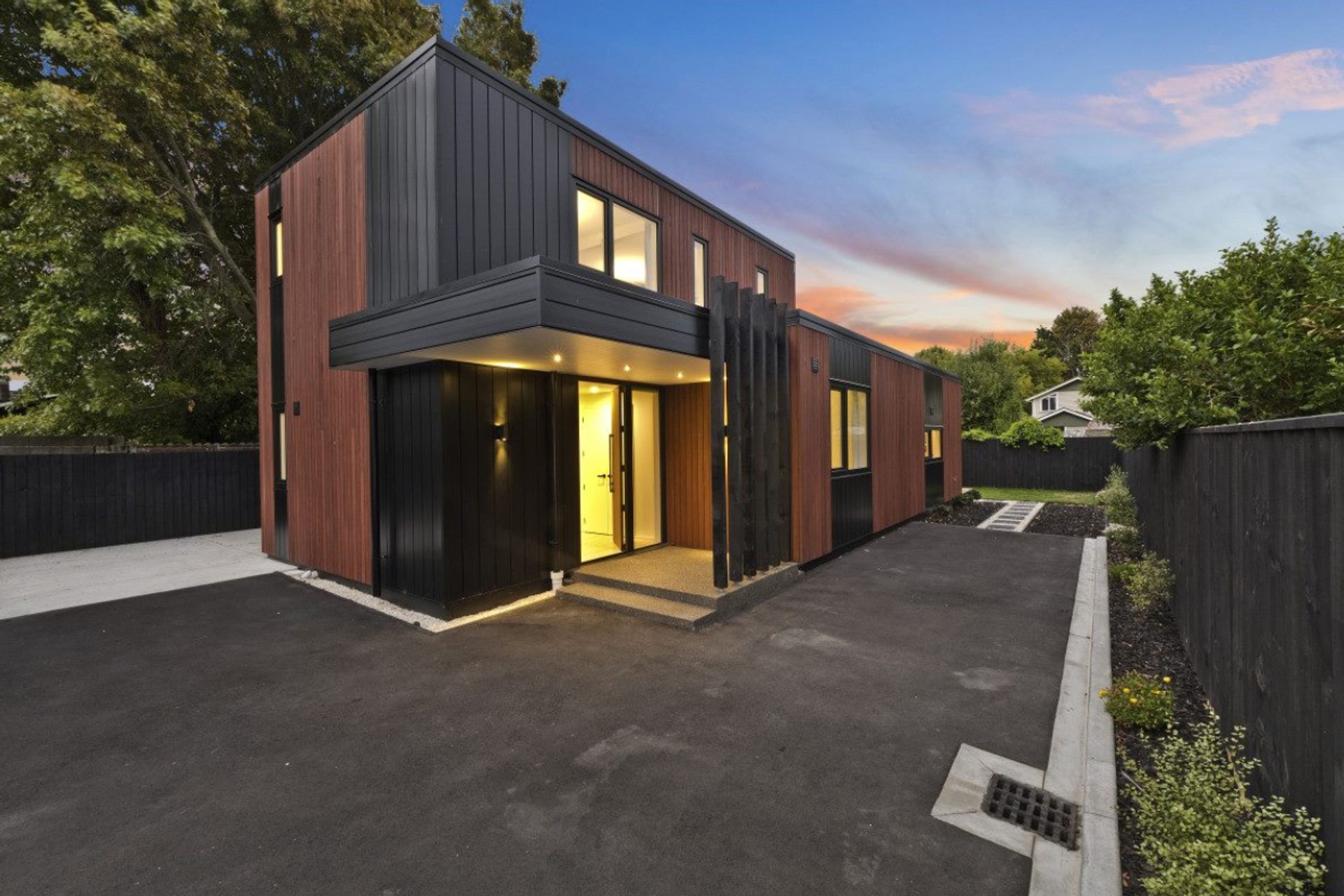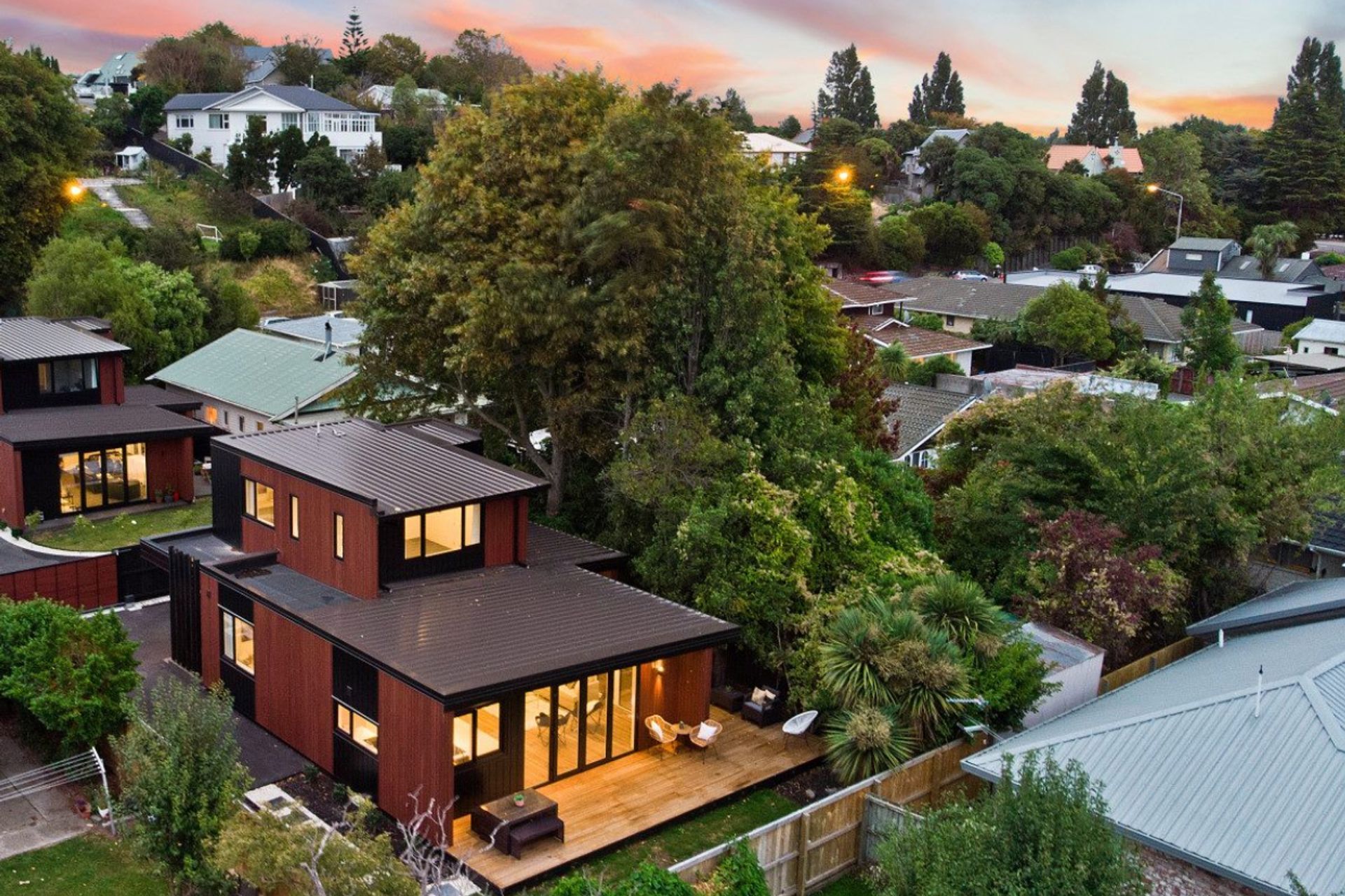 ArchiPro Project Summary - Two super-insulated dwellings on a former earthquake-damaged site, featuring innovative design and energy efficiency inspired by NZ’s first 10 Homestar Superhome.