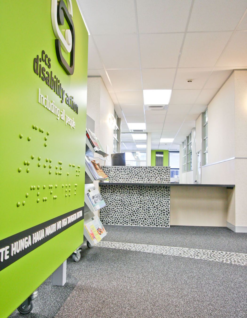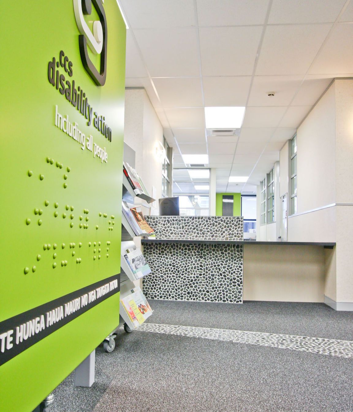 ArchiPro Project Summary - Innovative office fitout for CCS Disability Action prioritizing accessibility and usability for all, featuring thoughtful design elements that enhance the work environment without compromising aesthetics.