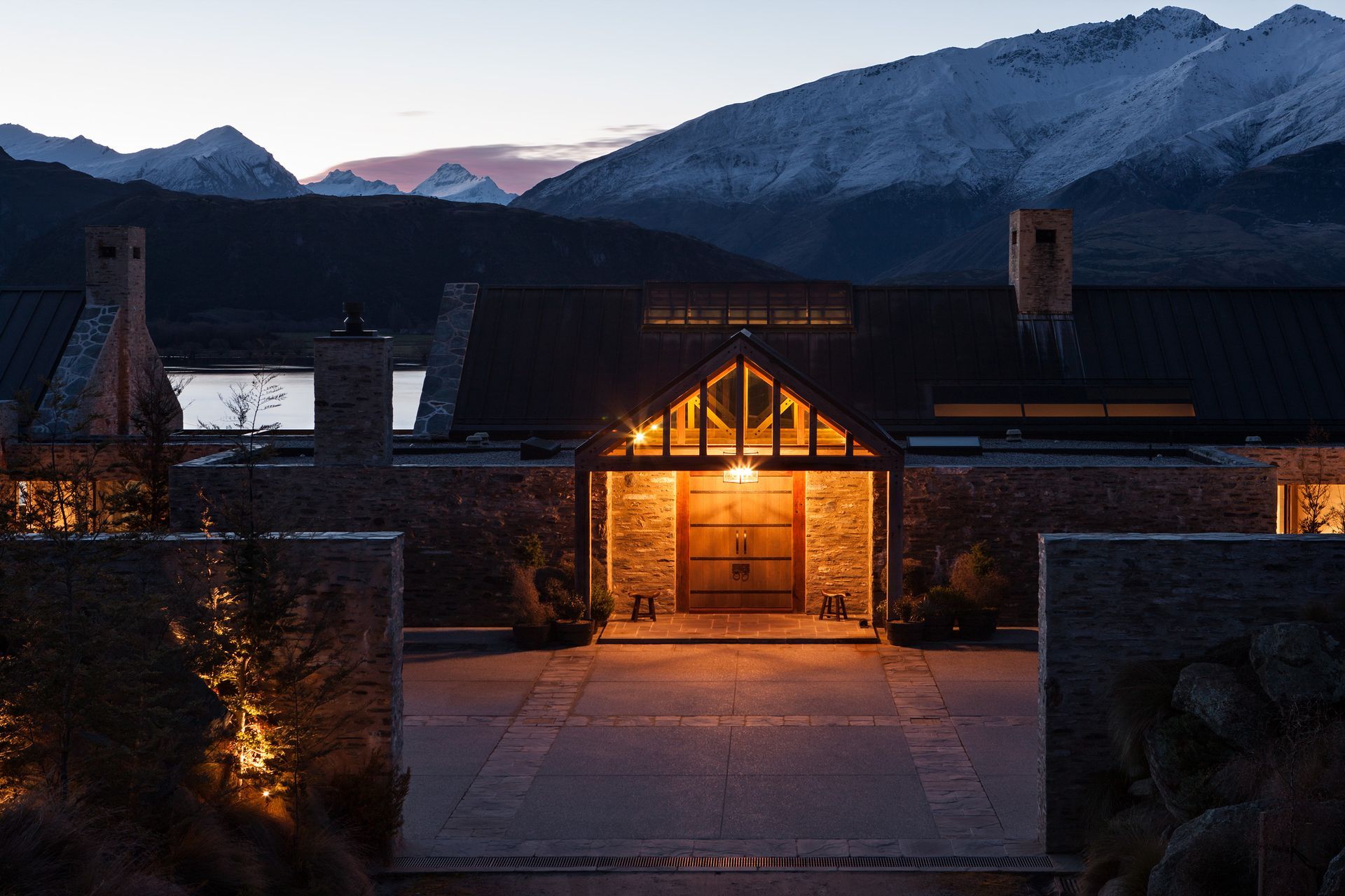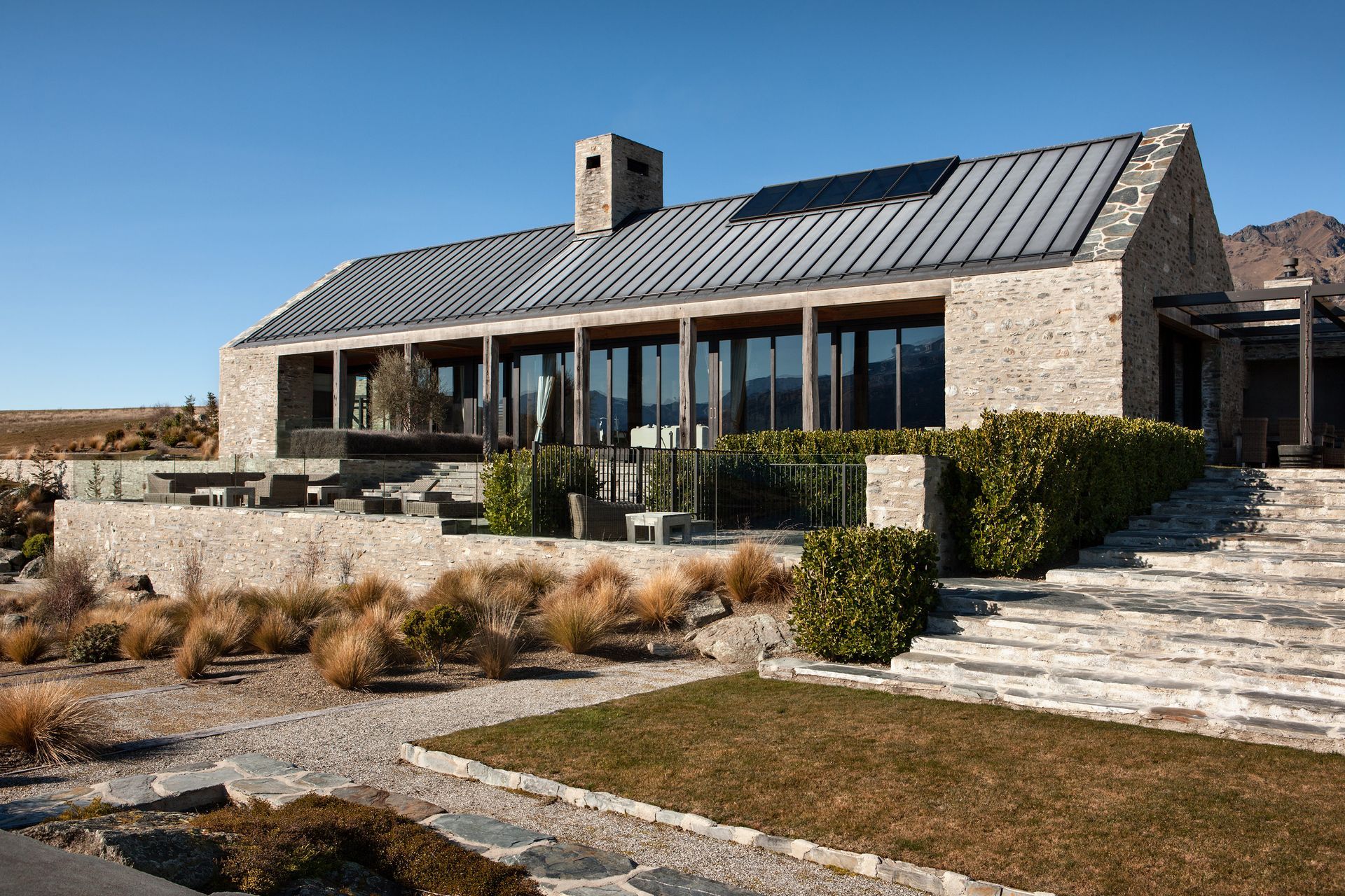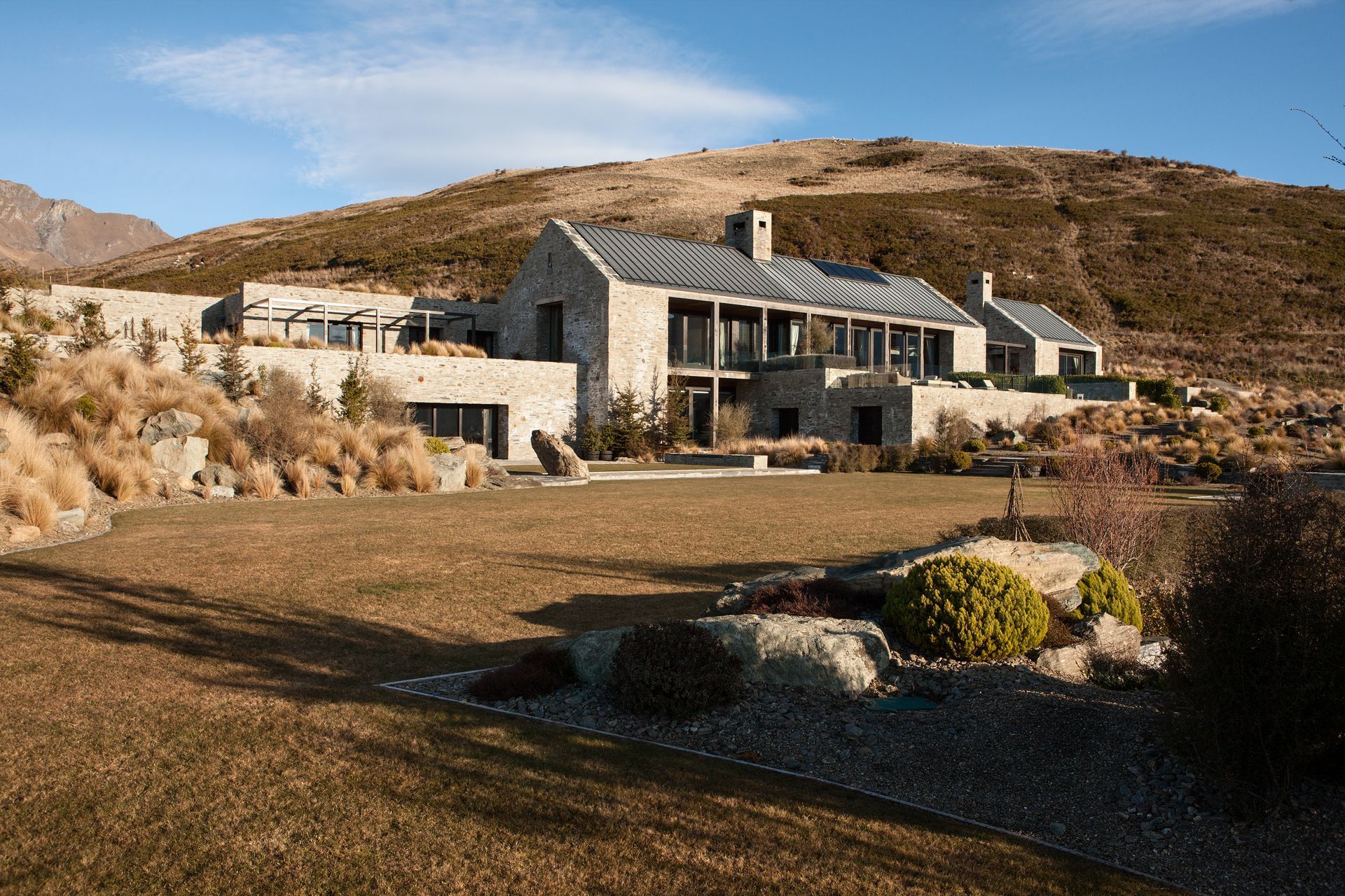 ArchiPro Project Summary - A thoughtfully designed residence in Central Otago, harmonizing with its stunning natural surroundings and minimizing visual impact through traditional forms and materials.