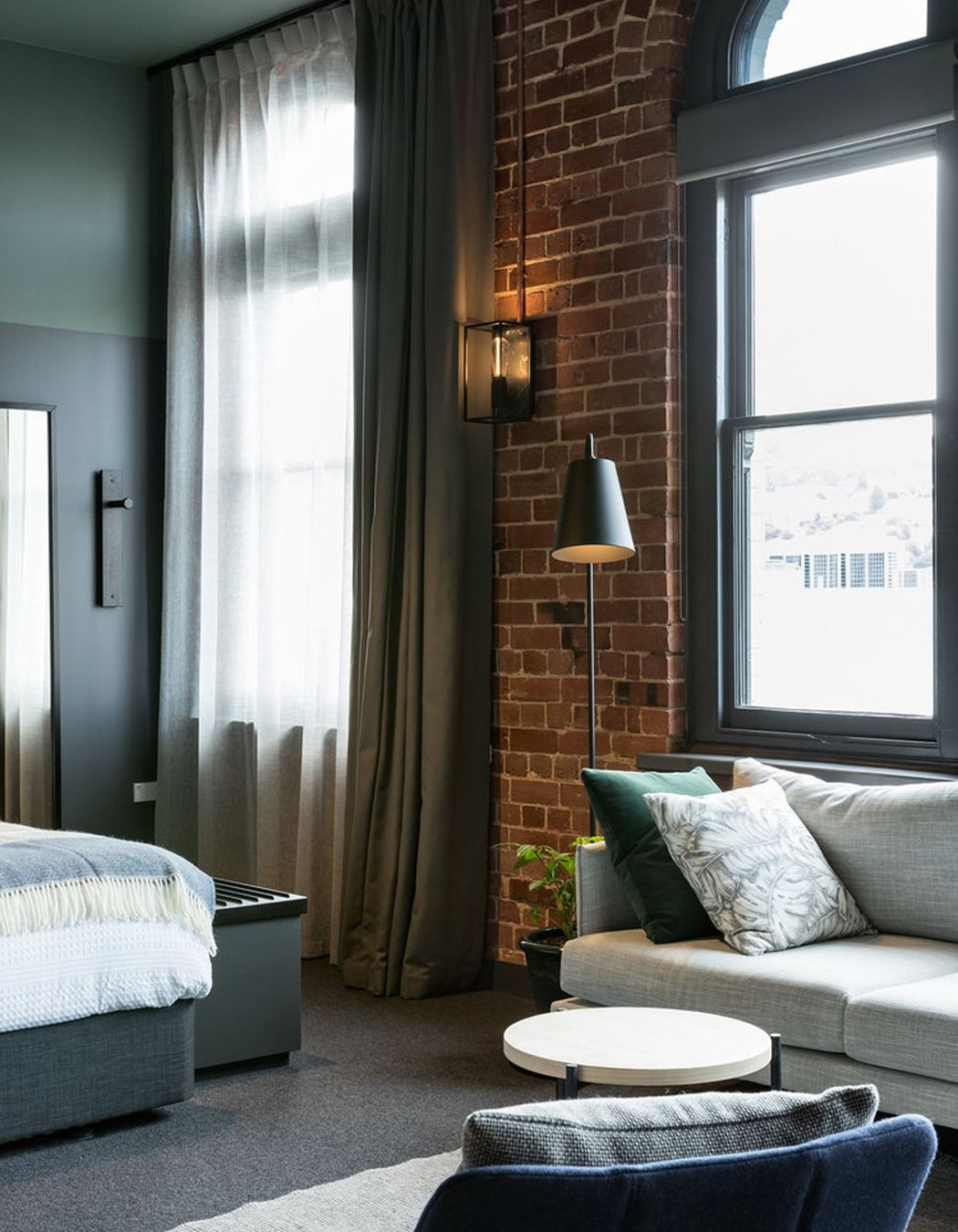 ArchiPro Project Summary - The Chamberson Hotel, a heritage-listed industrial building in Dunedin, features warm and intimate interiors, generously sized rooms with high ceilings, and a rooftop dining space, The Loft, showcasing local craftsmanship and artistic elements.