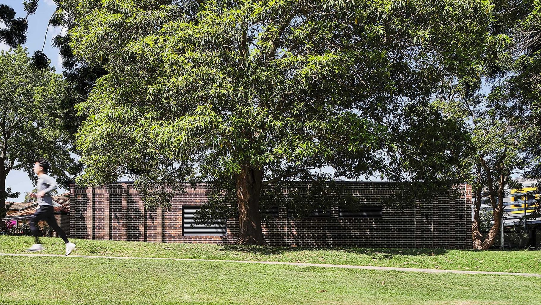 ArchiPro Project Summary - A contemporary groundskeepers shed at Chatswood Oval, designed to support the local community's evolving needs while integrating seamlessly with the landscape and referencing the heritage of the area.