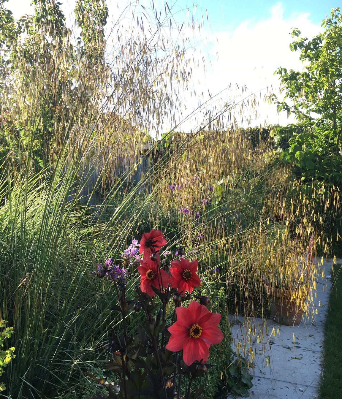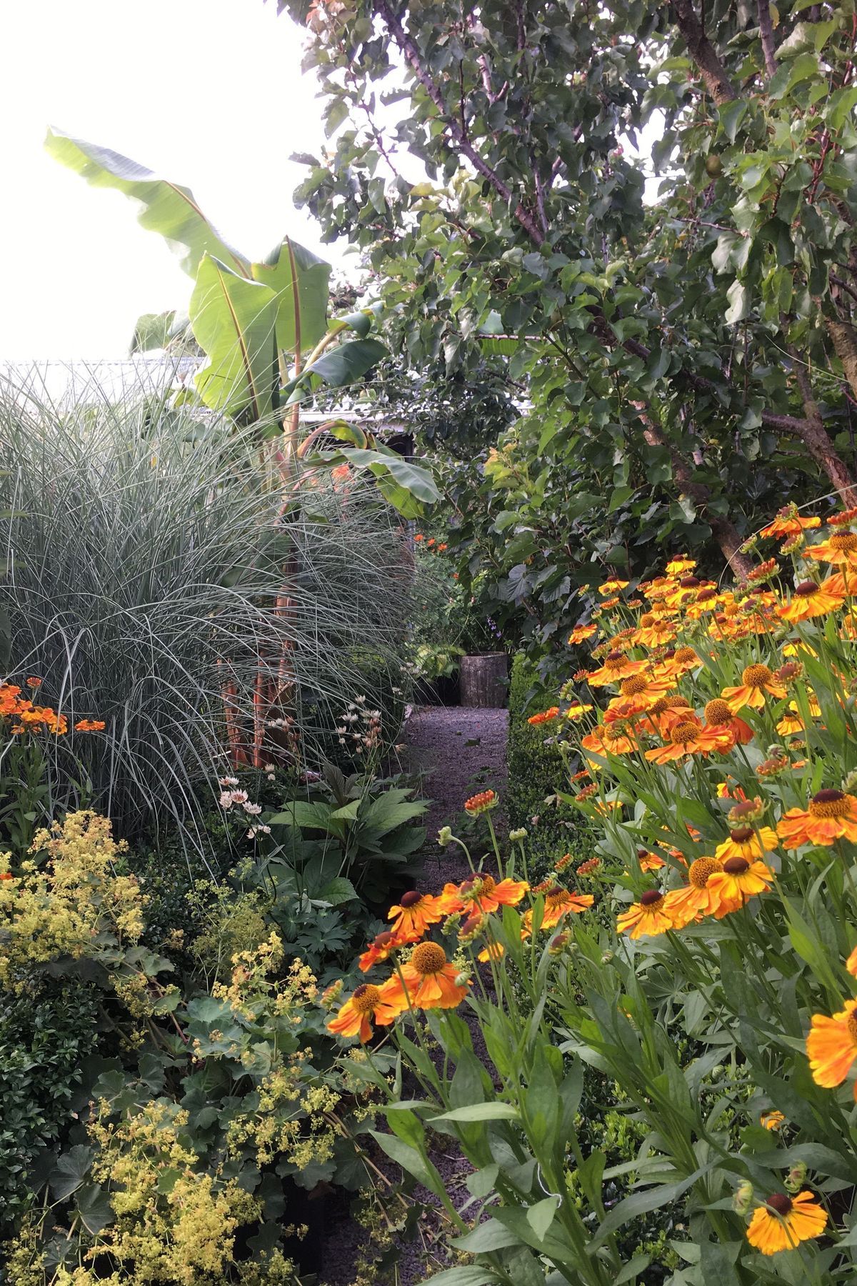 ArchiPro Project Summary - A thoughtfully designed suburban garden featuring clipped hedging, a diverse array of flowering perennials, ornamental grasses, and small trees, celebrating the beauty of all four seasons.