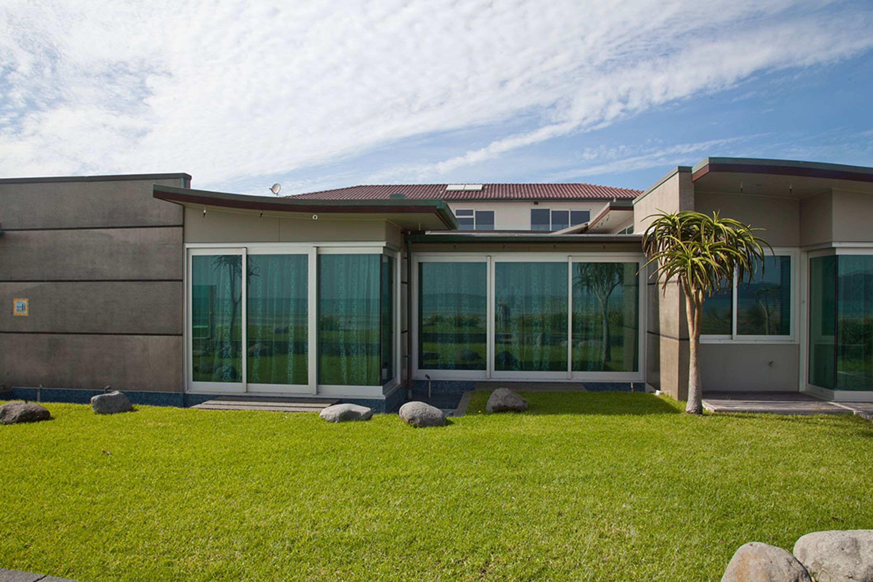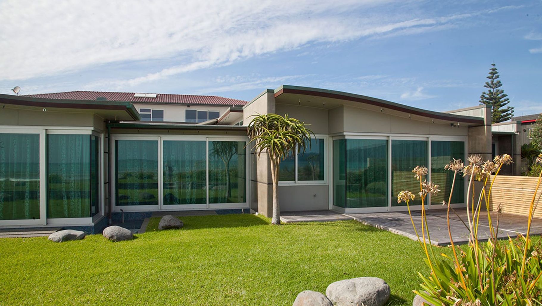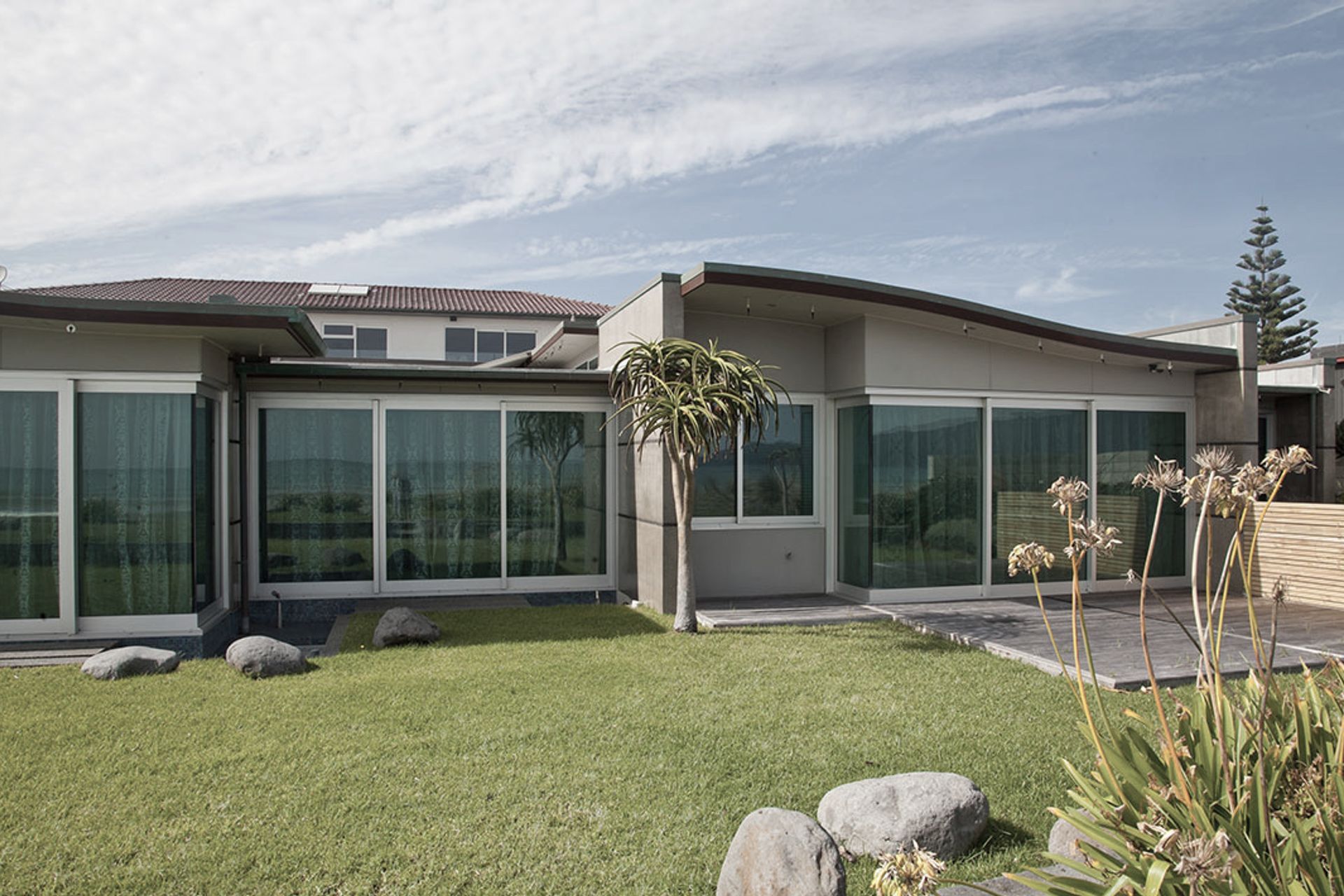 ArchiPro Project Summary - A stunning architectural feat featuring a 16-metre curved concrete wall, Christison House exemplifies bespoke design and quality craftsmanship, transitioning from a coastal residence to a passive home that maximizes comfort and energy efficiency.