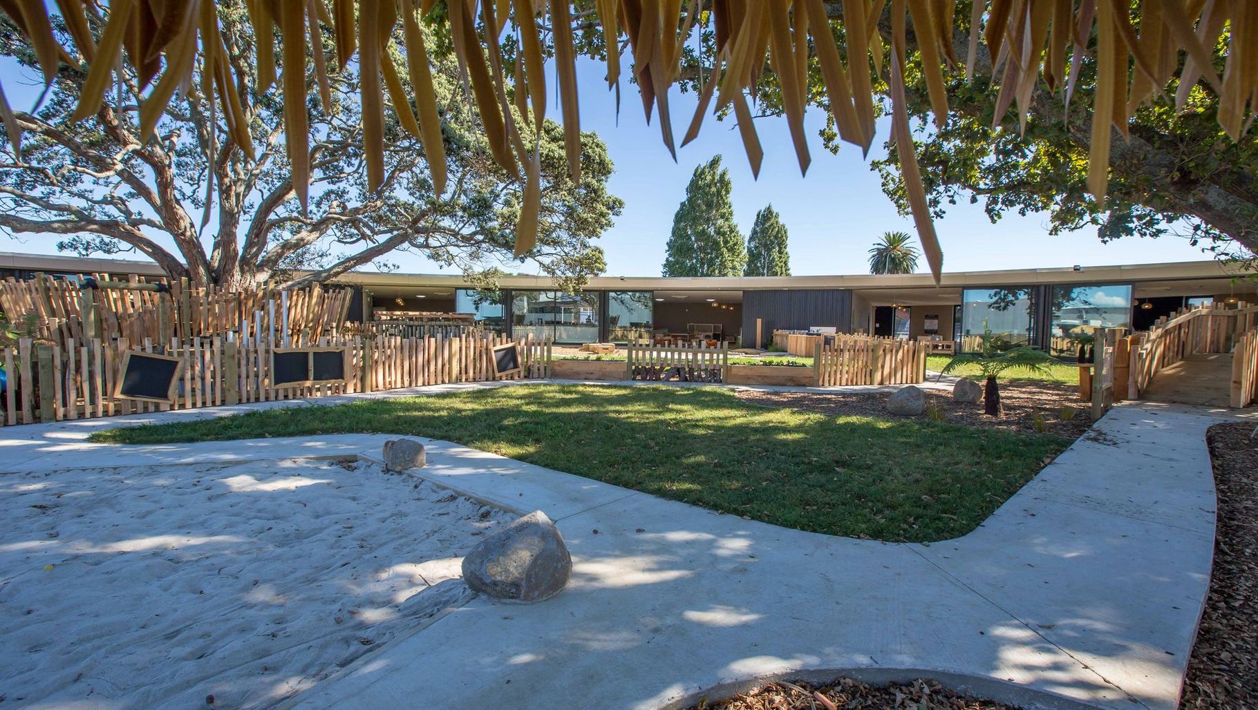 ArchiPro Project Summary - Innovative childcare centre design that harmoniously integrates natural materials and two protected trees, creating a functional and aesthetically pleasing environment for children, inspired by New Zealand's natural heritage.