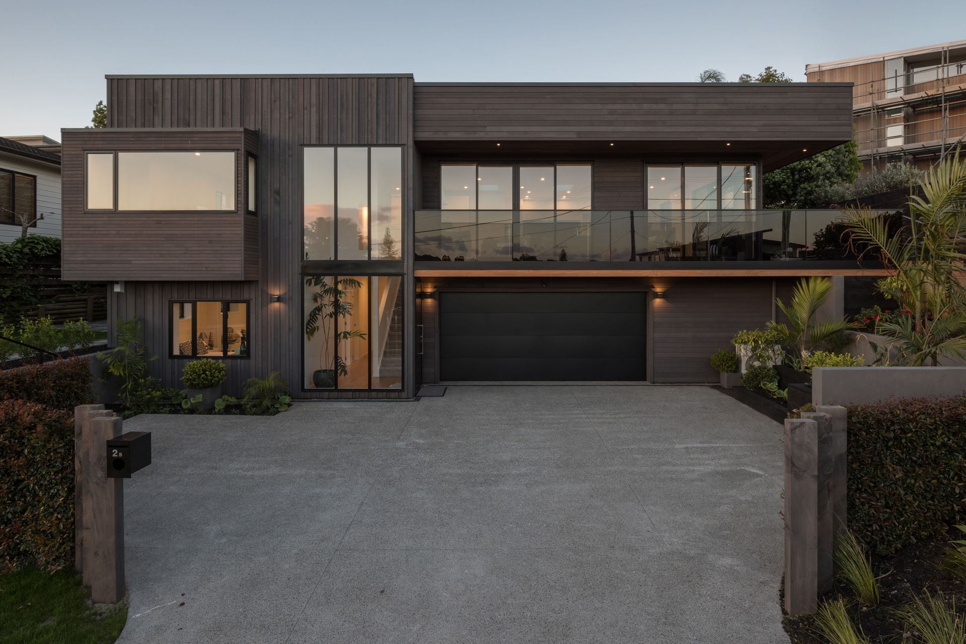 ArchiPro Project Summary - A contemporary redesign of a 1980s plaster-clad house in Murray's Bay, Auckland, featuring natural timber cladding, enhanced natural light, and seamless integration with outdoor spaces.