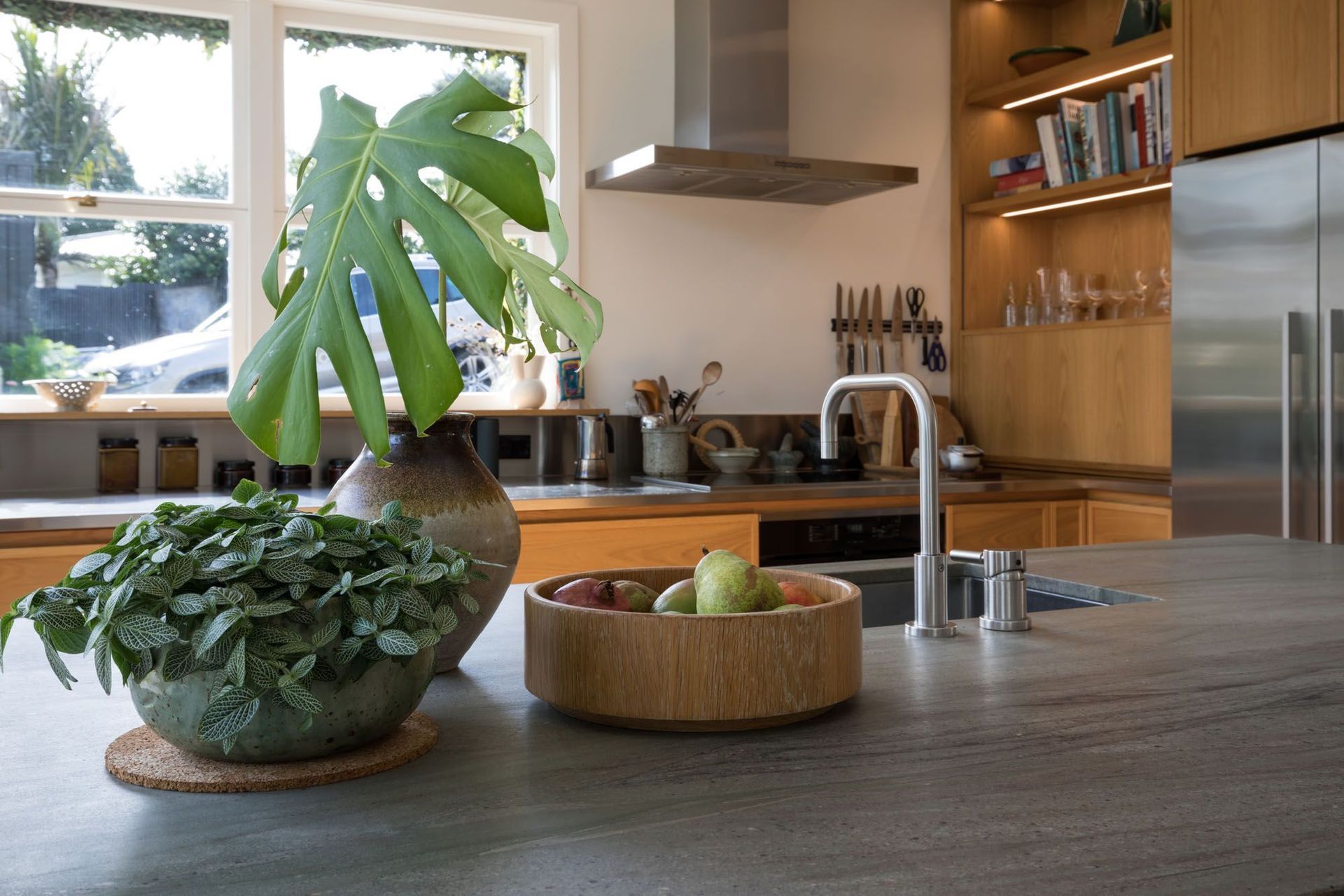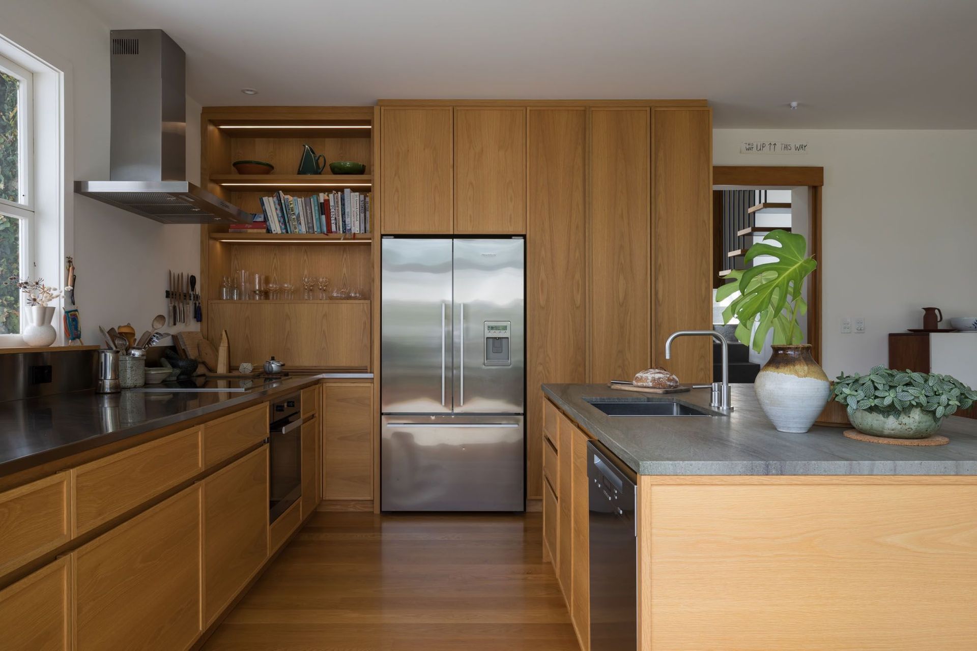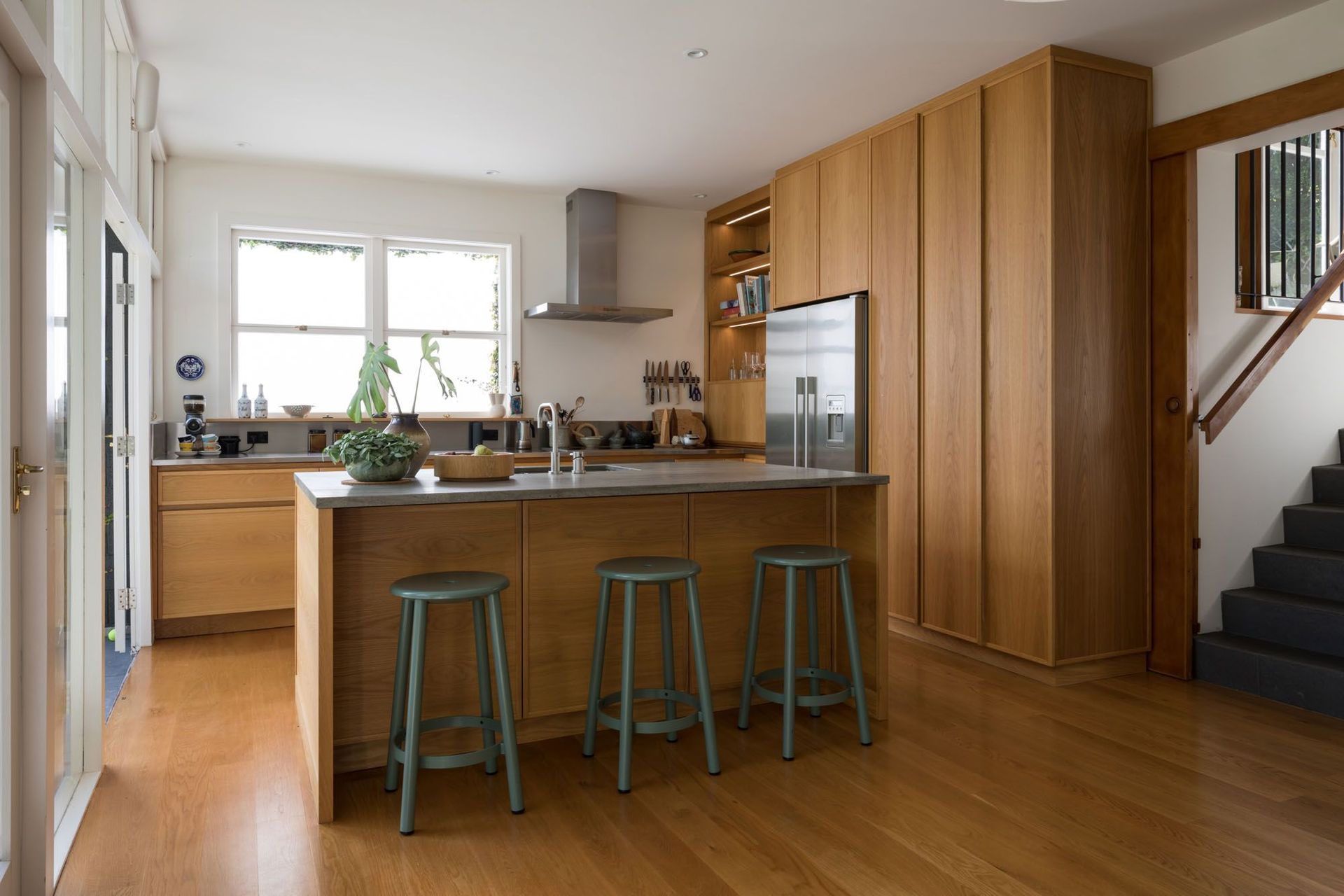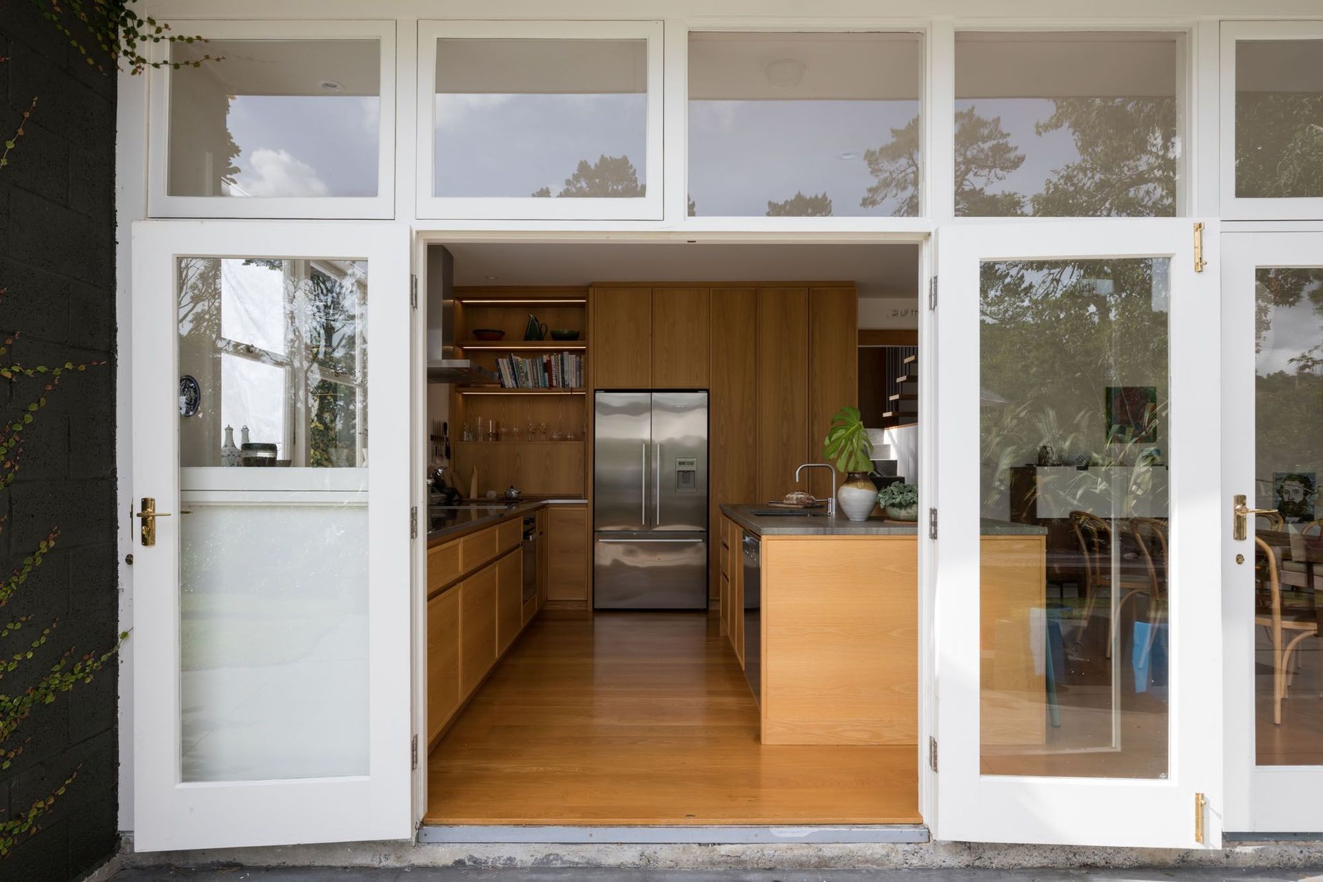 ArchiPro Project Summary - A kitchen renovation in an urban woodland home, featuring sophisticated clear oak cabinetry and honed granite countertops, enhancing family connectivity and seamless access to outdoor spaces.