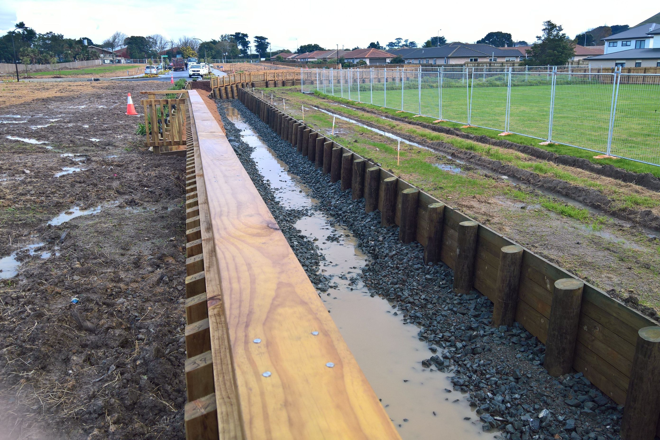 ArchiPro Project Summary - EDC's comprehensive engineering solutions for the fast-tracked Kirkbride development in Mangere Bridge, addressing drainage challenges and enhancing residential infrastructure within Auckland's Special Housing Area.